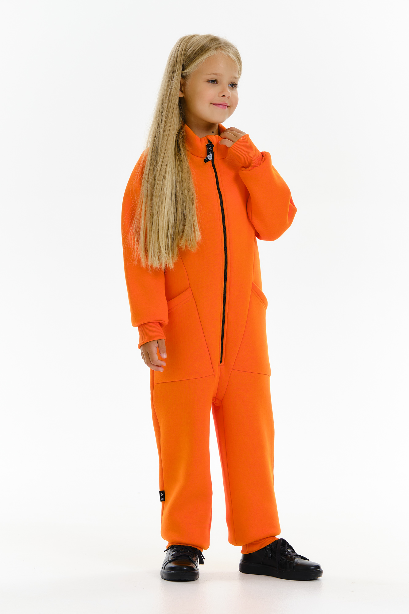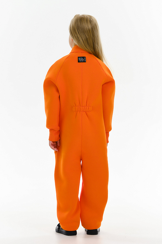 Стильный утепленный комбинезон с воротником-стойкой, на молнии, выполнен из премиального футера с начесом.