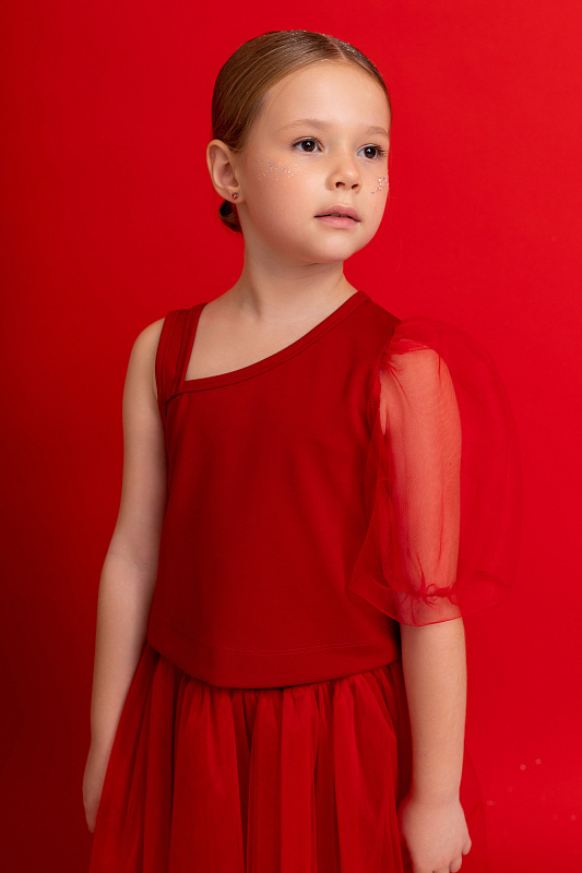 Топ из гладкого вискозного трикотажа с фатиновым рукавом.