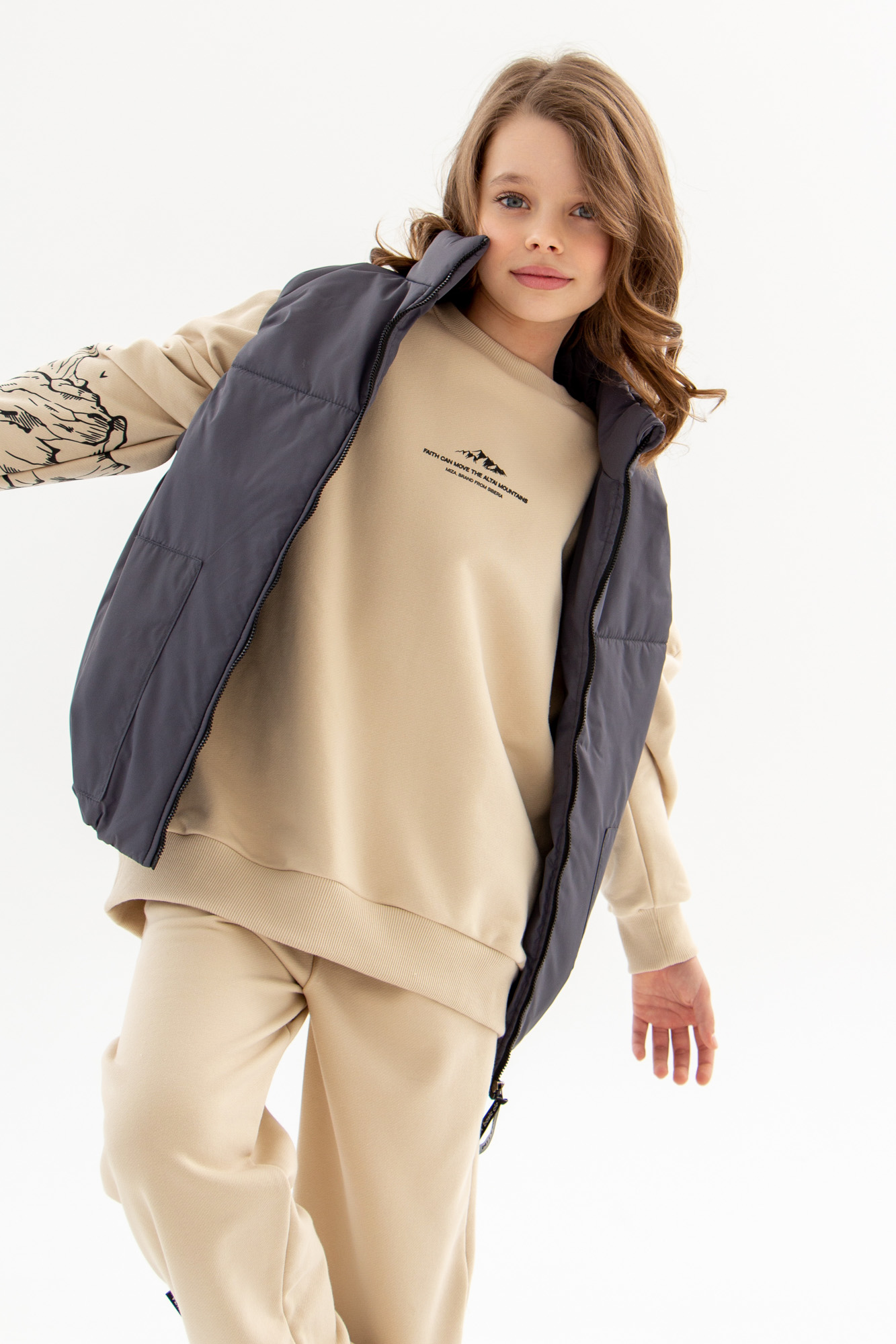 На переде и рукаве монохромный принт в стиле коллекции Altai.