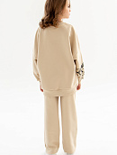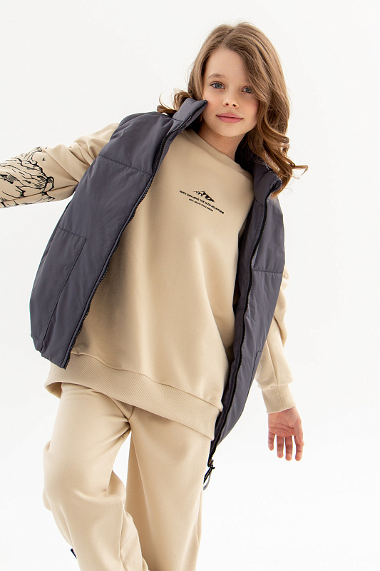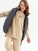 Пояс, манжеты и обтачка горловины выполнены из эластичного трикотажа в мелкий рубчик.