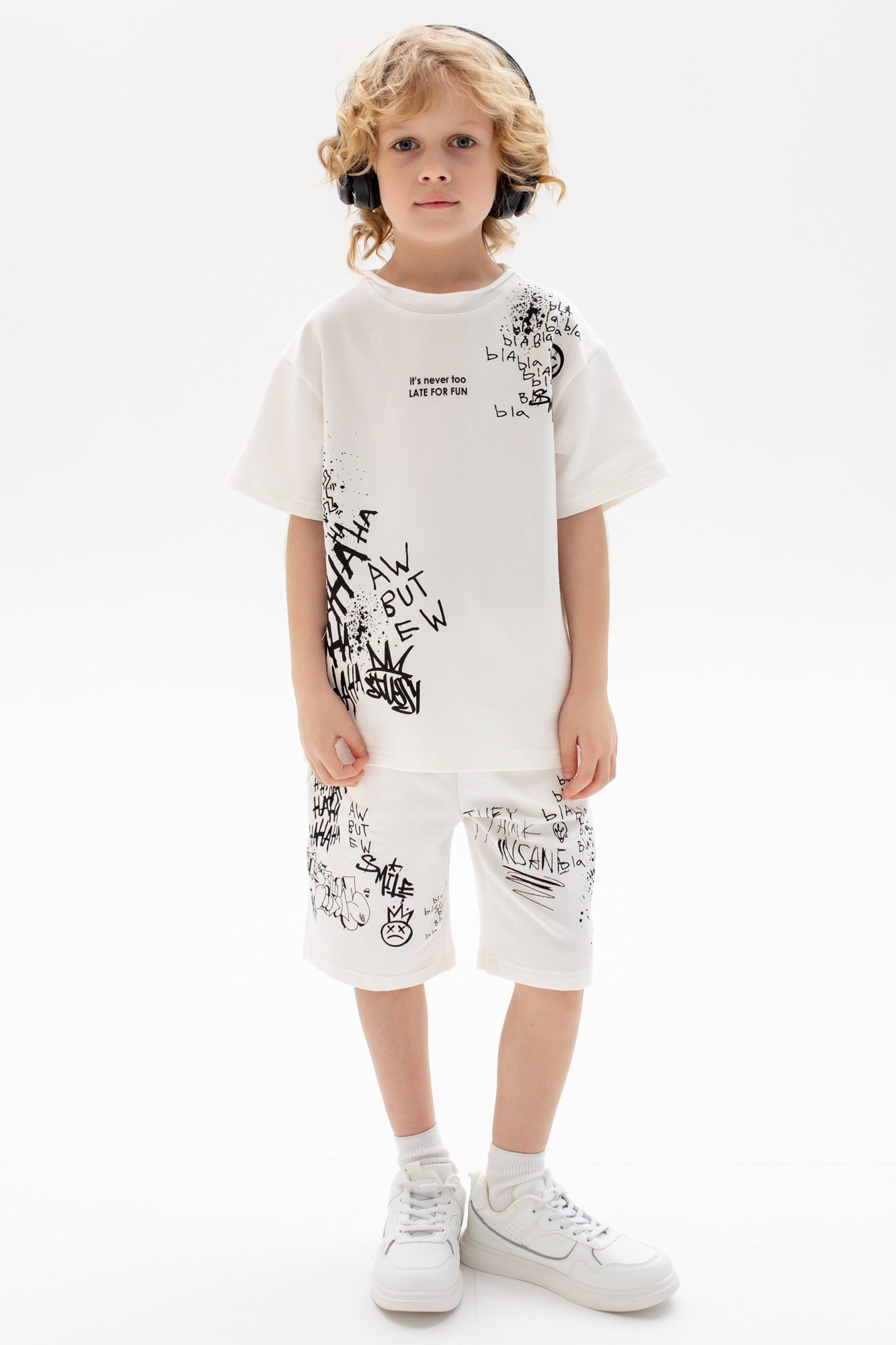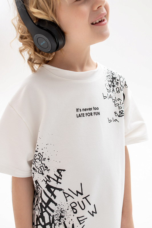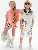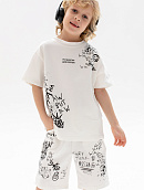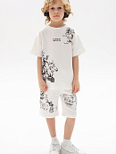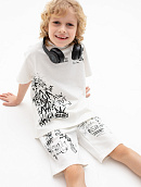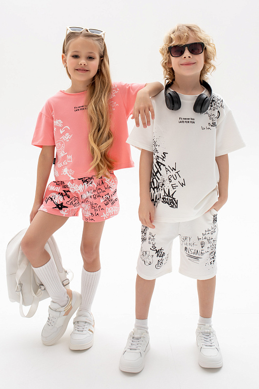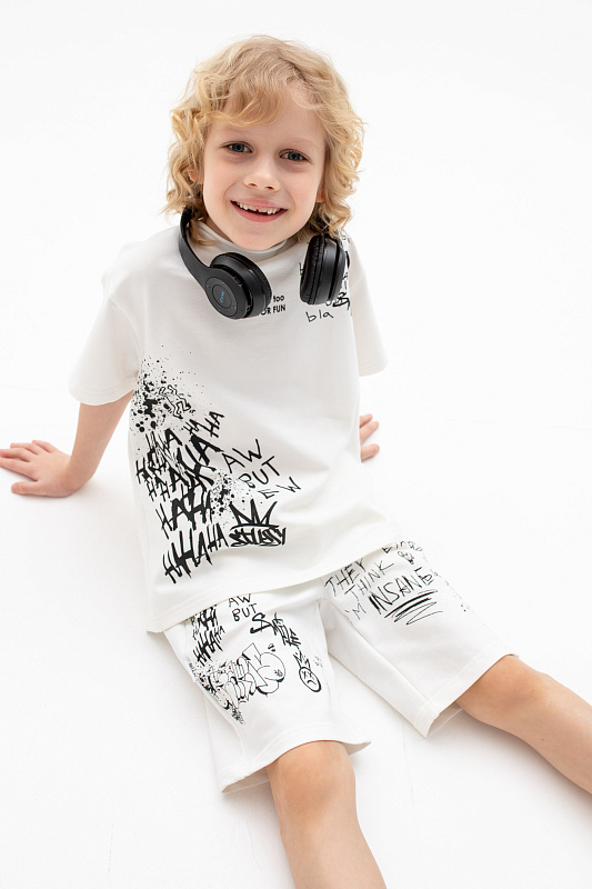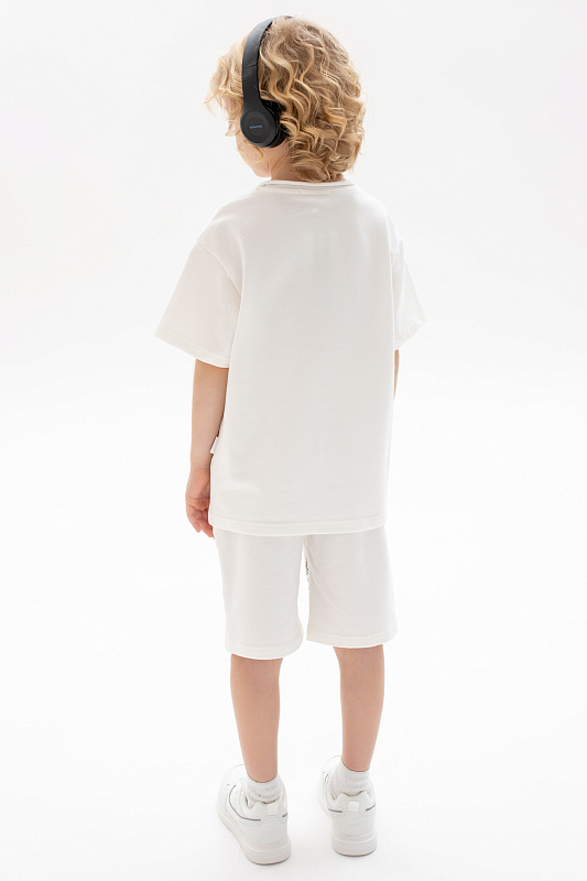 Состоит из футболки свободного кроя и прямых шорт с