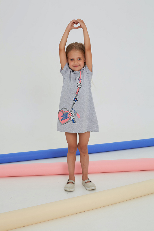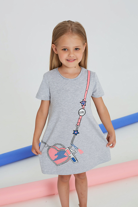 Платье А-силуэта с авторским принтом в виде стильной сумочки с аксессуарами.