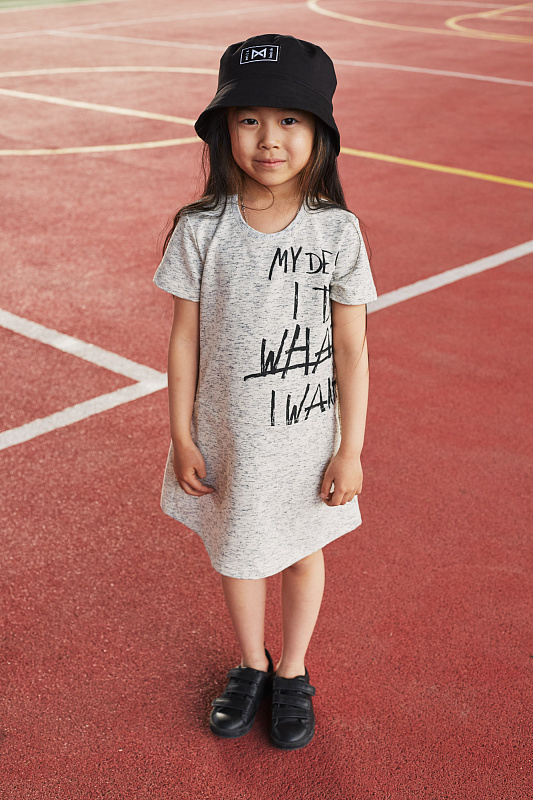 Платье свободного А-силуэта из плотного мягкого трикотажа (футер с лайкрой) с меланжевым эффектом.