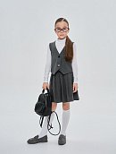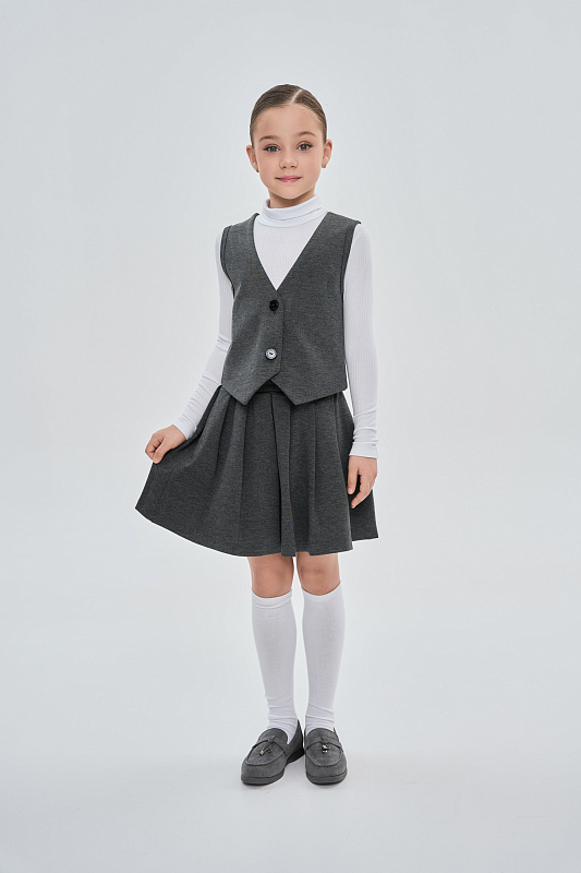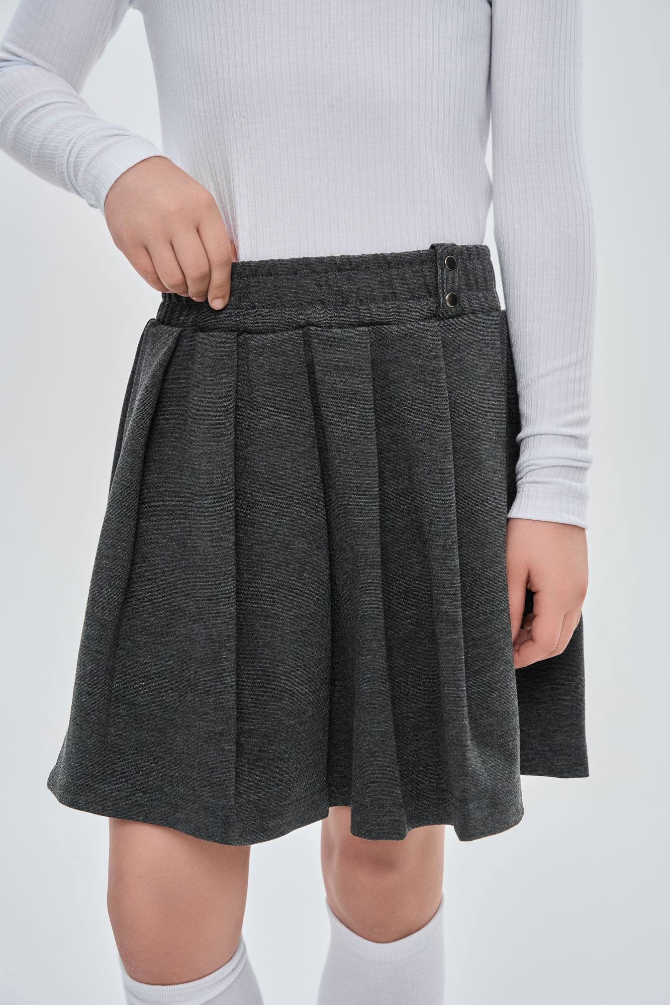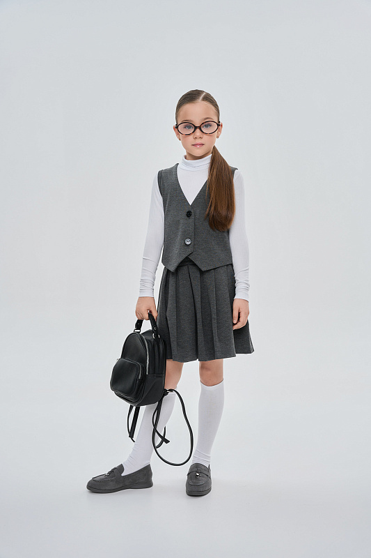Пояс на эластичной резине, оформлен отделочными строчками и декоративными пуговицами сбоку.