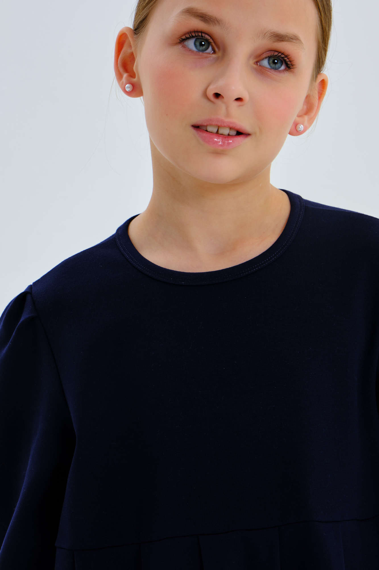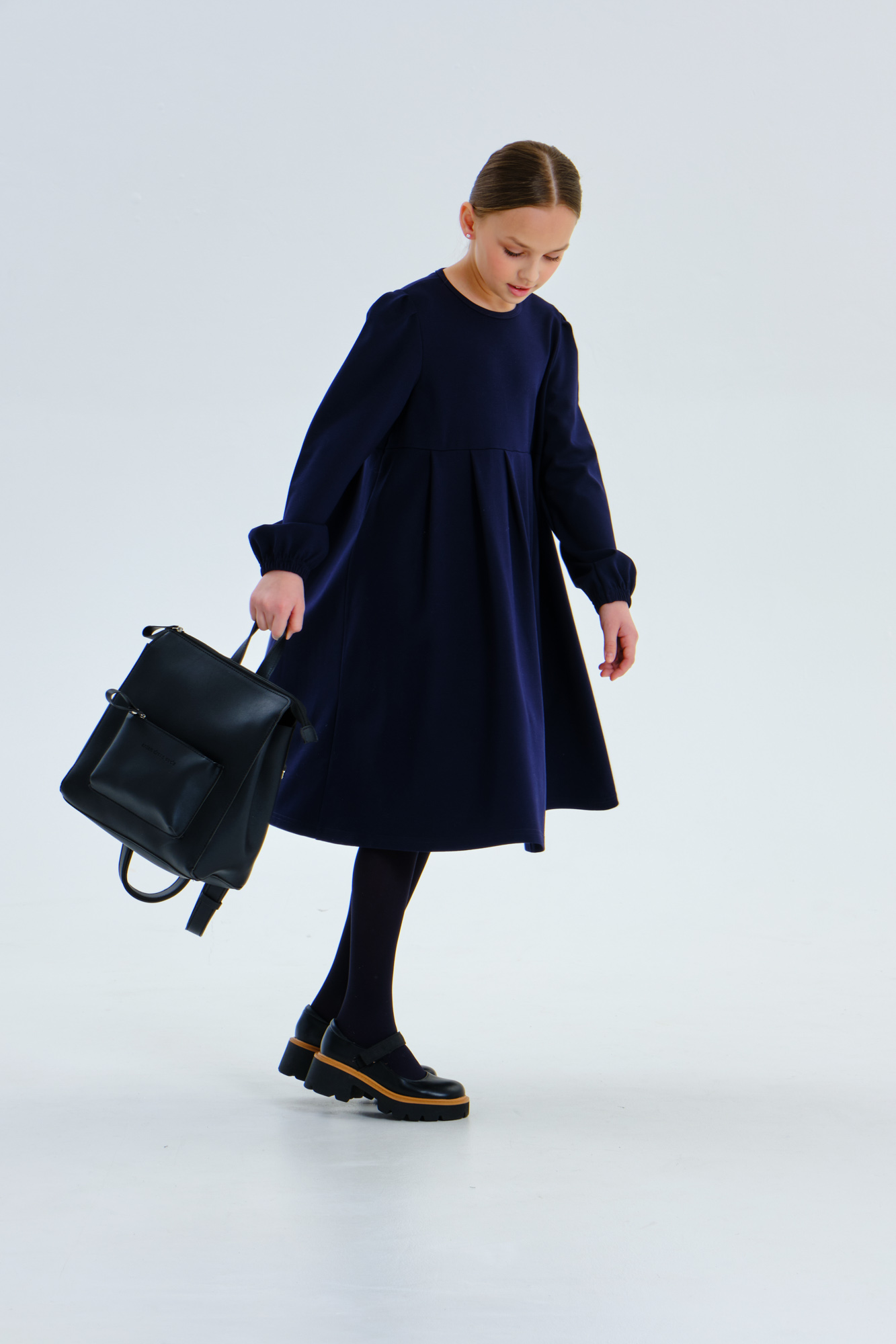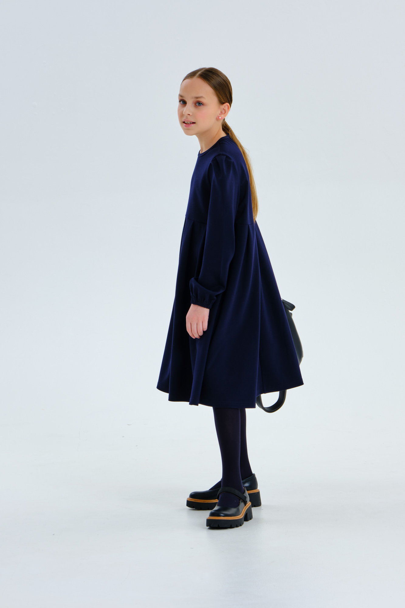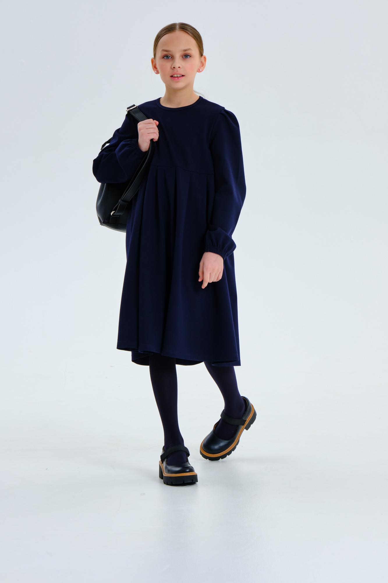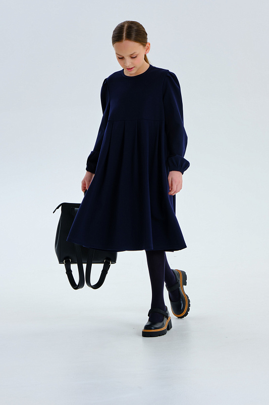 Платье свободного кроя с длинным рукавом.