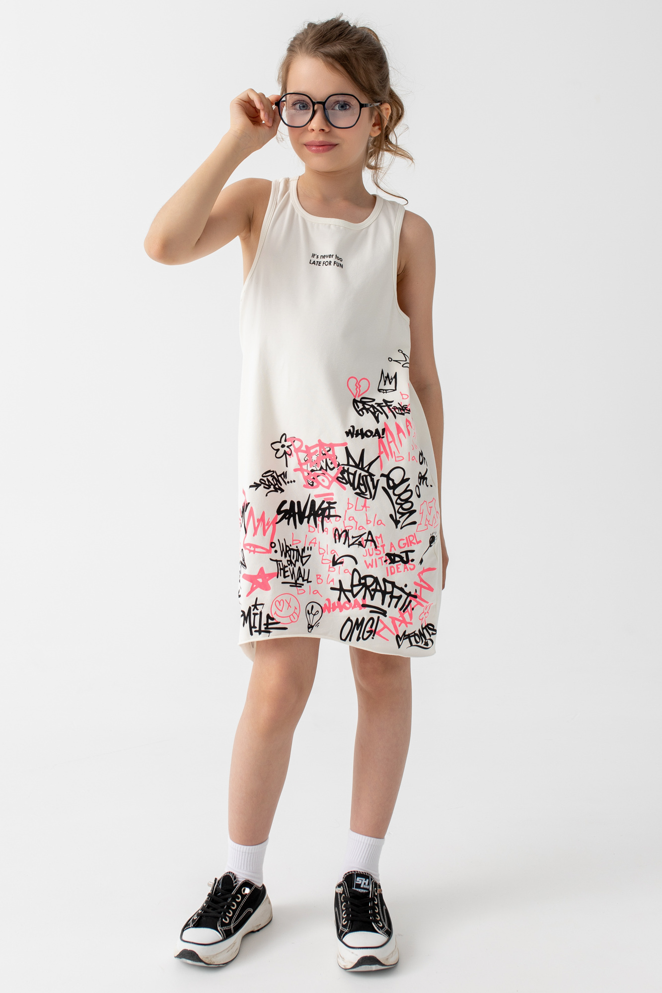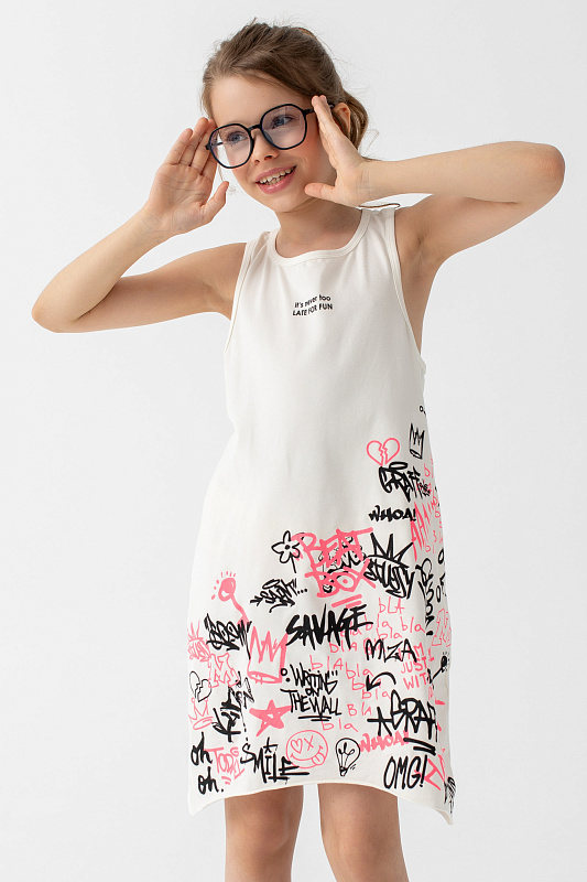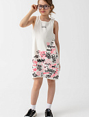открытую спинку и необработанный низ. Оформлен авторскими принтами.