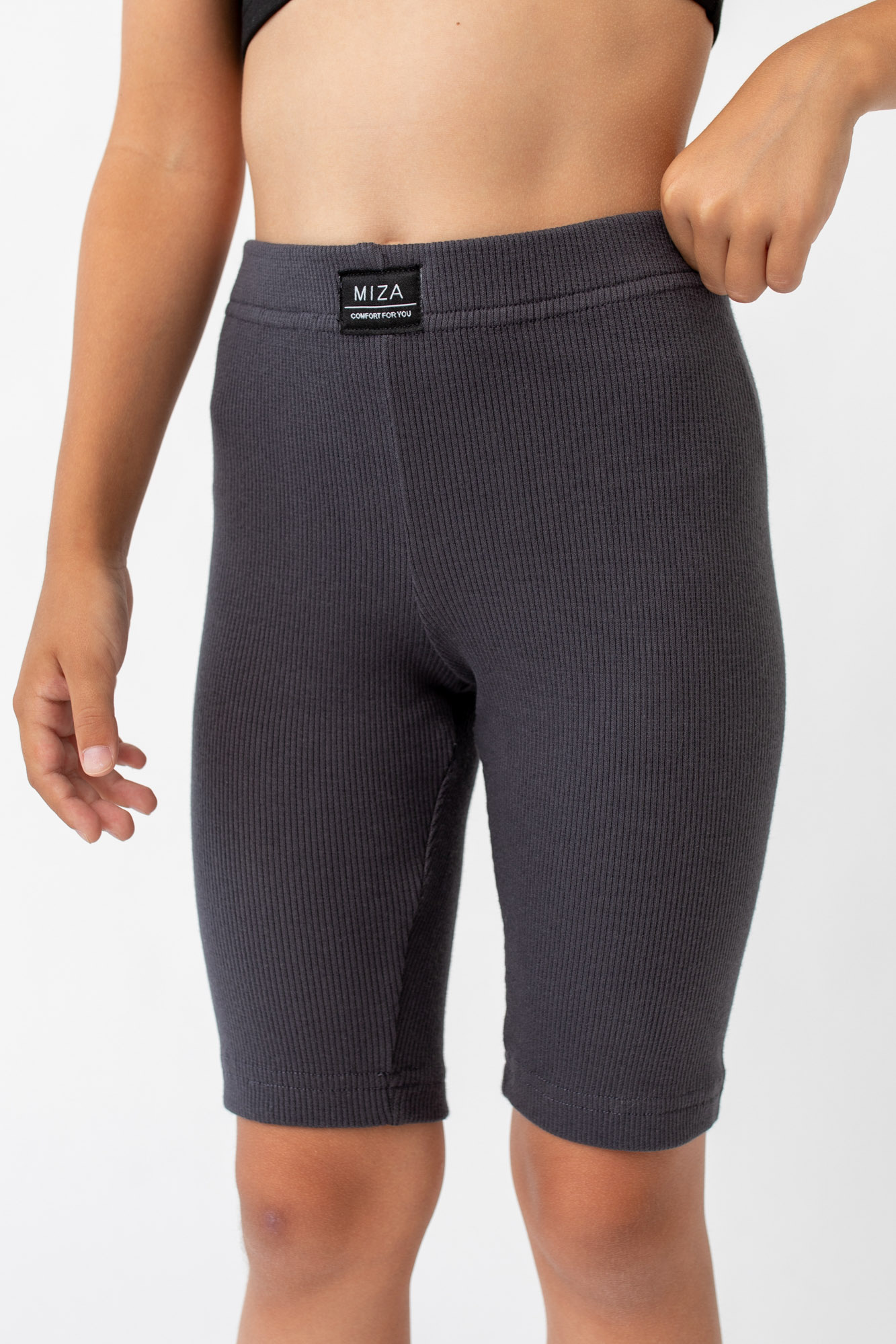 Базовые велосипедки из эластичного трикотажа в мелкий рубчик.