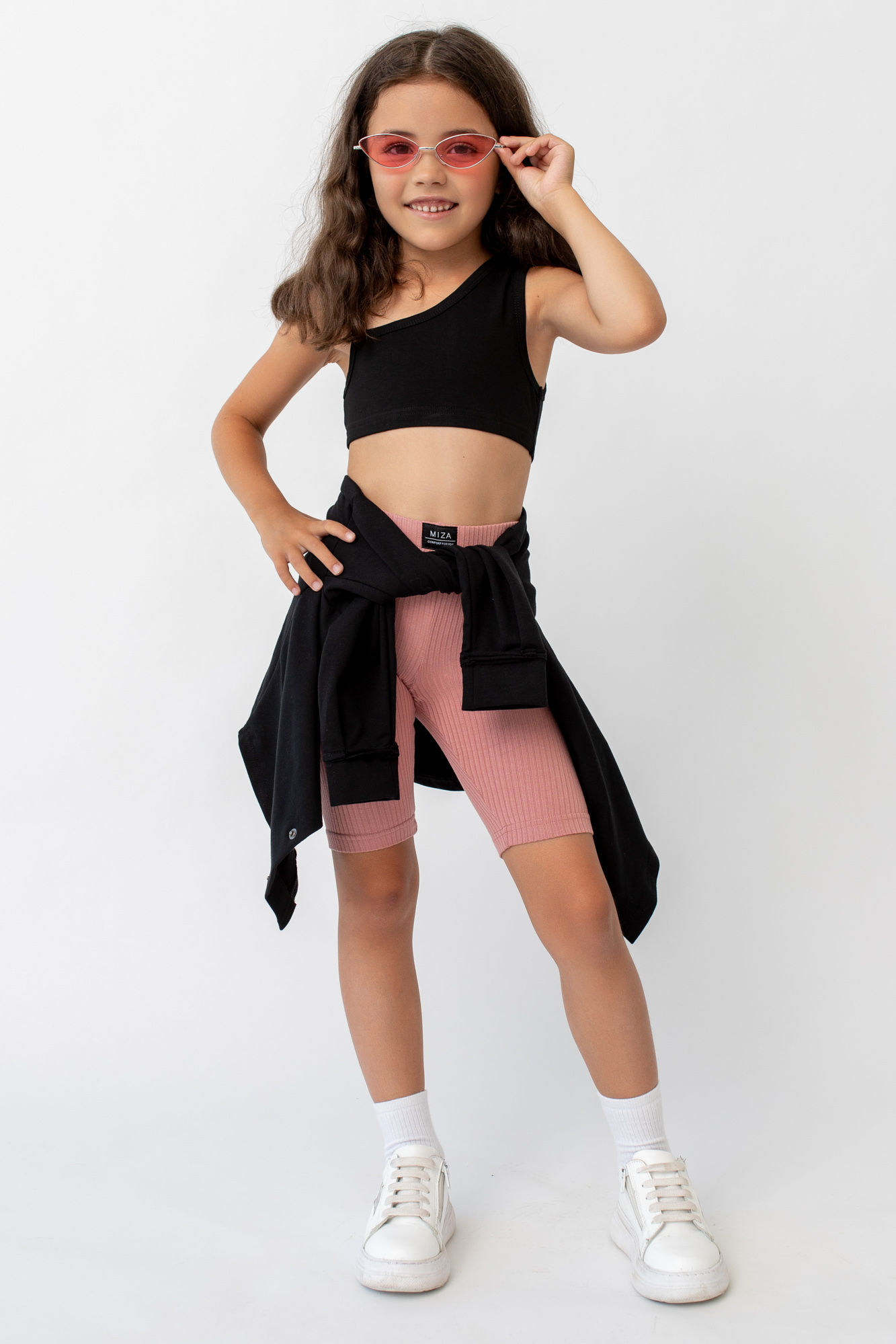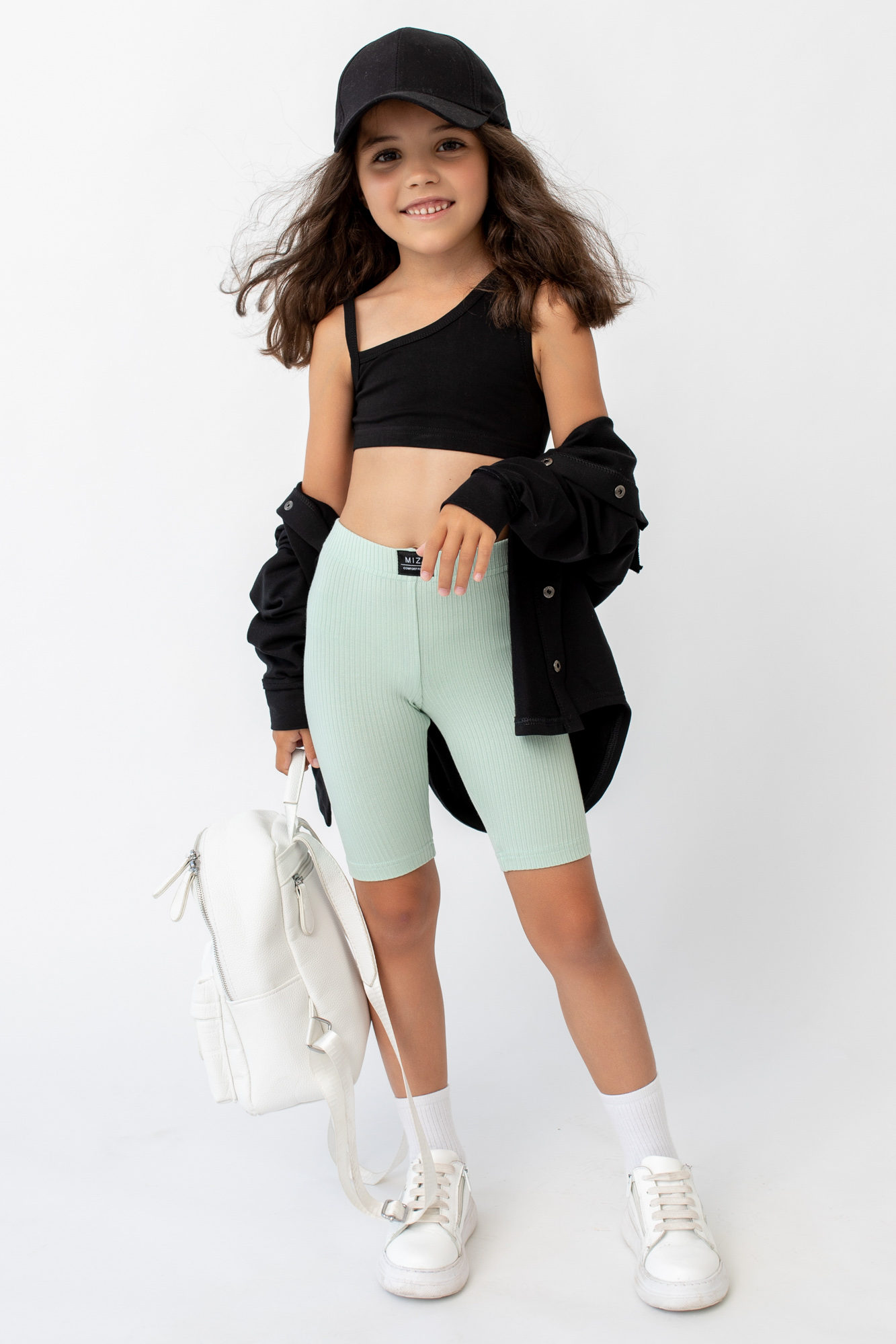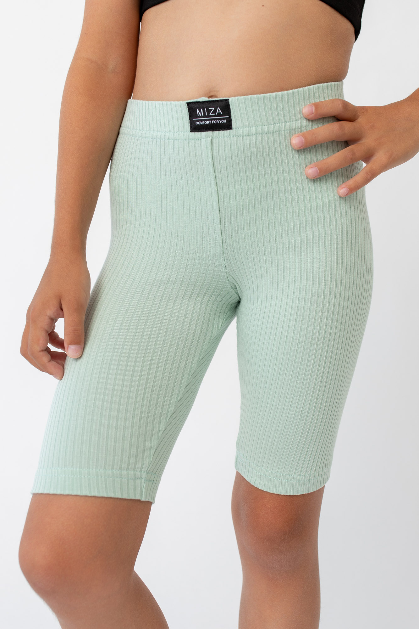 Базовые велосипедки из эластичного трикотажа в мелкий рубчик.