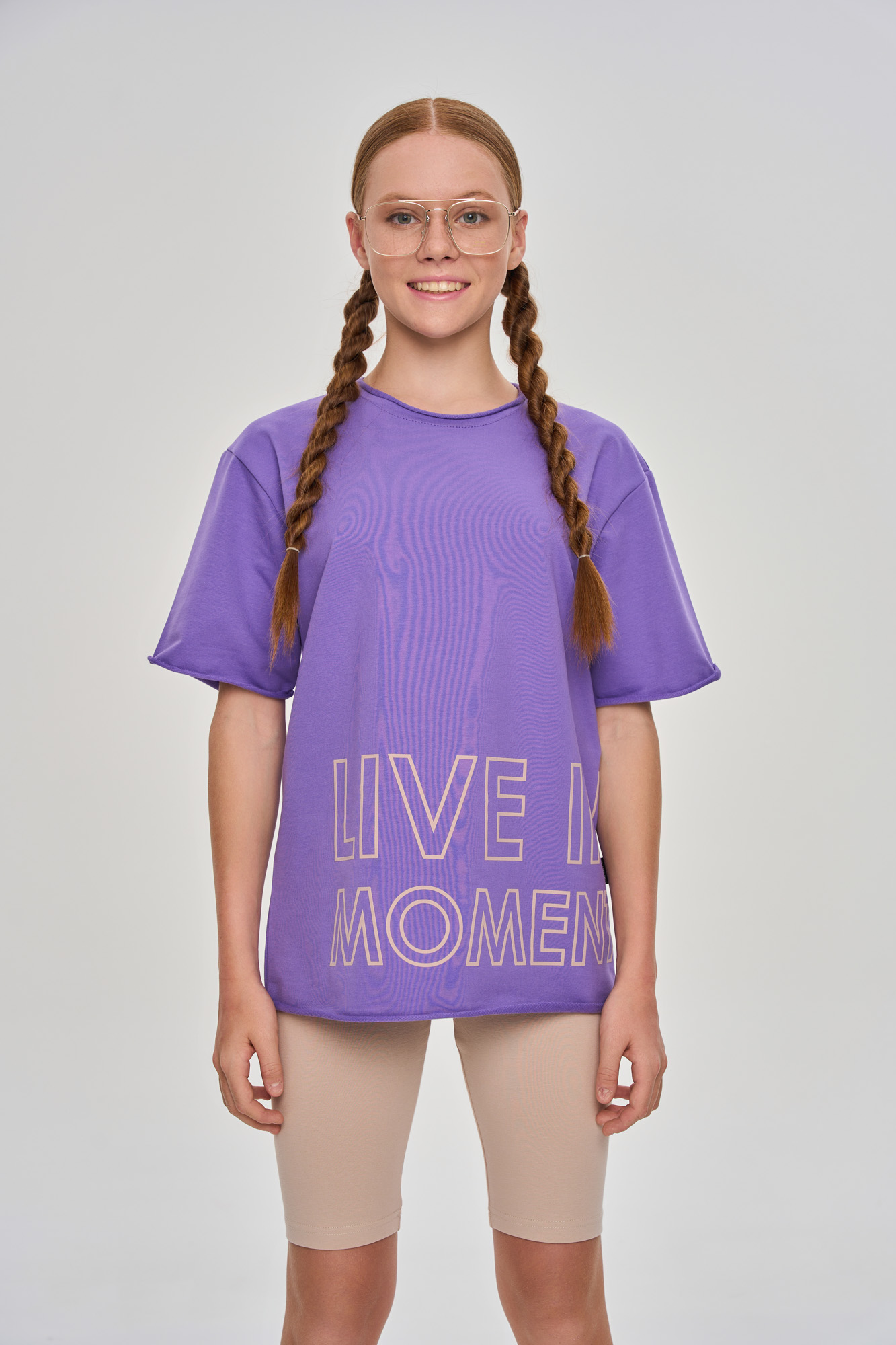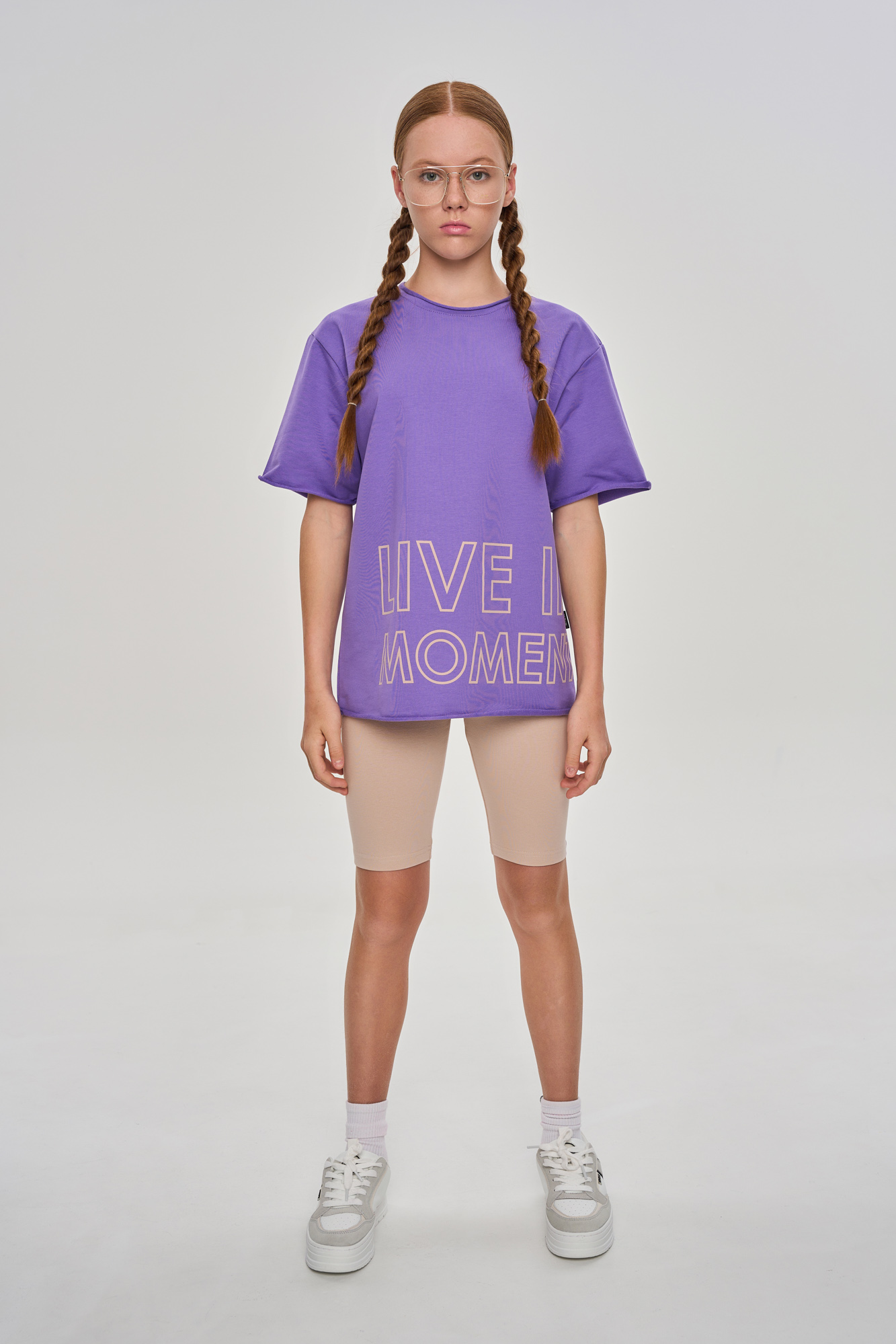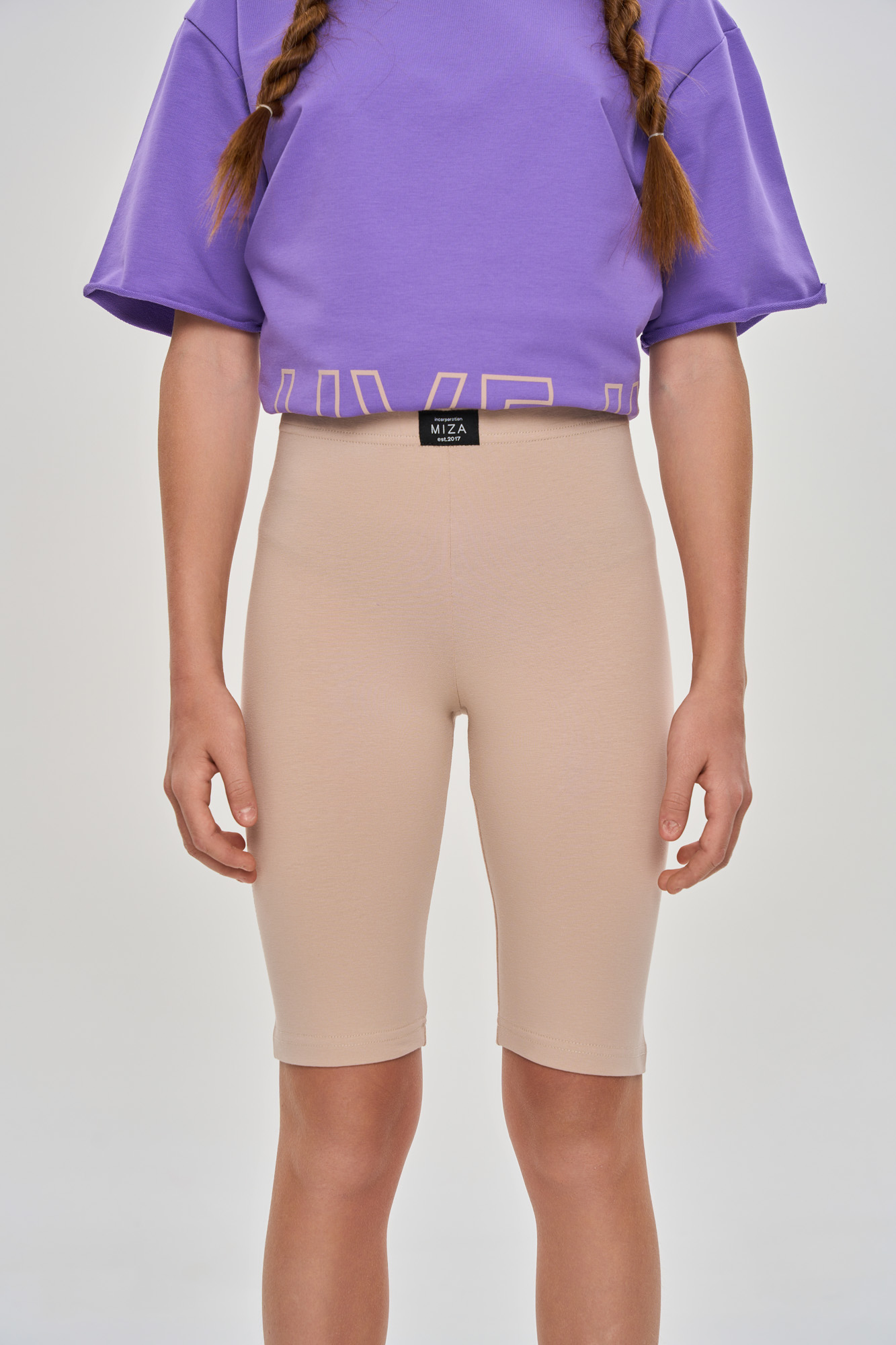 Базовые велосипедки с идеальной посадкой, дополнены текстовым принтом в технике soft-touch.