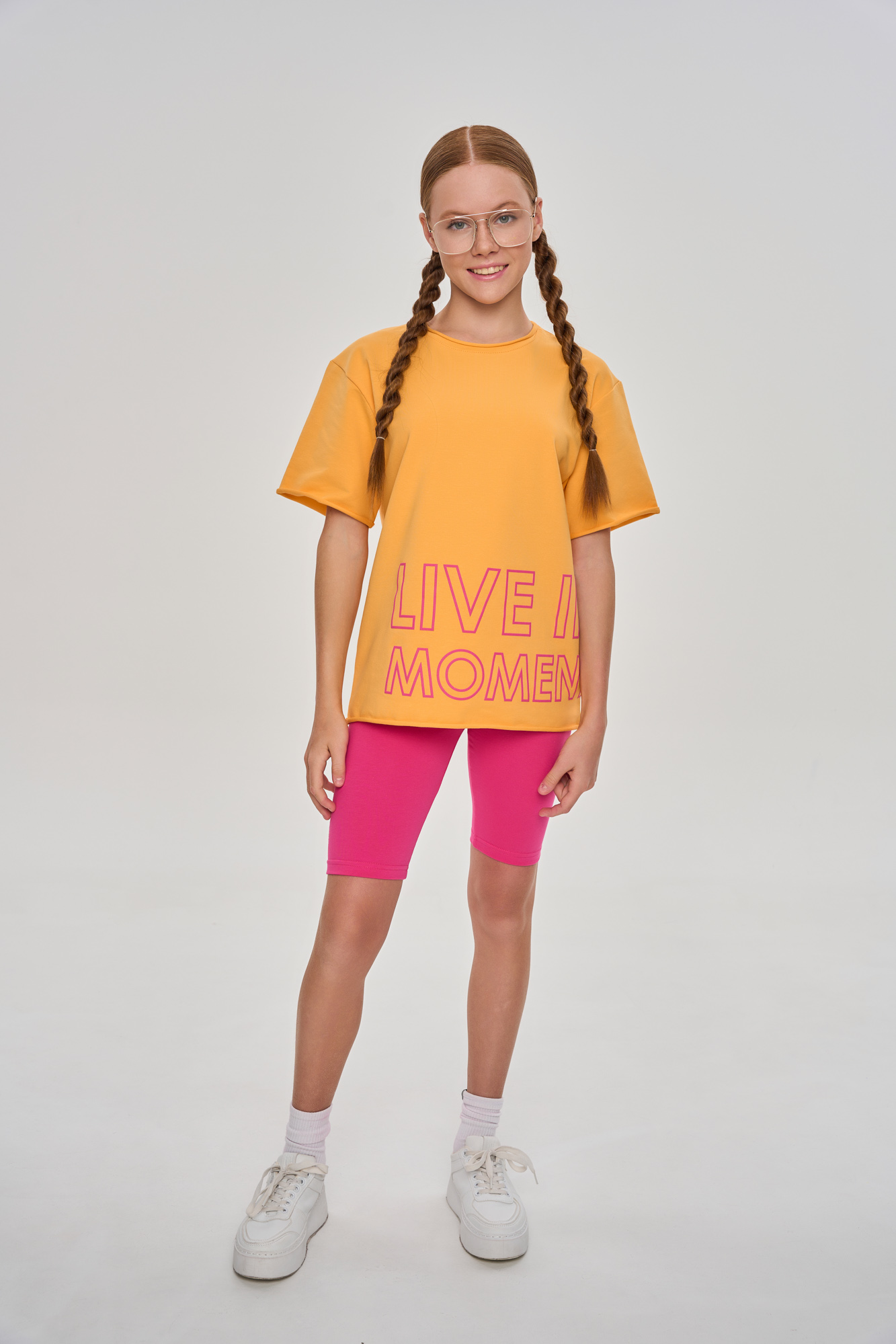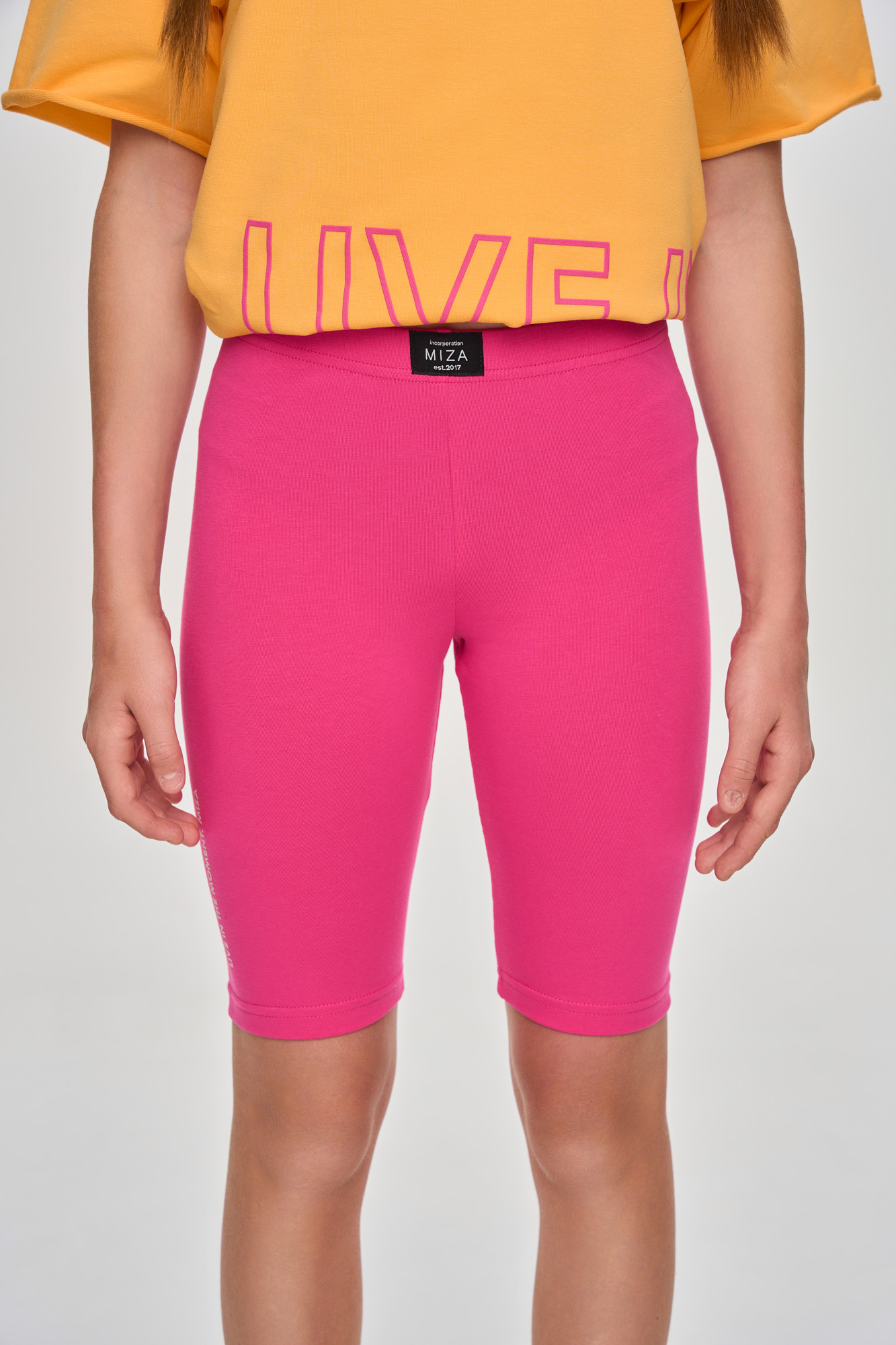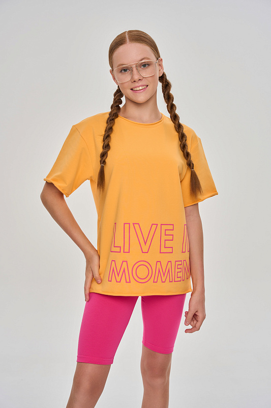 Базовые велосипедки с идеальной посадкой, дополнены текстовым принтом в технике soft-touch.