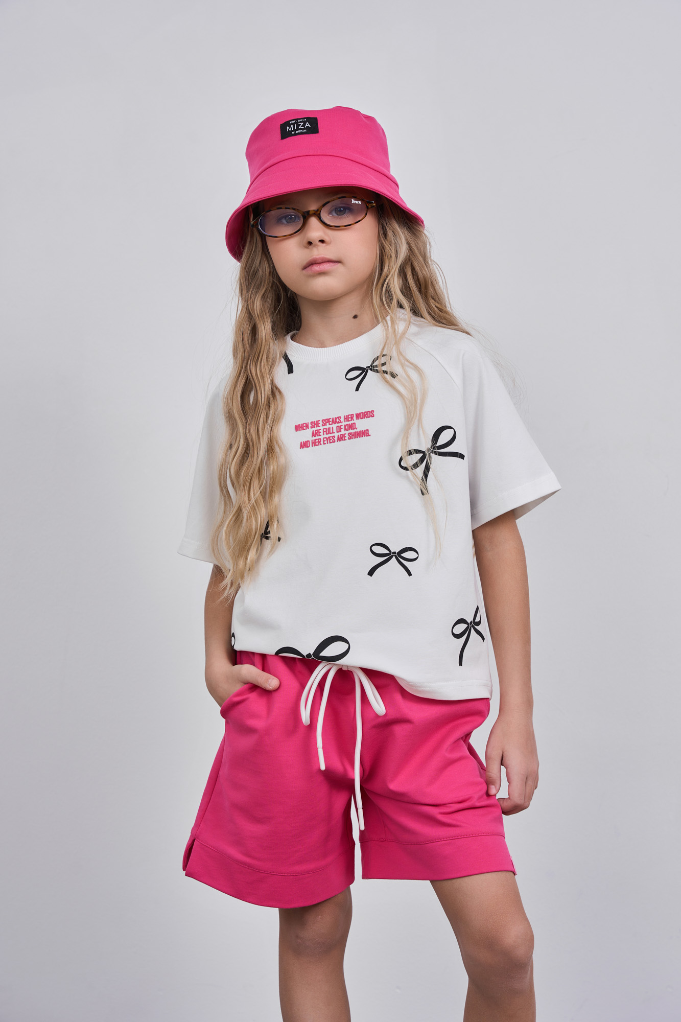 Шорты прямого свободного кроя с небольшими разрезами по низу и отделочным шнурком.
