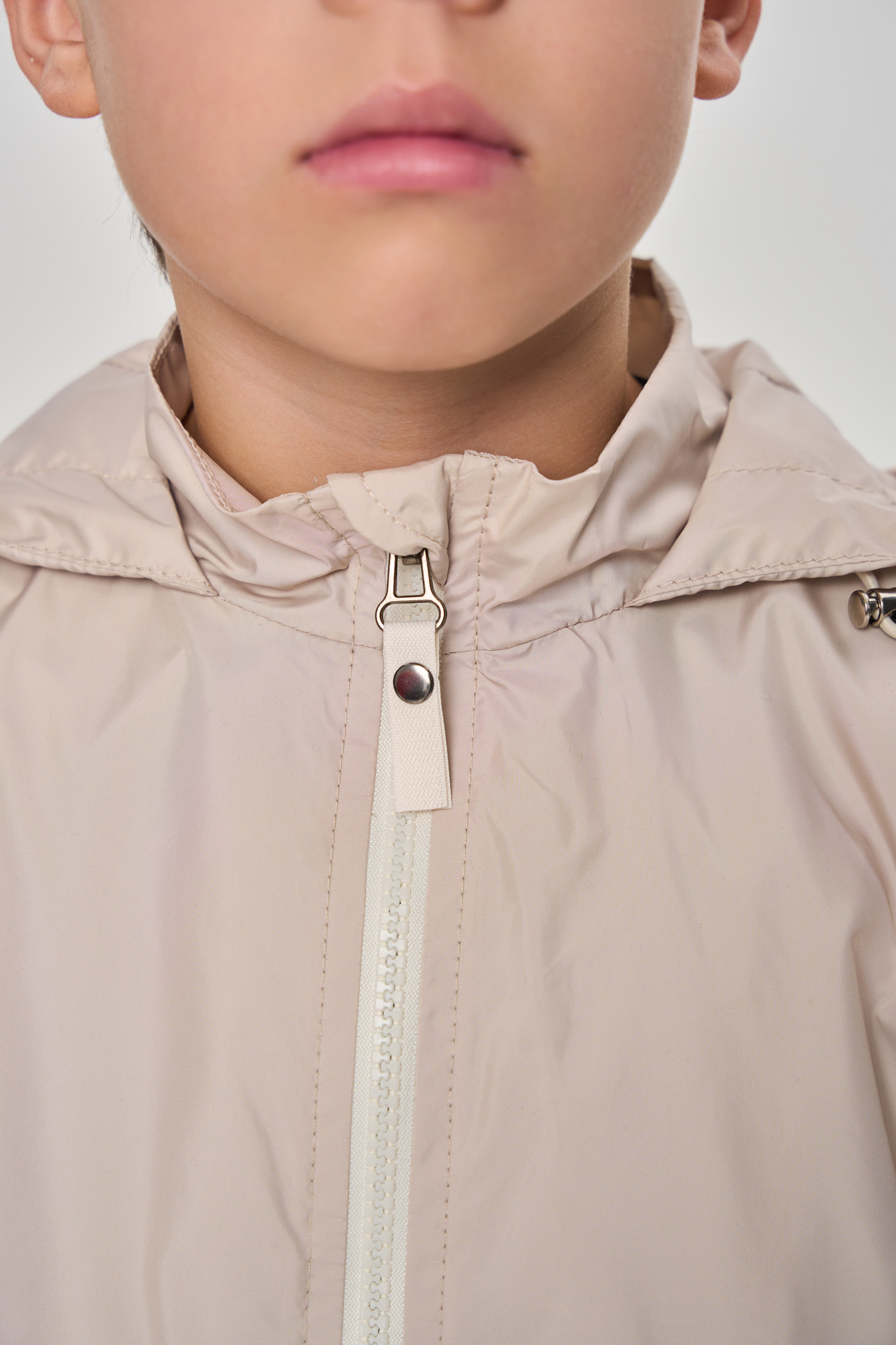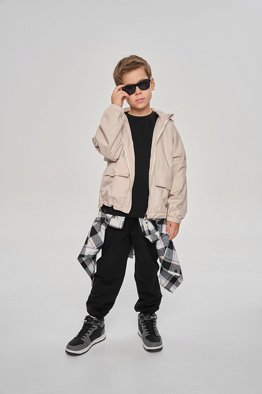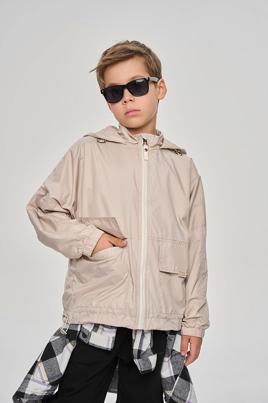 Ветровка объемного кроя с капюшоном.