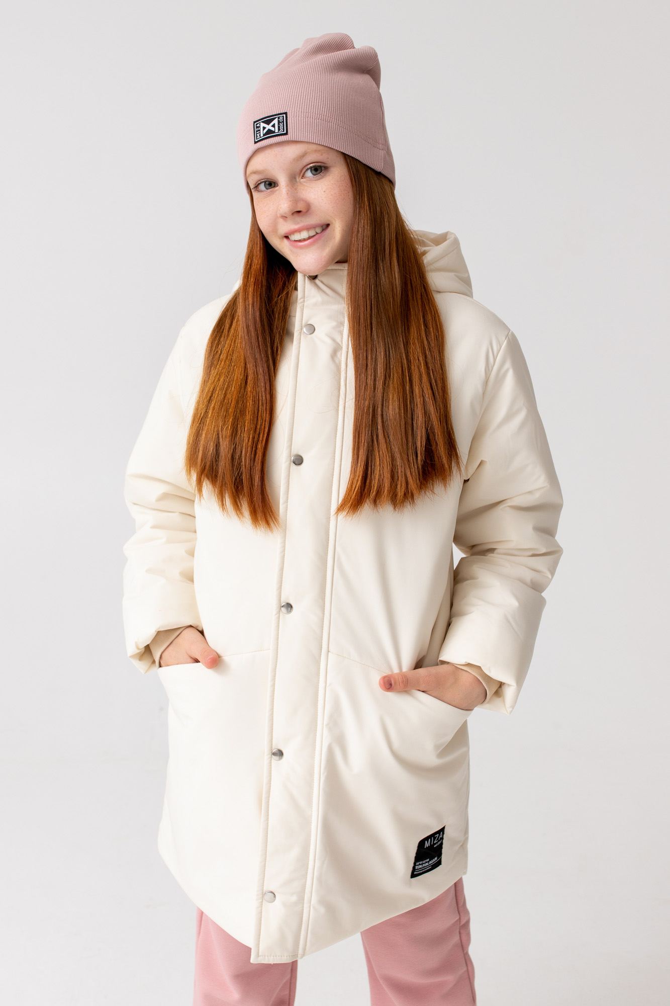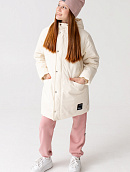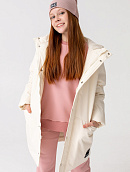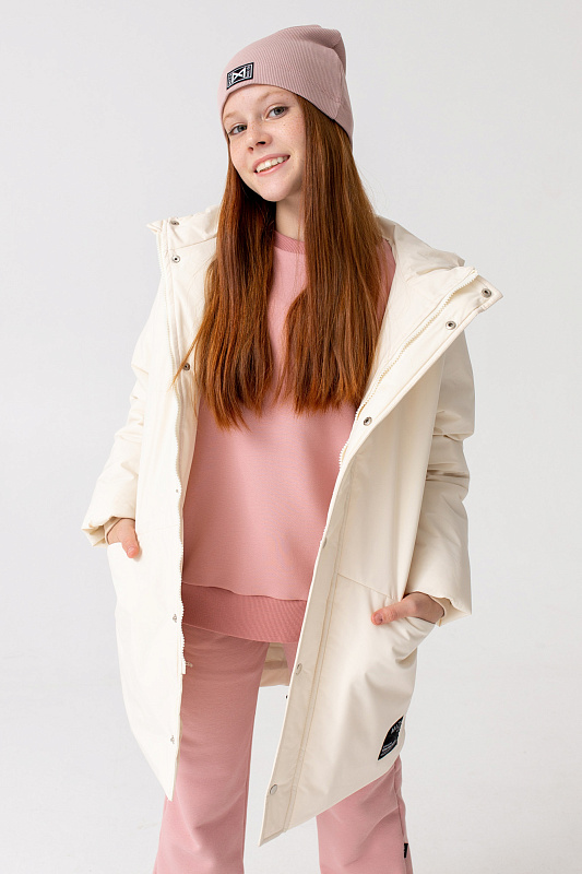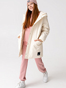 Удлиненная куртка прямого кроя с капюшоном и карманами.