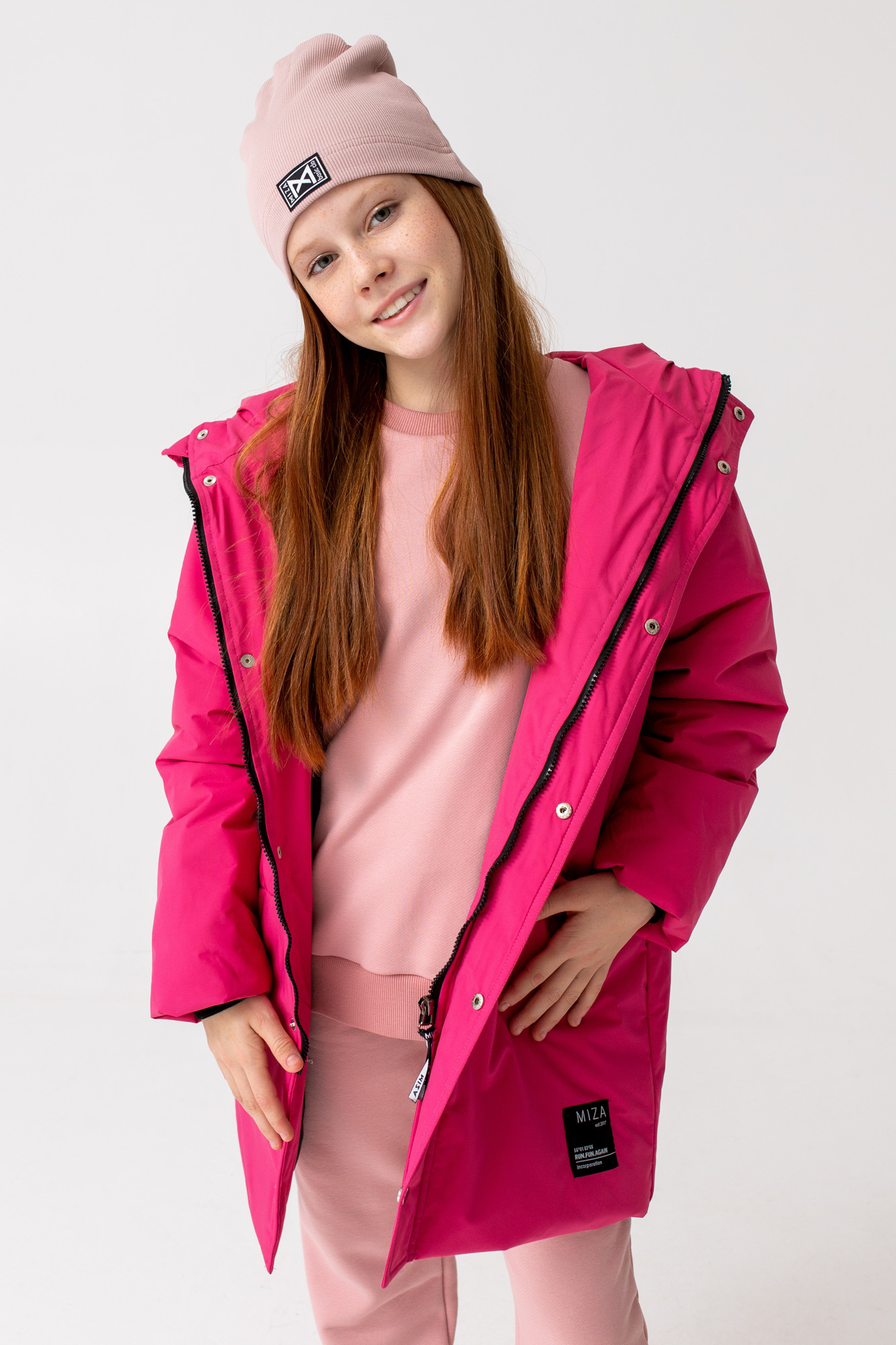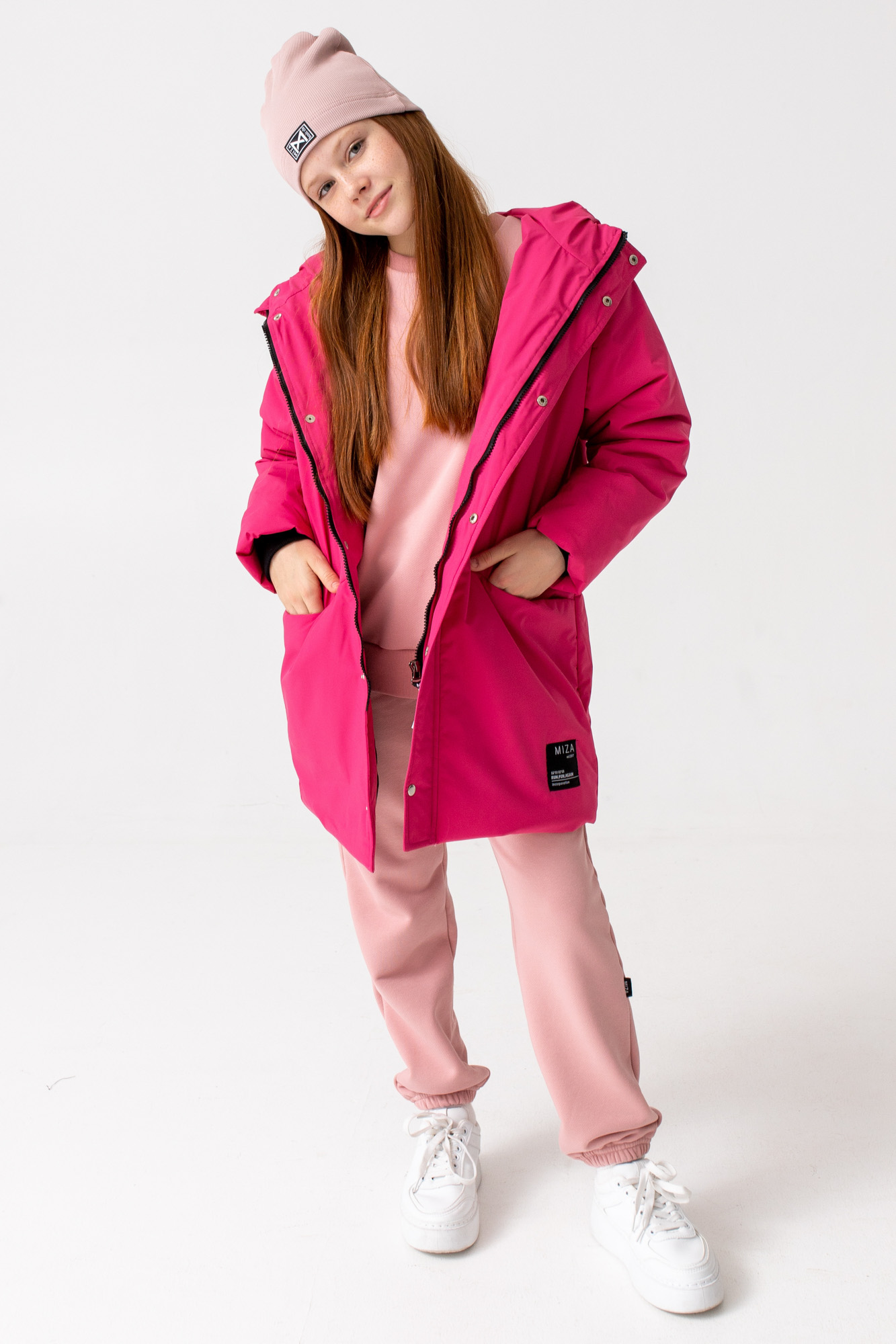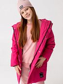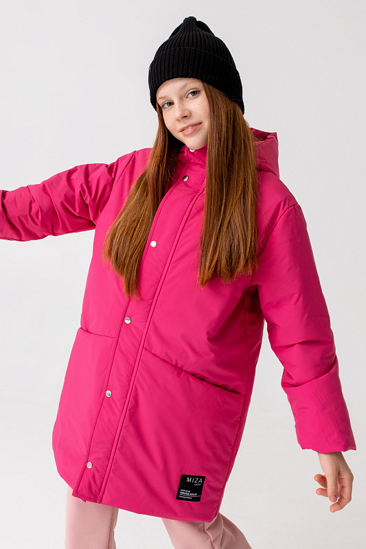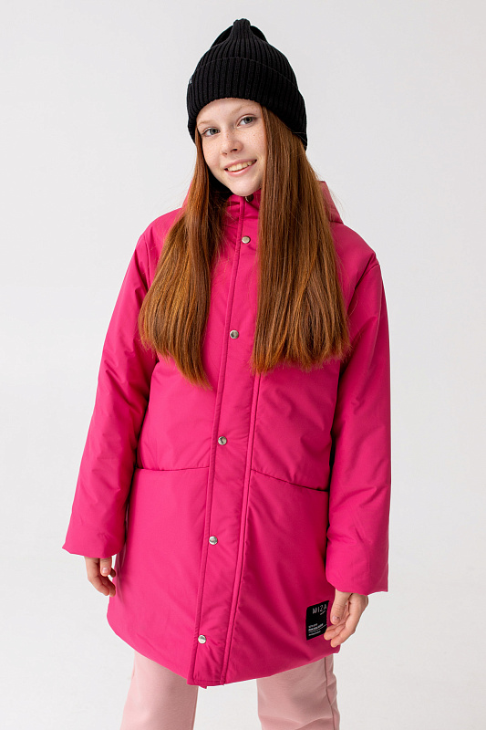 Удлиненная куртка прямого кроя с капюшоном и карманами.