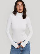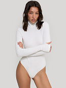 Боди из мягкого эластичного трикотажа в рубчик с высоким воротом.