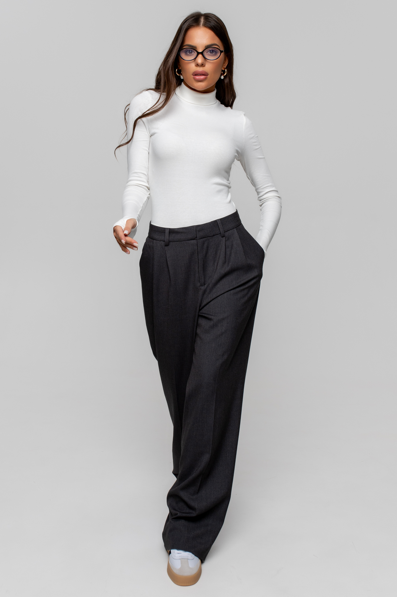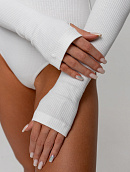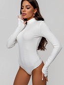 Боди из мягкого эластичного трикотажа в рубчик с высоким воротом.