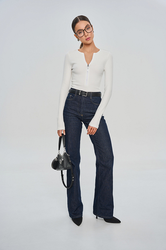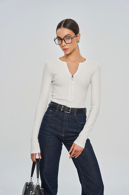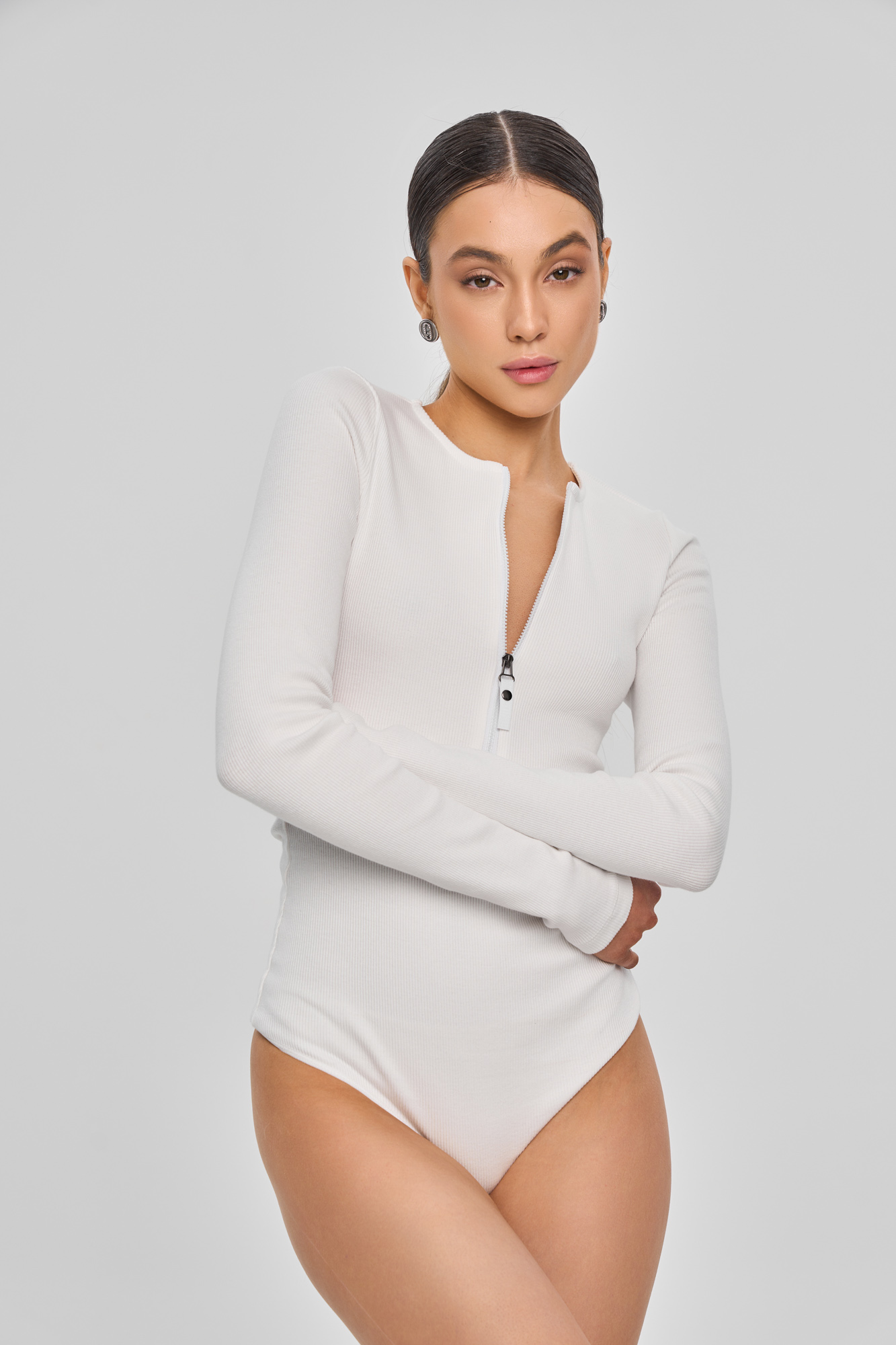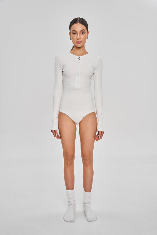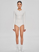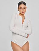 Боди из эластичного трикотажа в мелкий рубчик, дополнен застежкой-молнией на переде.