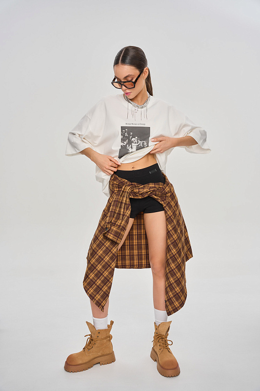 Шортики длины мини, прилегающего кроя, выполнены из эластичного хлопкового трикотажа.