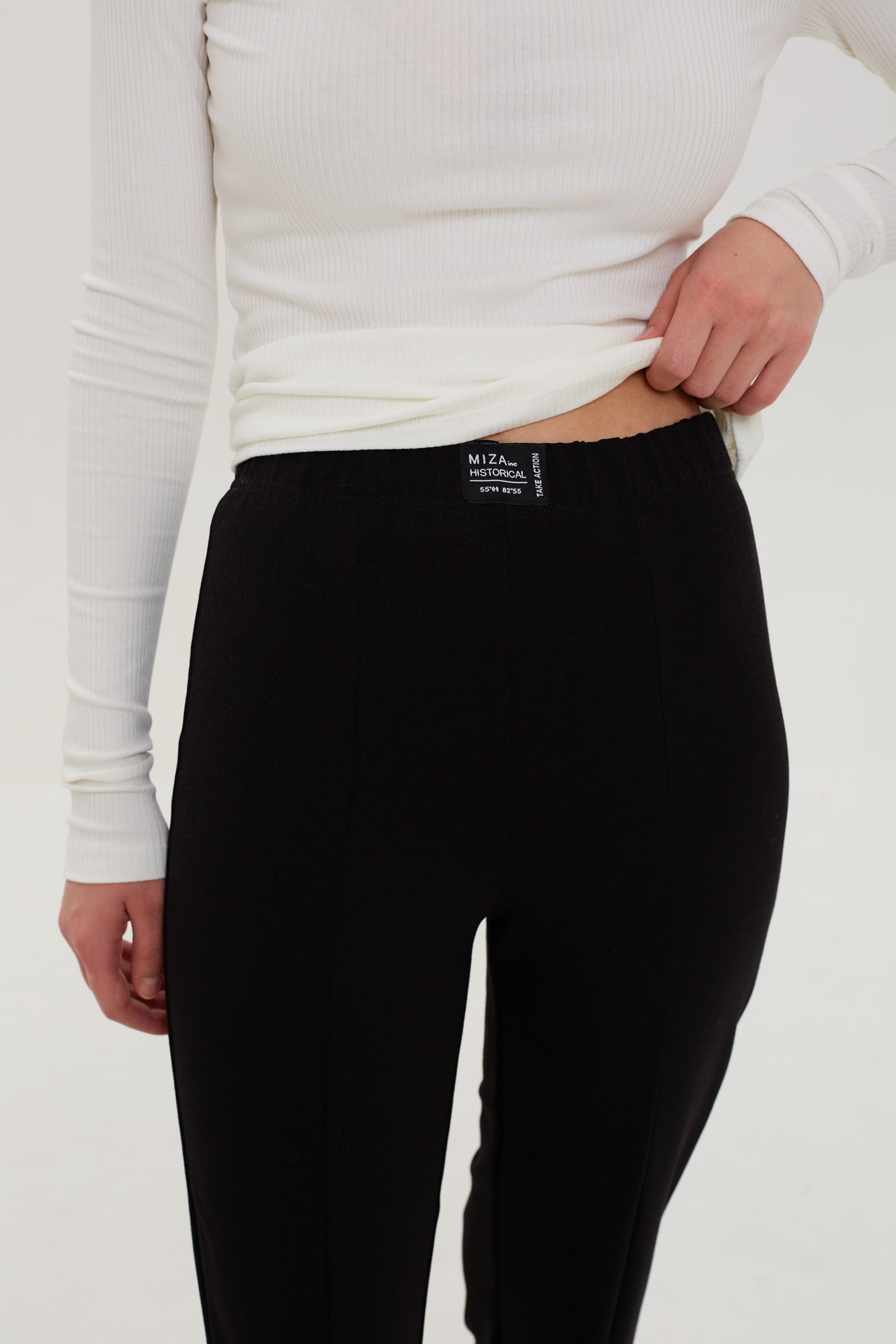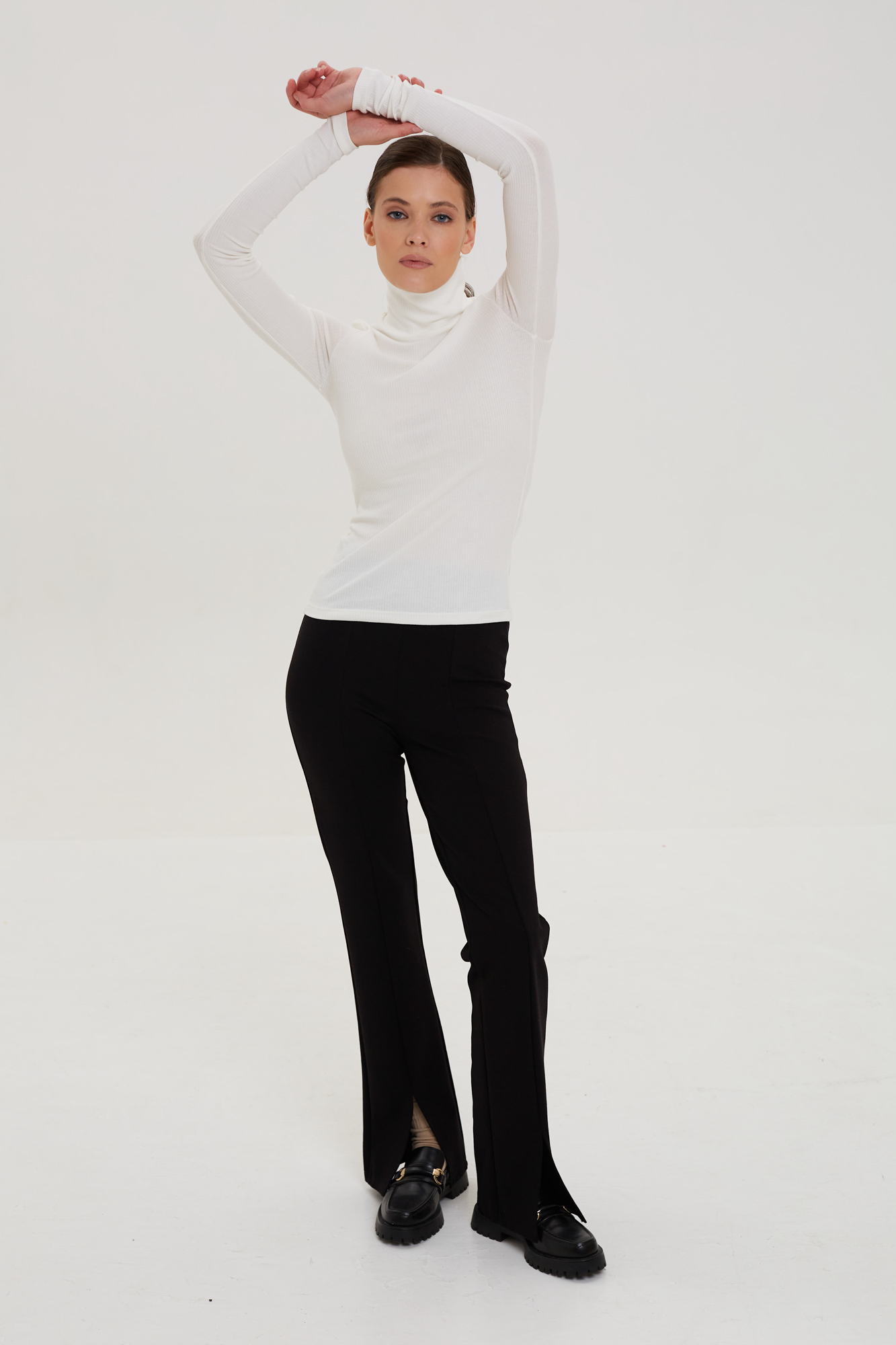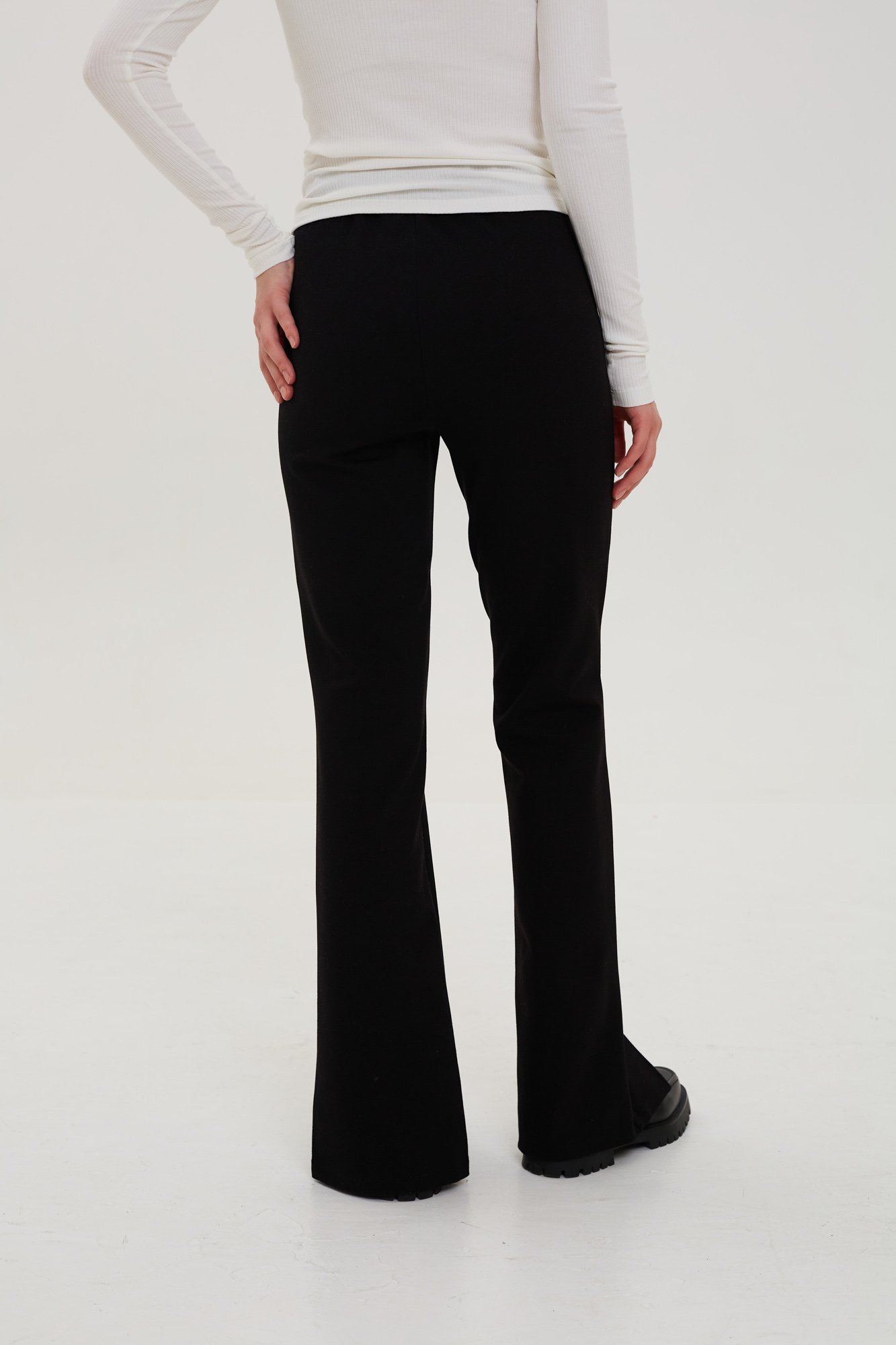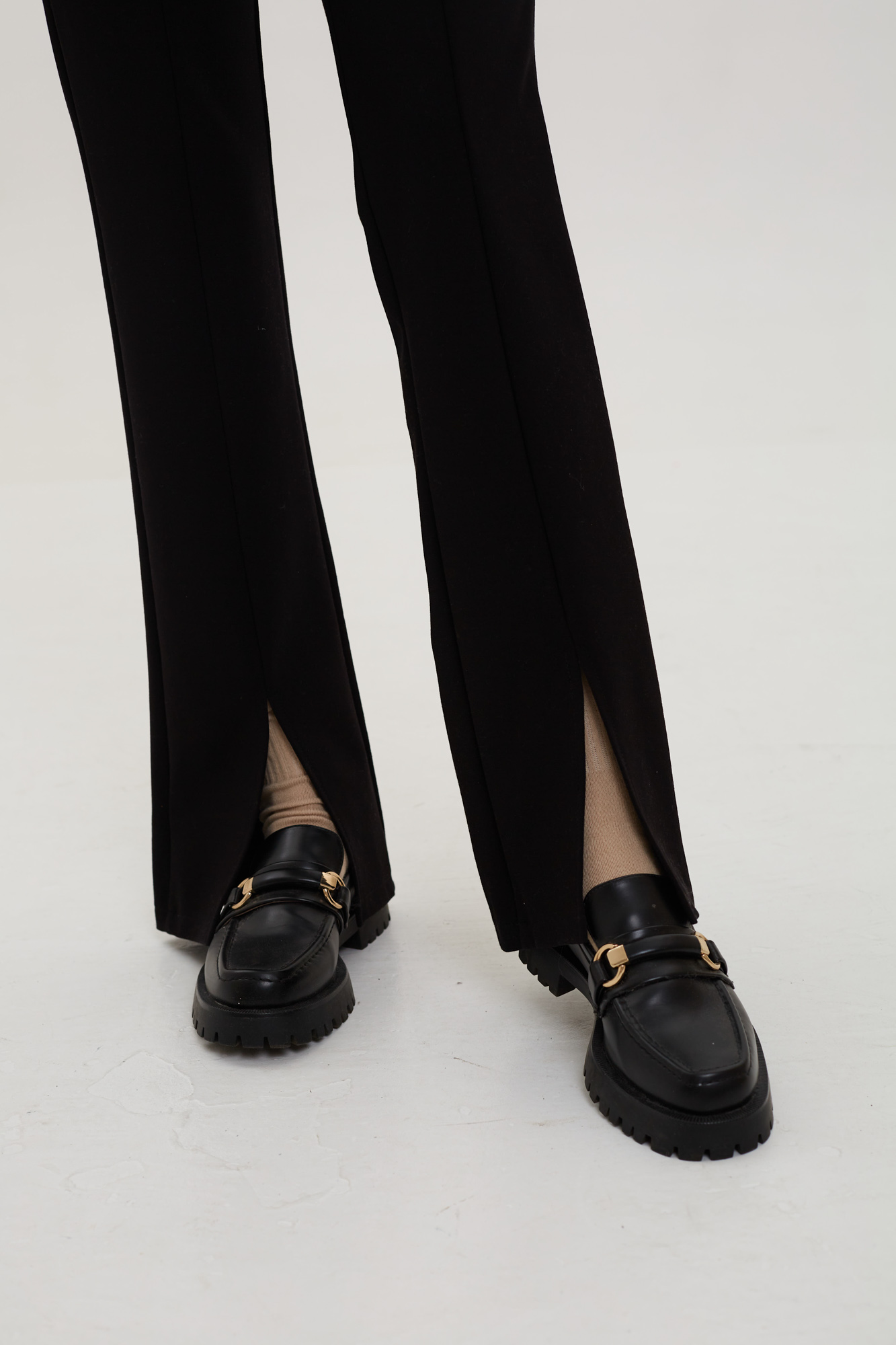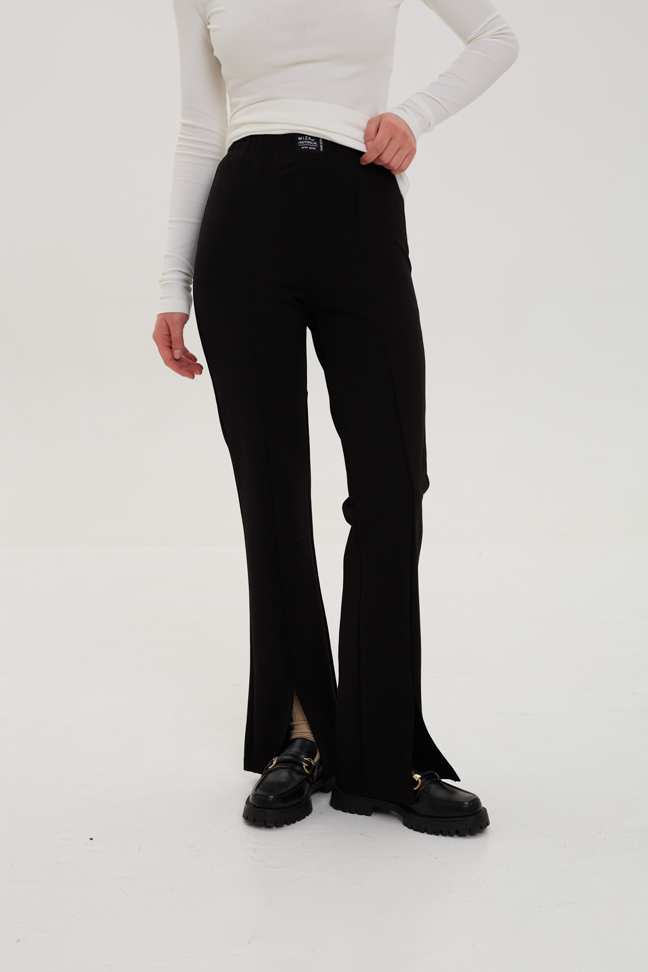 Брюки с разрезами спереди из плотного эластичного трикотажа.