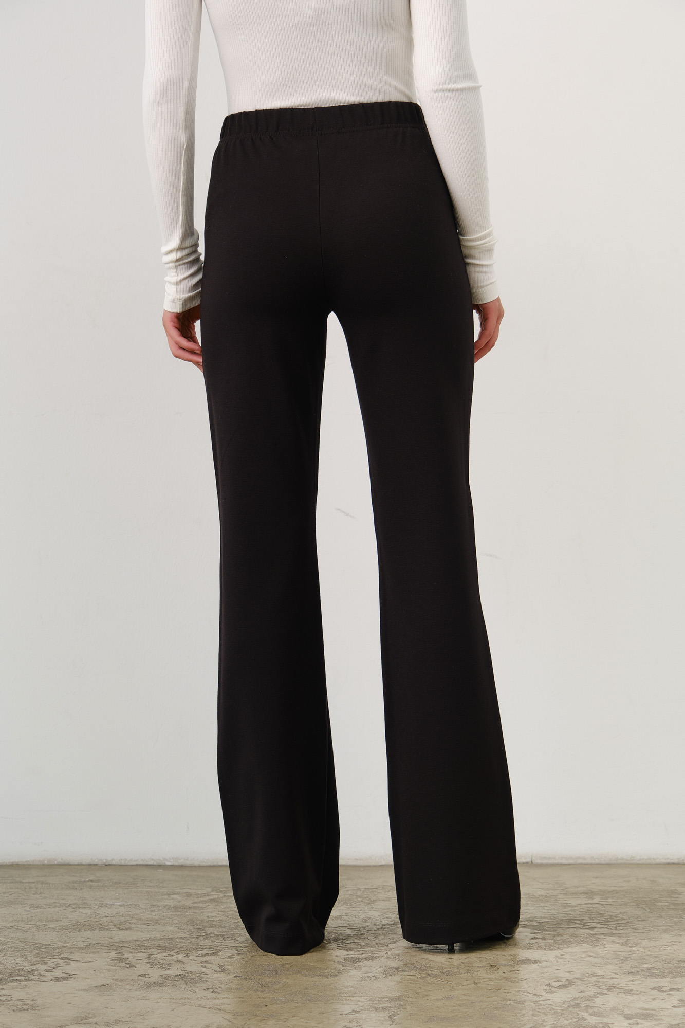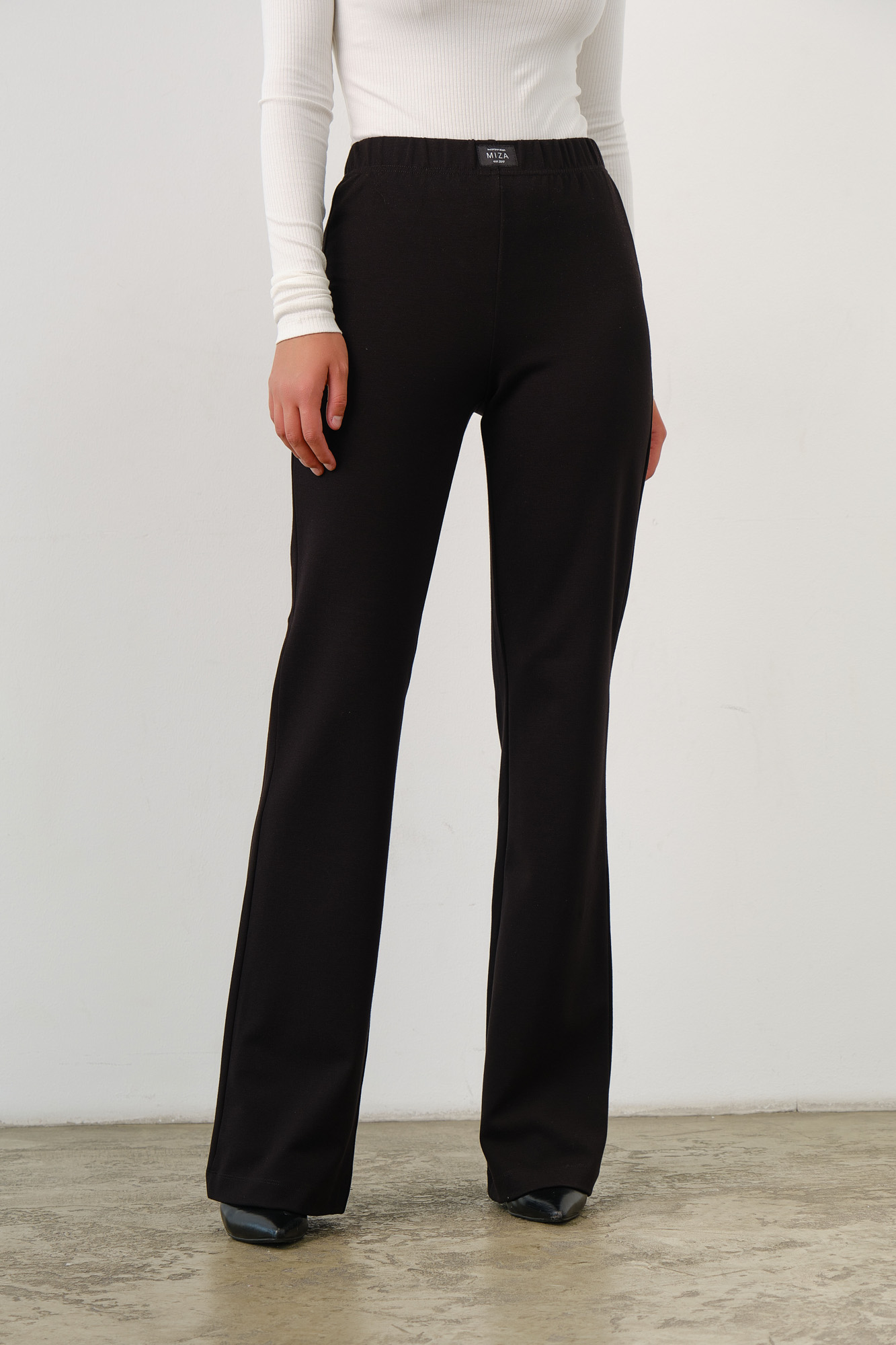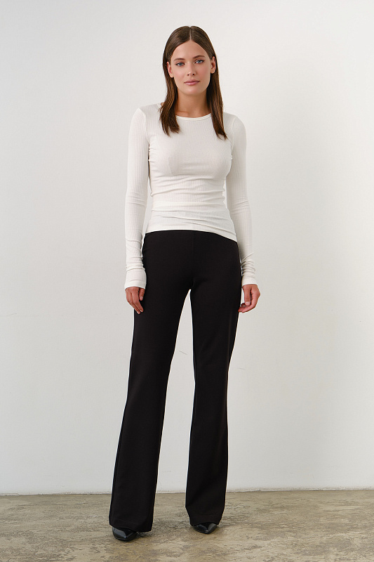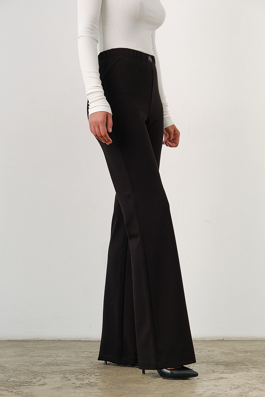 Брюки расклешенного кроя, выполнены из плотного гладкого трикотажа высокого качества.