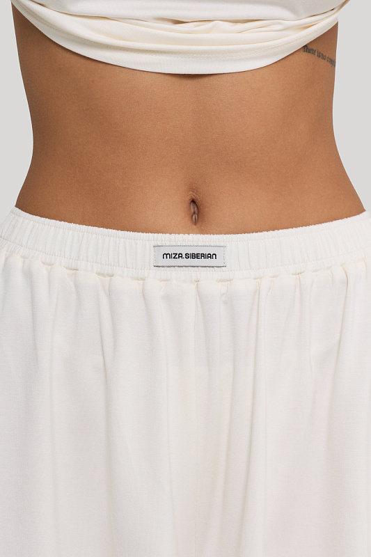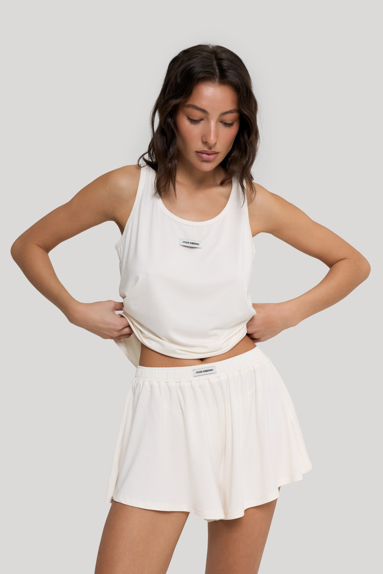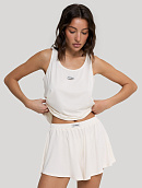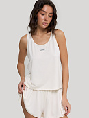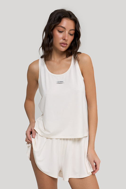 Майка и шортики свободного кроя, оформлены брендированной текстильной нашивкой.