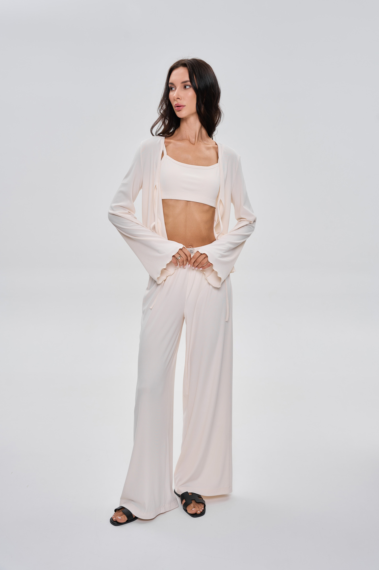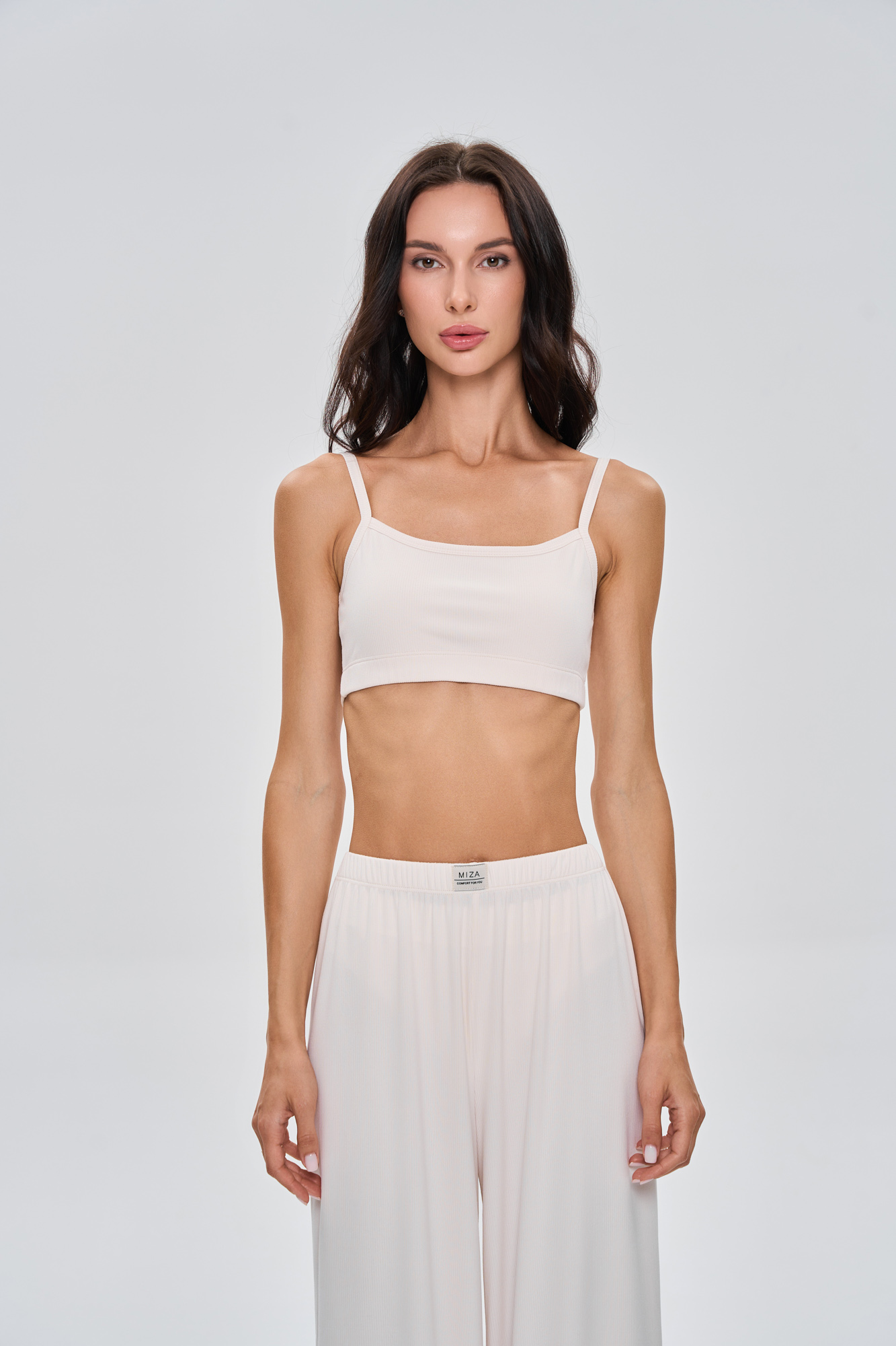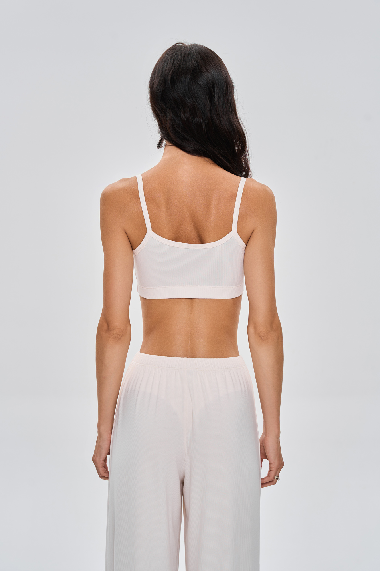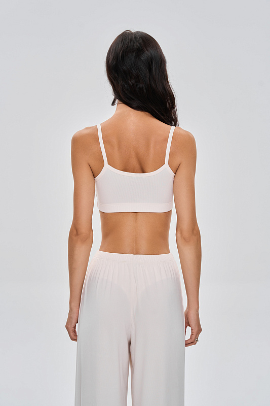 Бралетт на узких бретелях, выполнен из мягкого трикотажа в рубчик, имеет двойной перед.