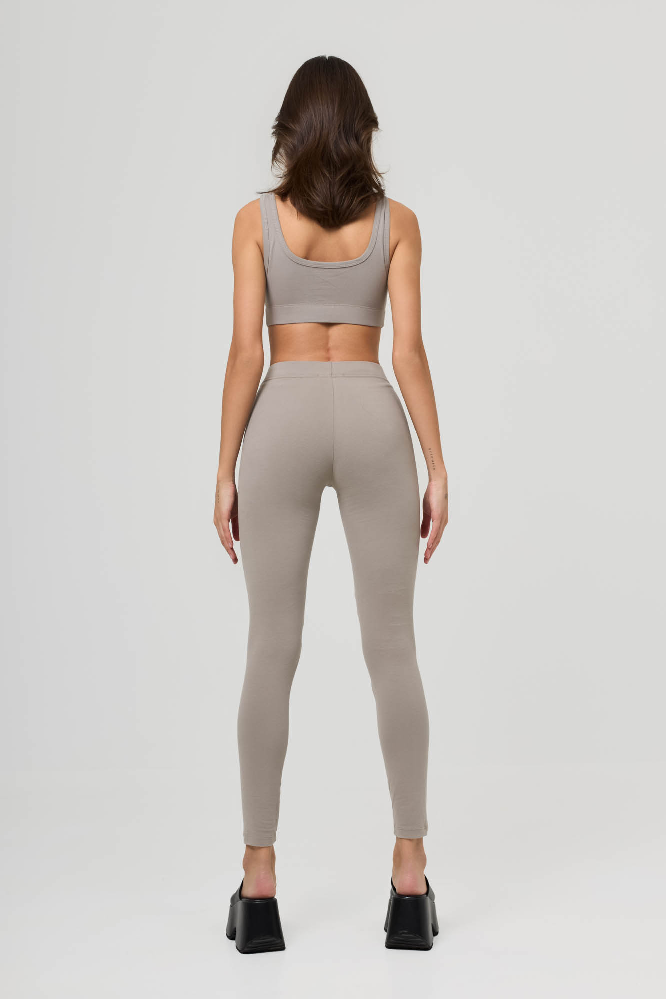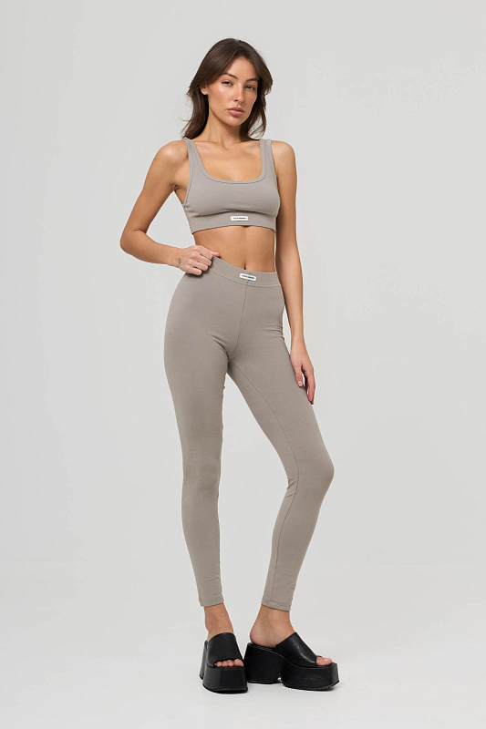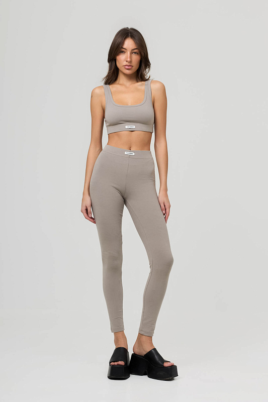 Состоит из бралетта на широких бретелях и леггинсов базового кроя.
