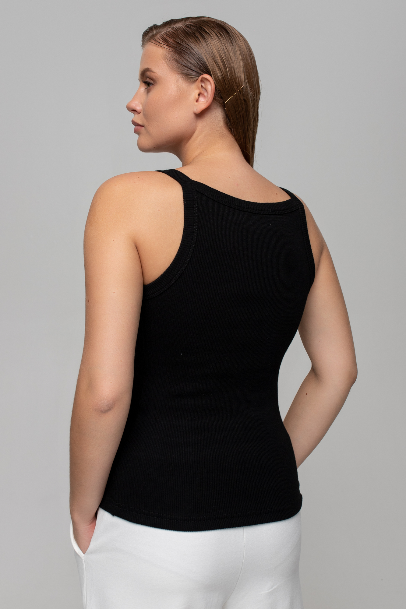 Идеальная базовая майка из мягкого трикотажа в рубчик.