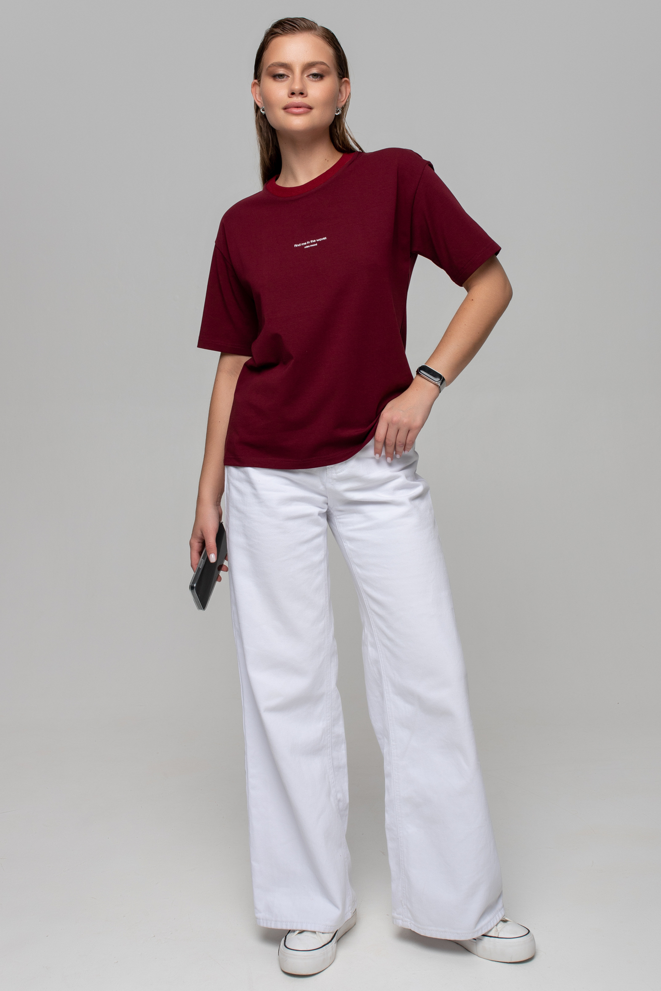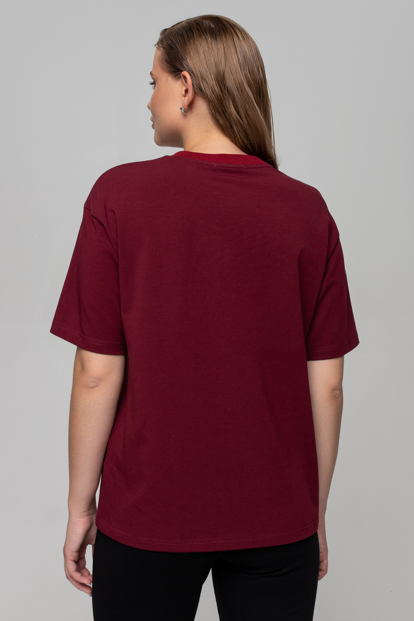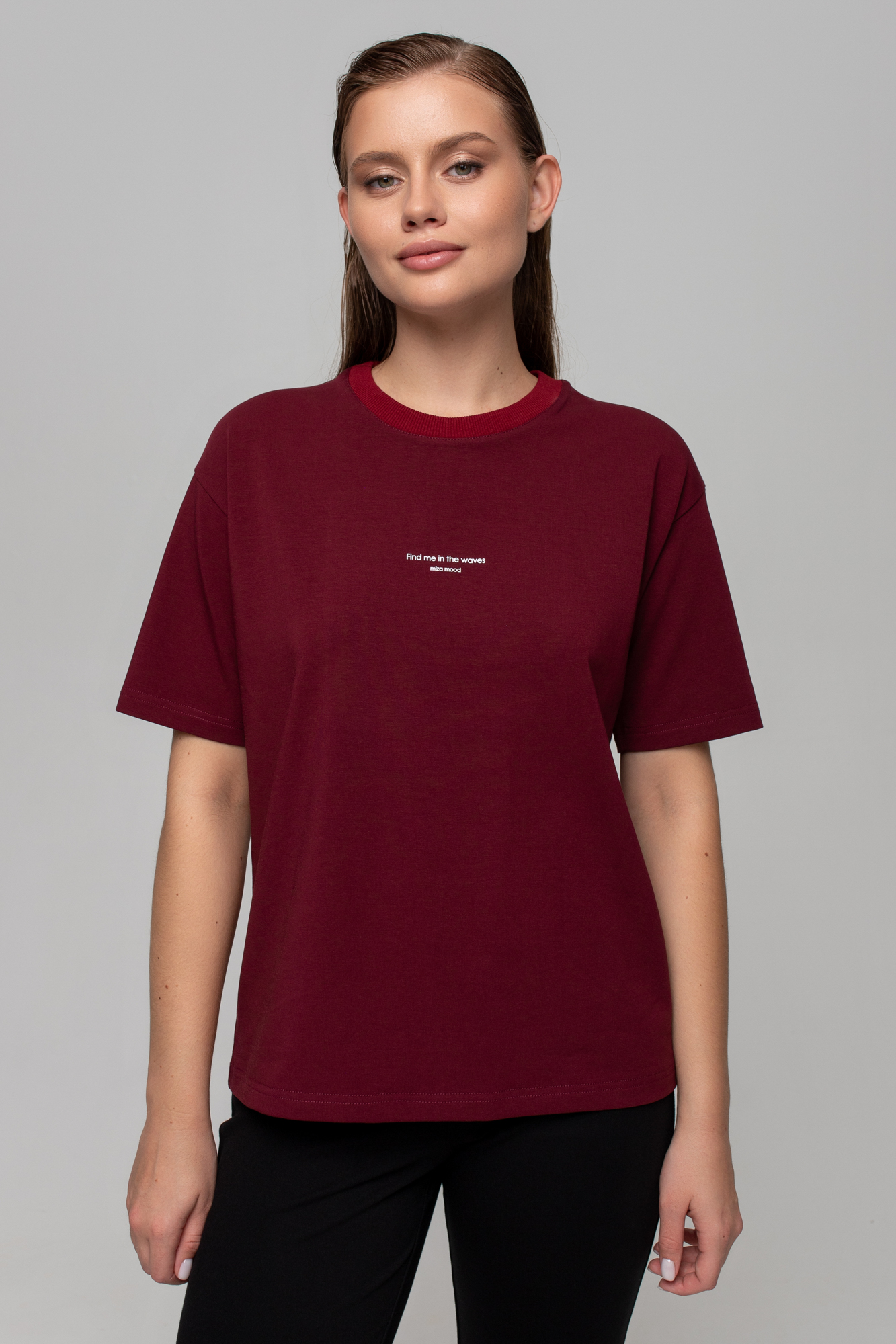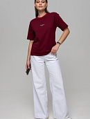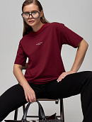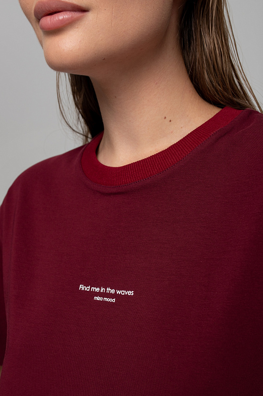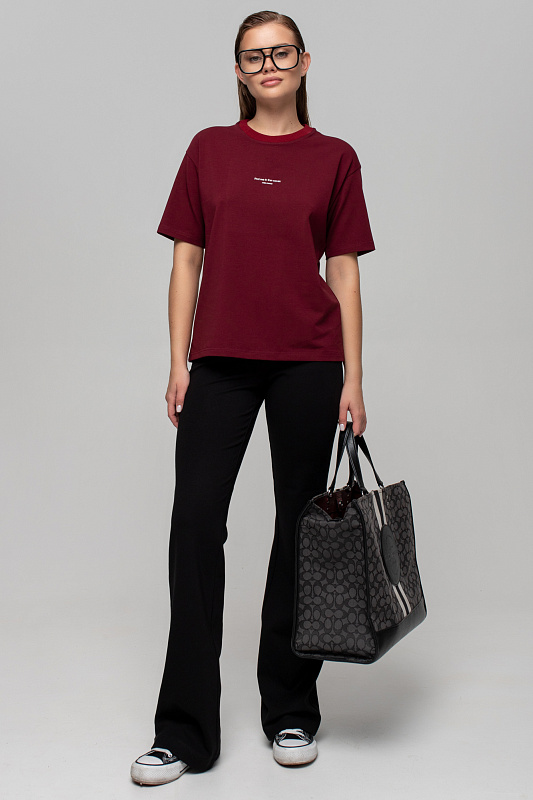 Футблока базового кроя с текстовым принтом на переде.