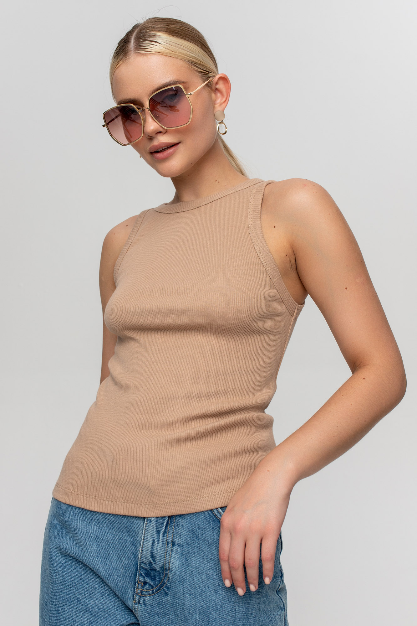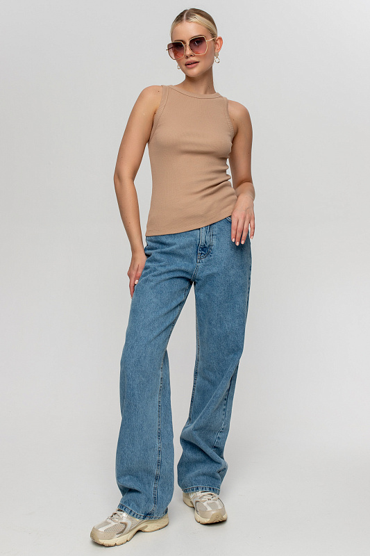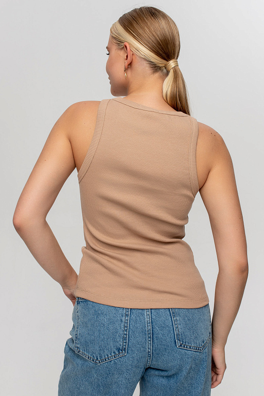 Майка в рубчик базового кроя.