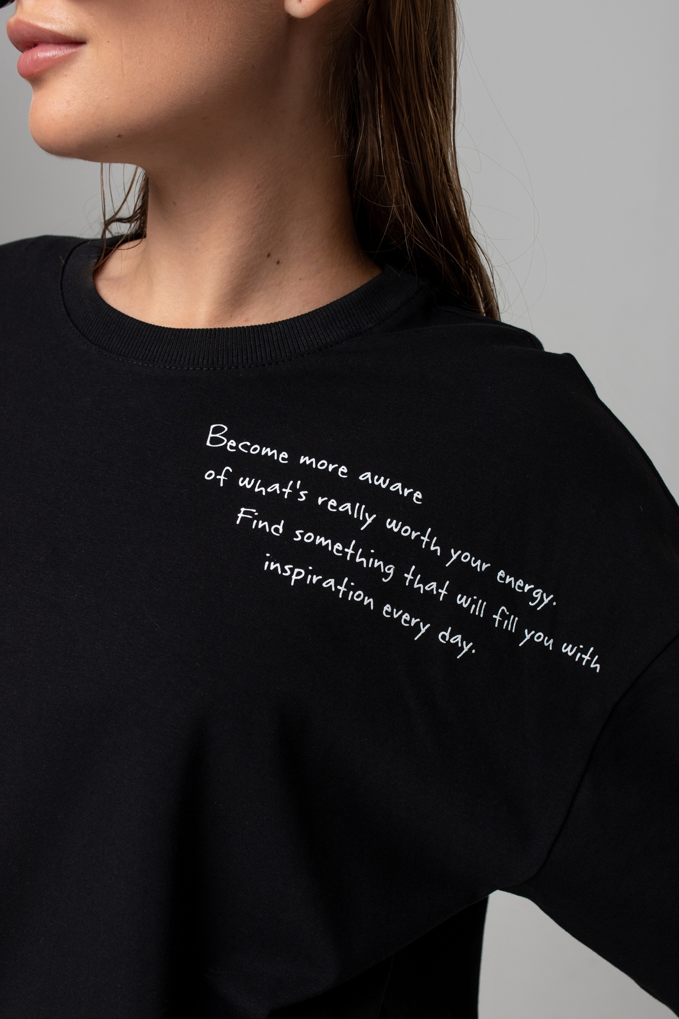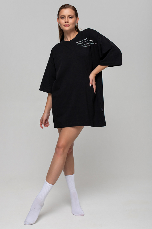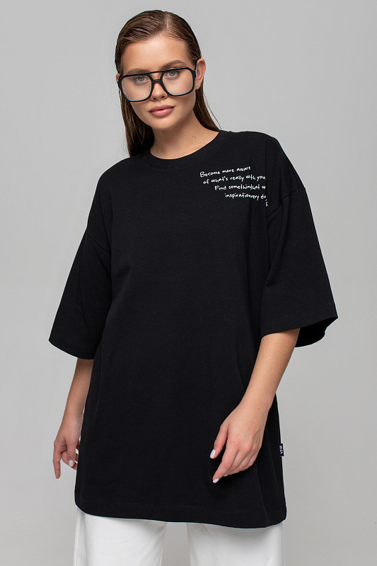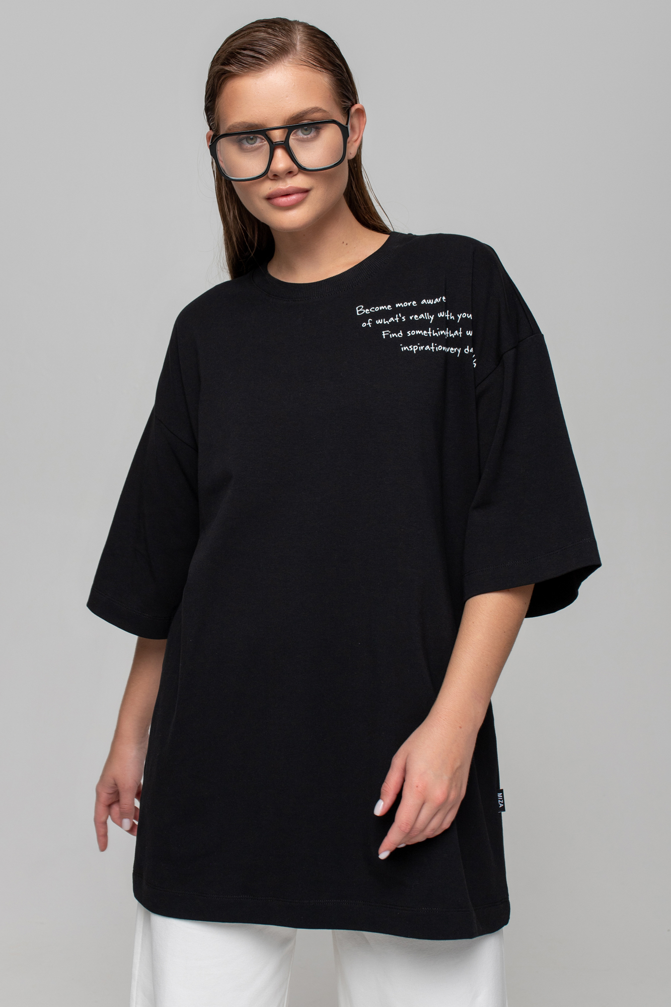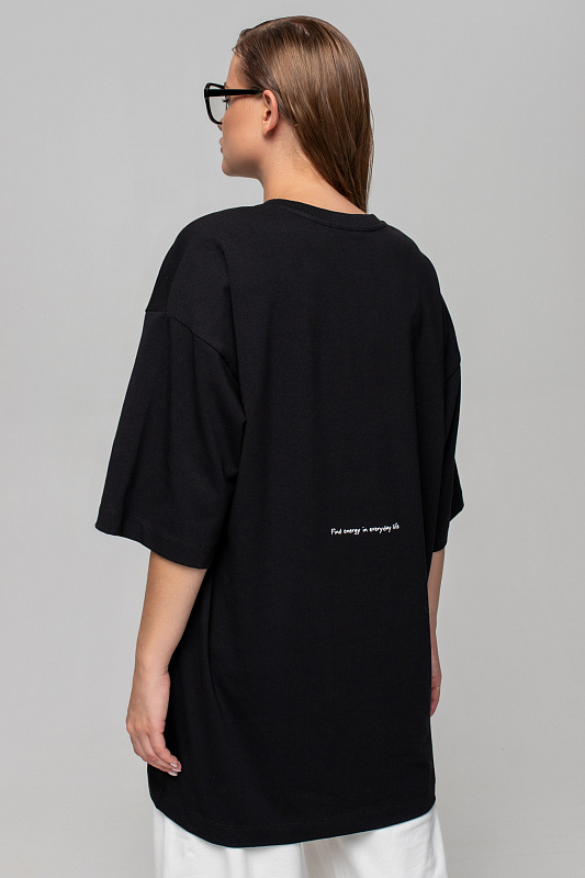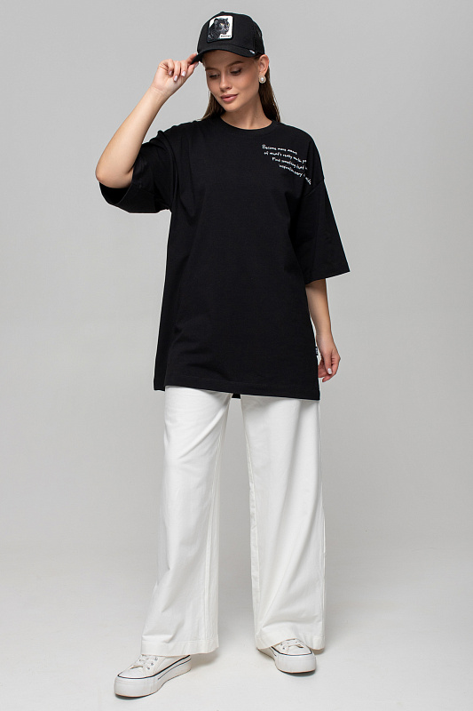 Футблока Over Size с текстовым принтом на переде и на спине.