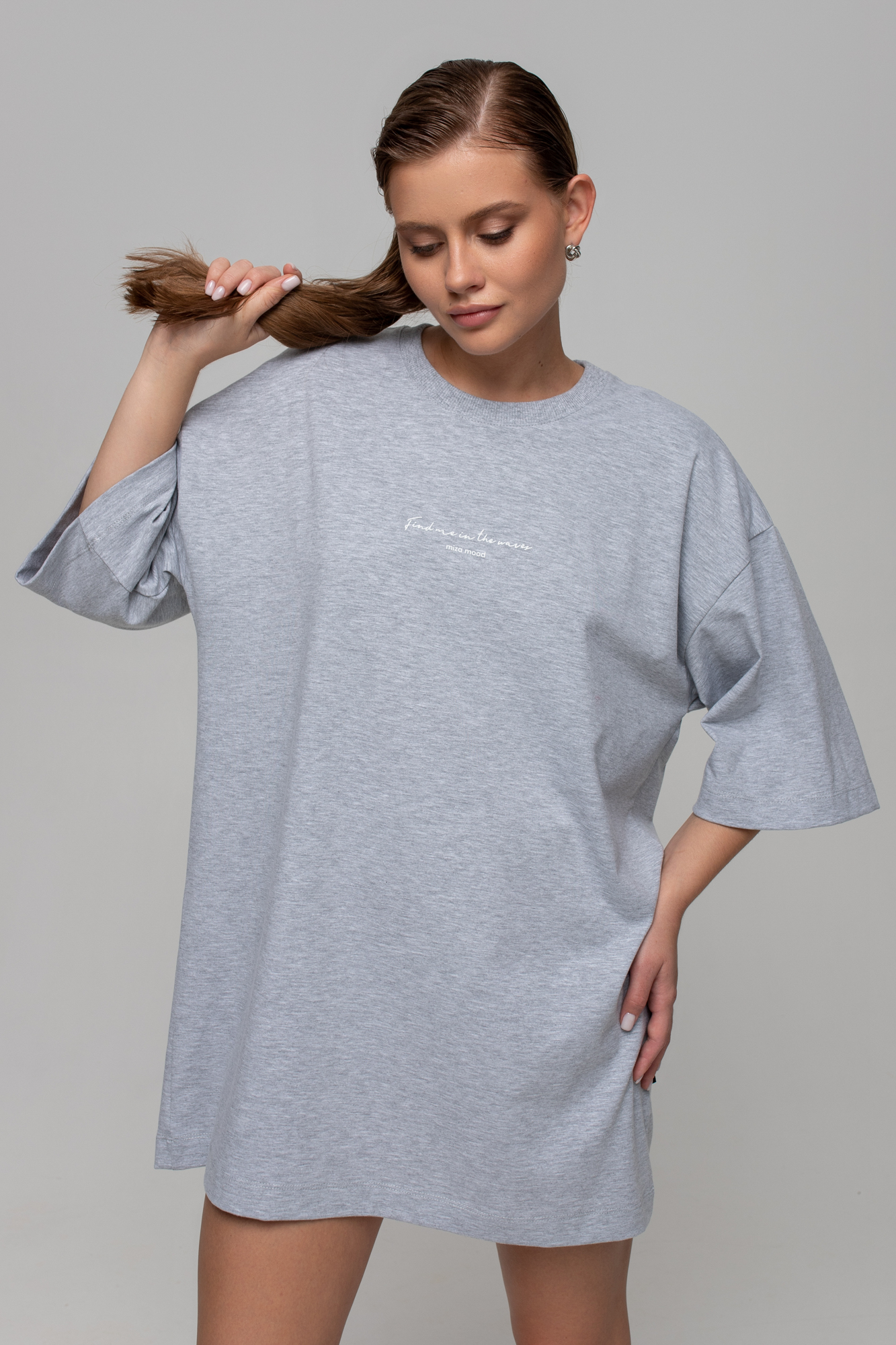 Футблока Over Size c текстовым принтом на переде и на спине.