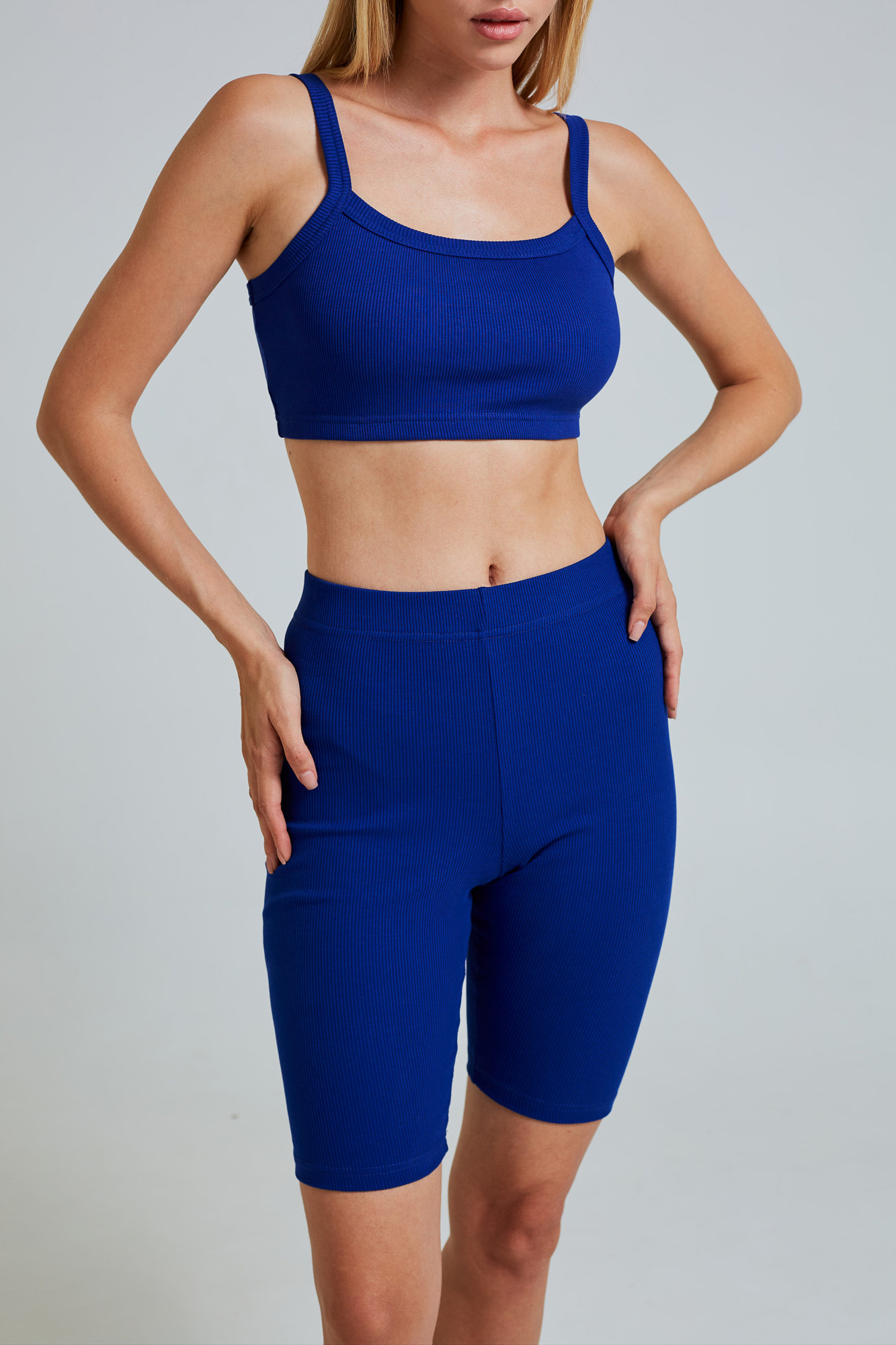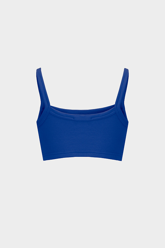 Топ из мягкого трикотажа средней плотности в мелкий рубчик, на узких бретелях.