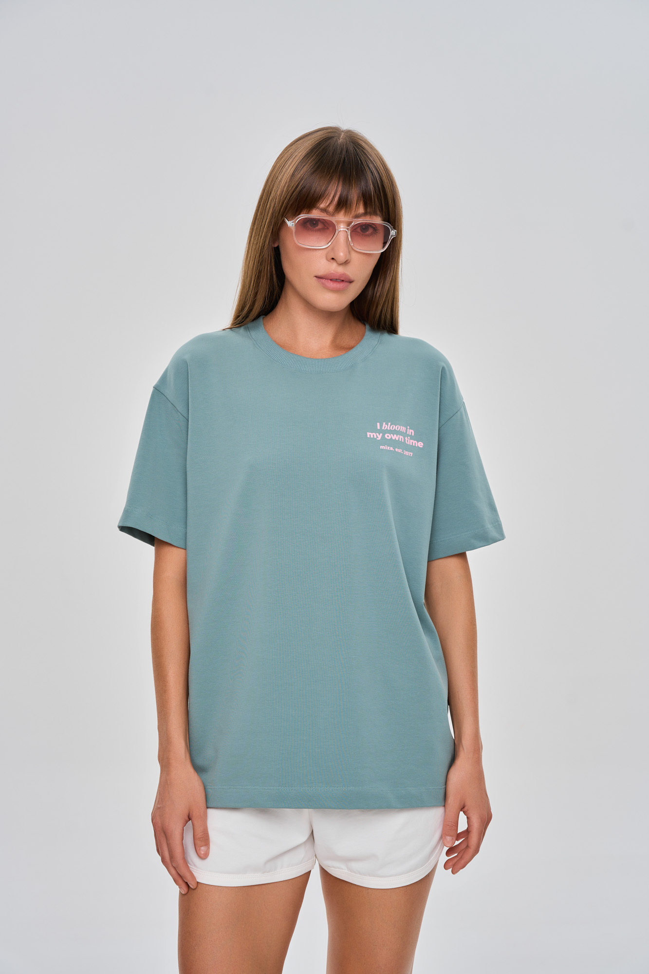 Футболка свободного кроя, выполнена из хлопкового трикотажа, содержащего эластан.