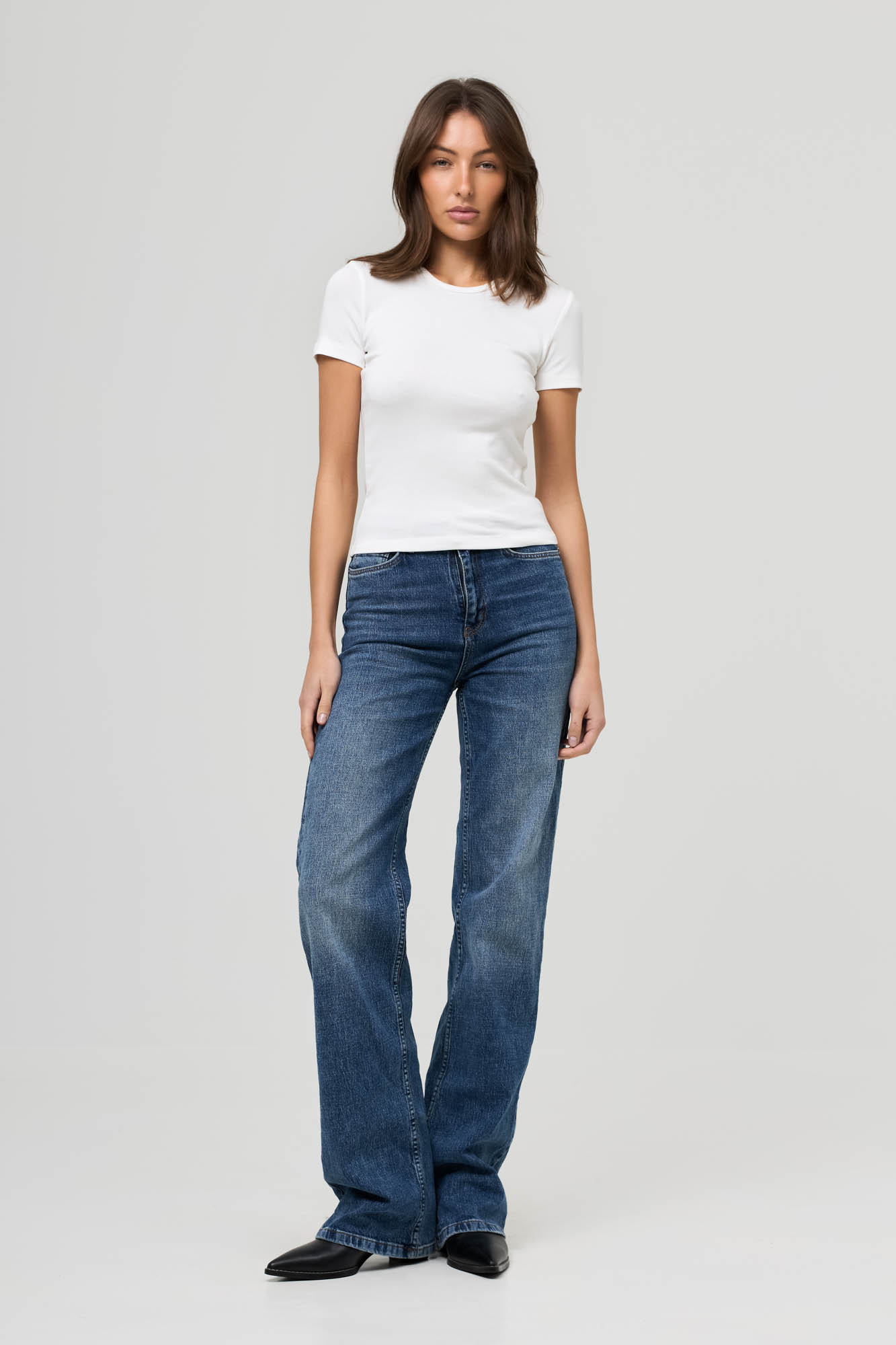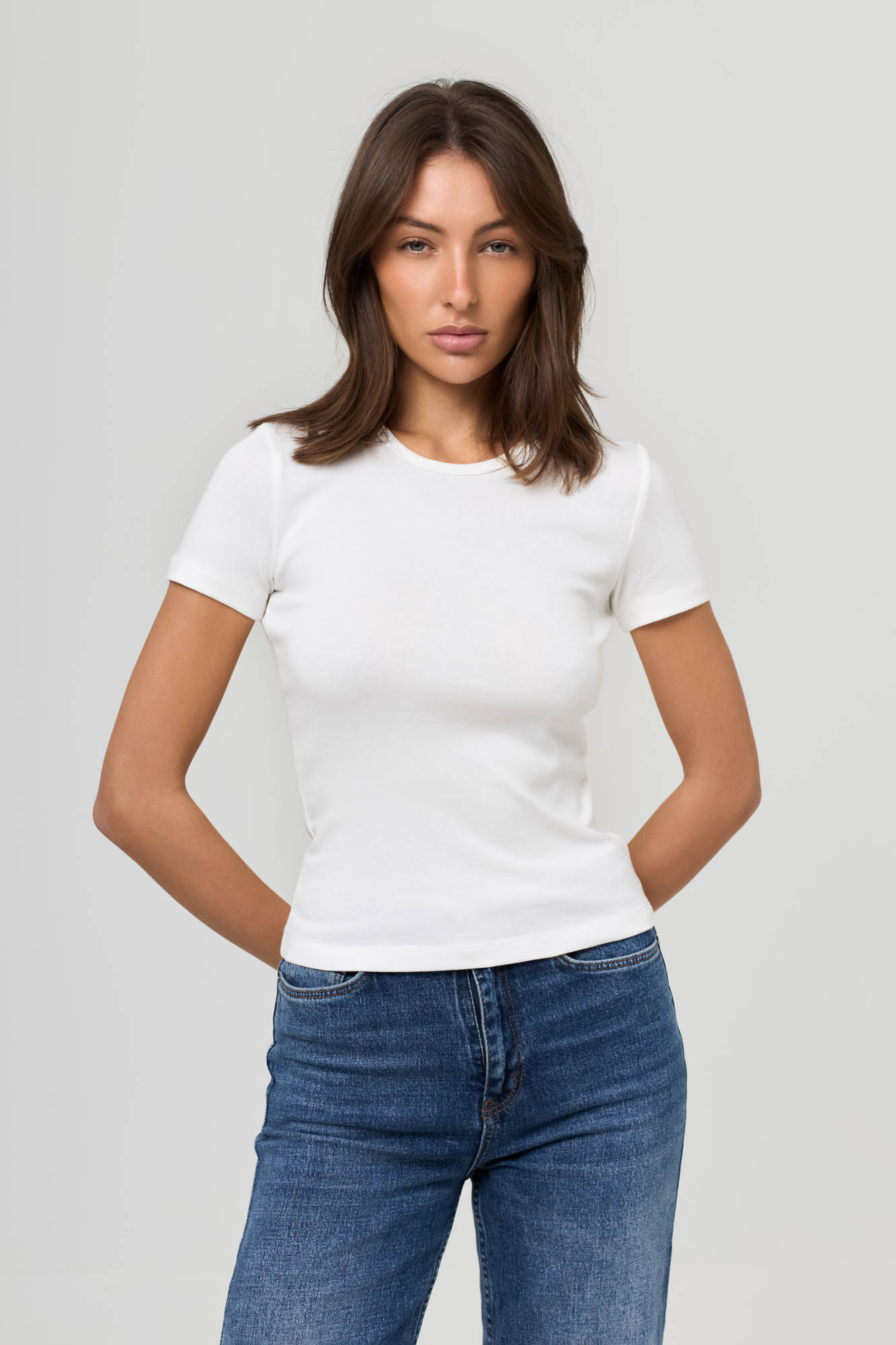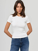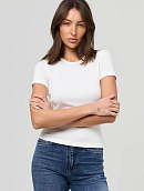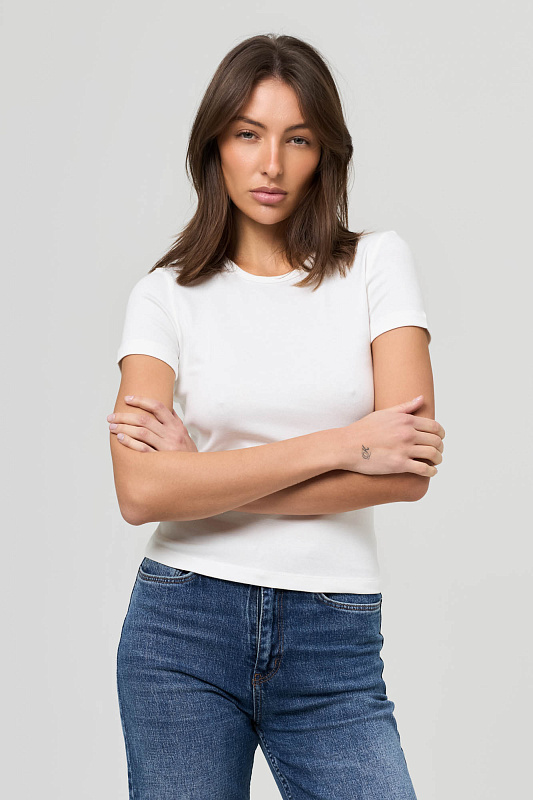 Футболка с коротким рукавом, прилегающего кроя с аккуратной горловиной.
