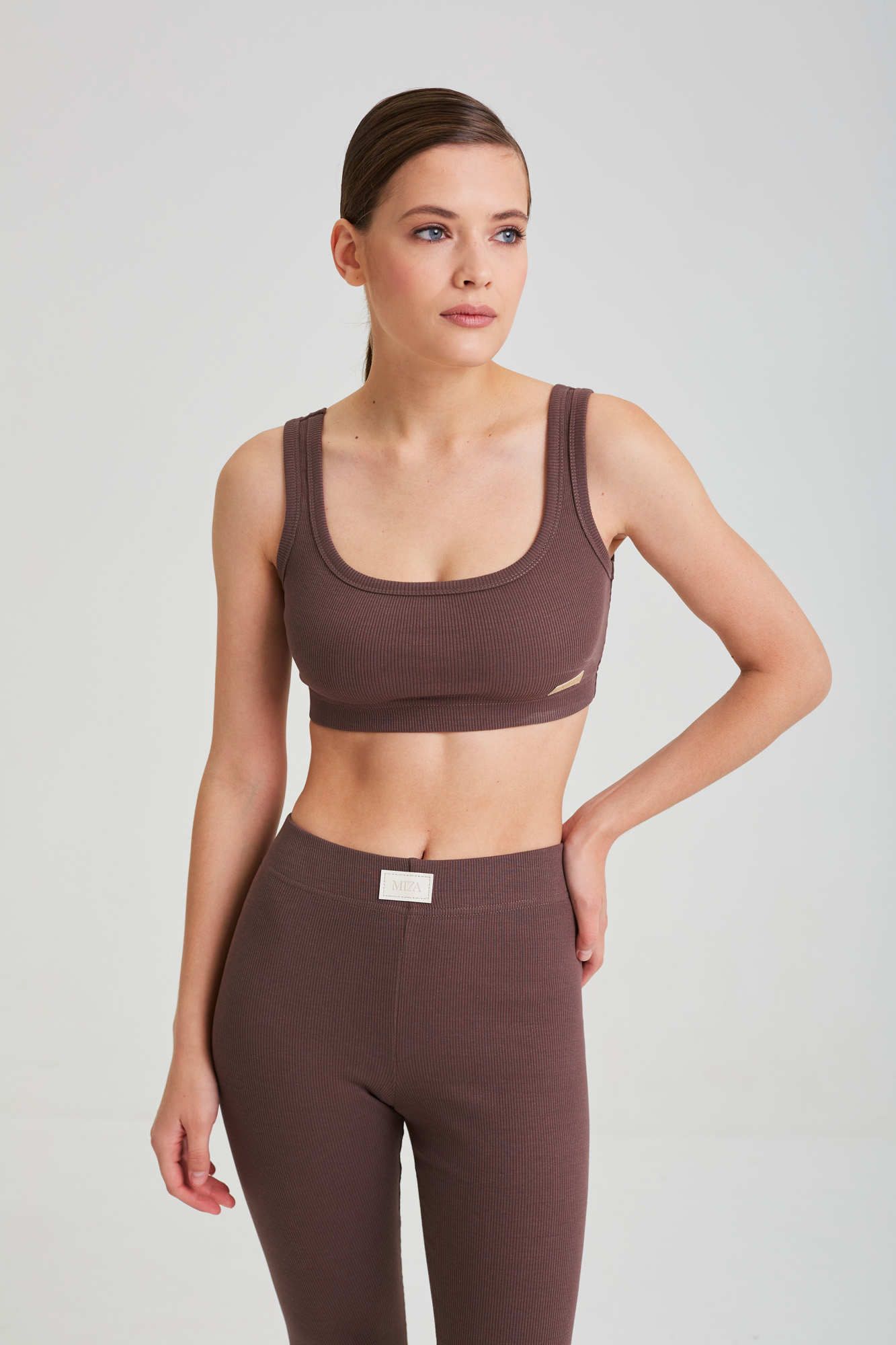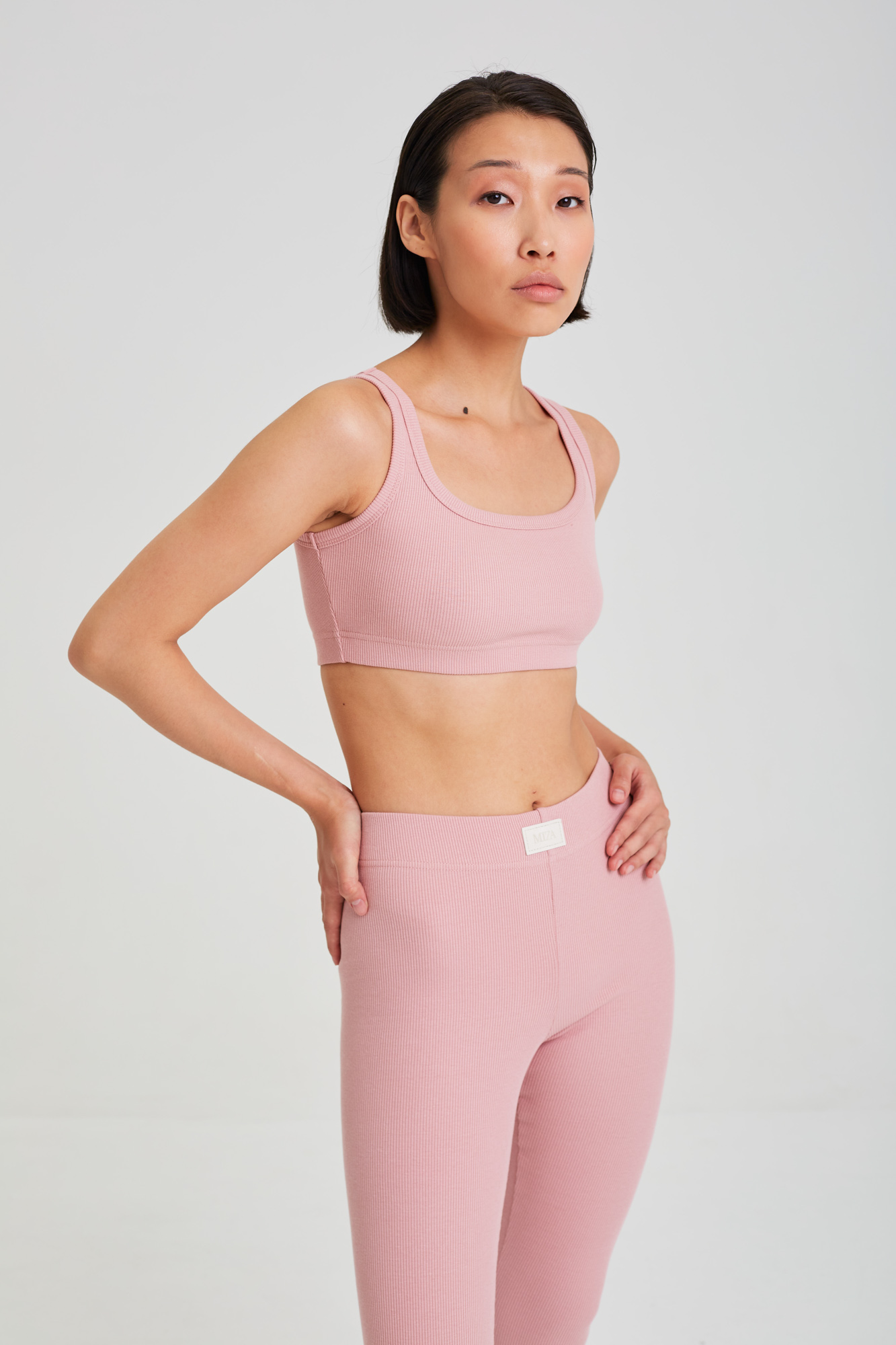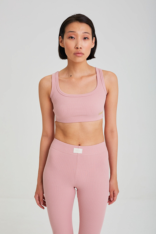 Топ из мягкого трикотажа средней плотности в мелкий рубчик, на широких бретелях.