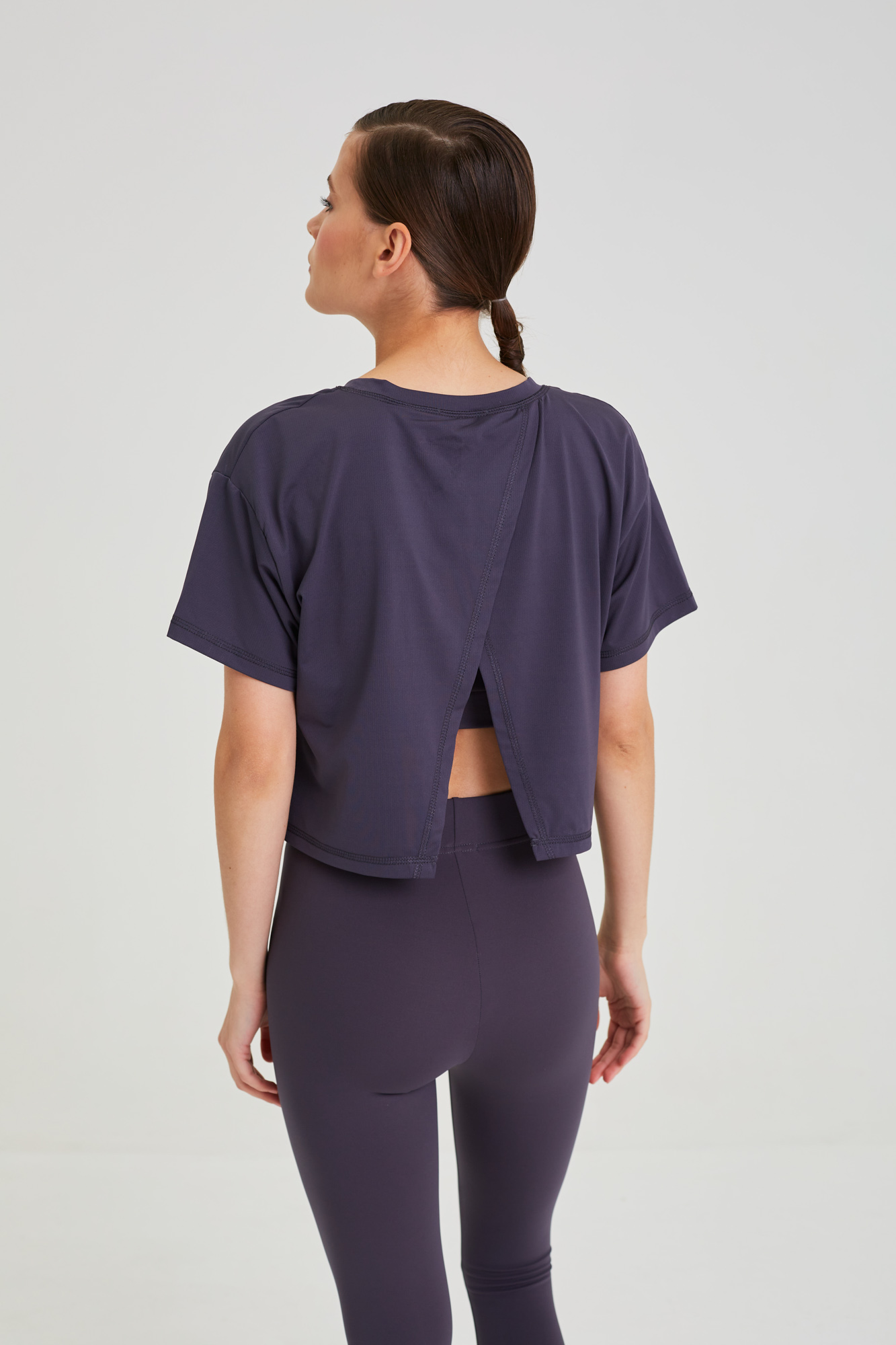 На спине высокий разрез.