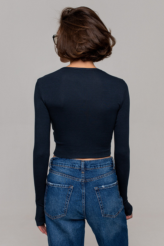 Укороченный лонгслив из нежного органического трикотажа, дополнен минималистичным принтом на переде.