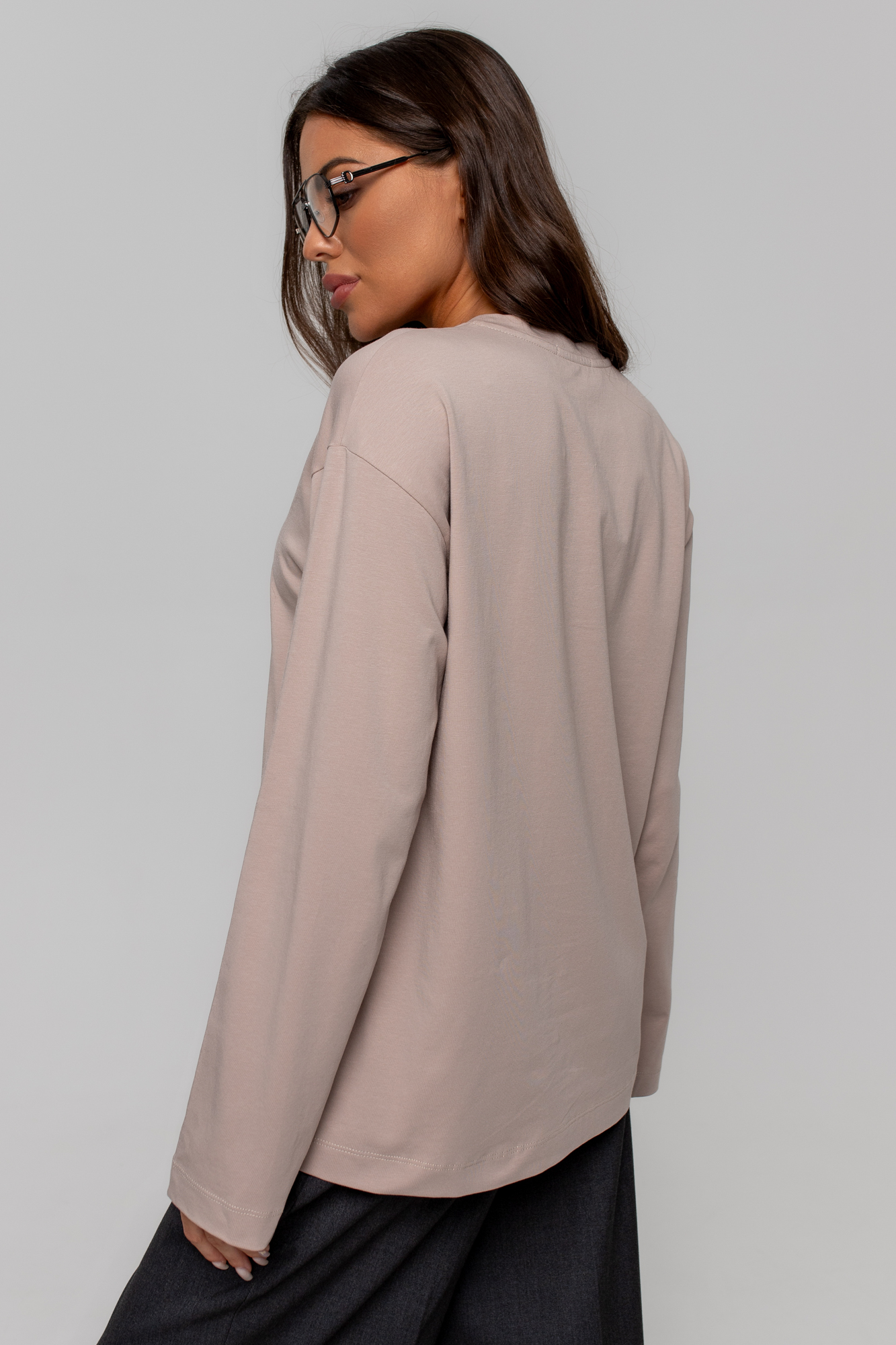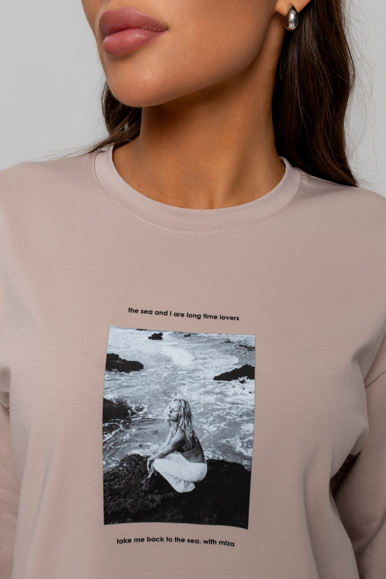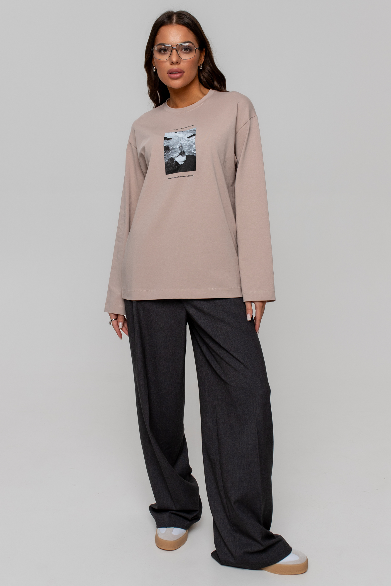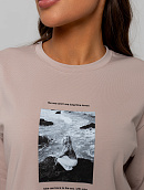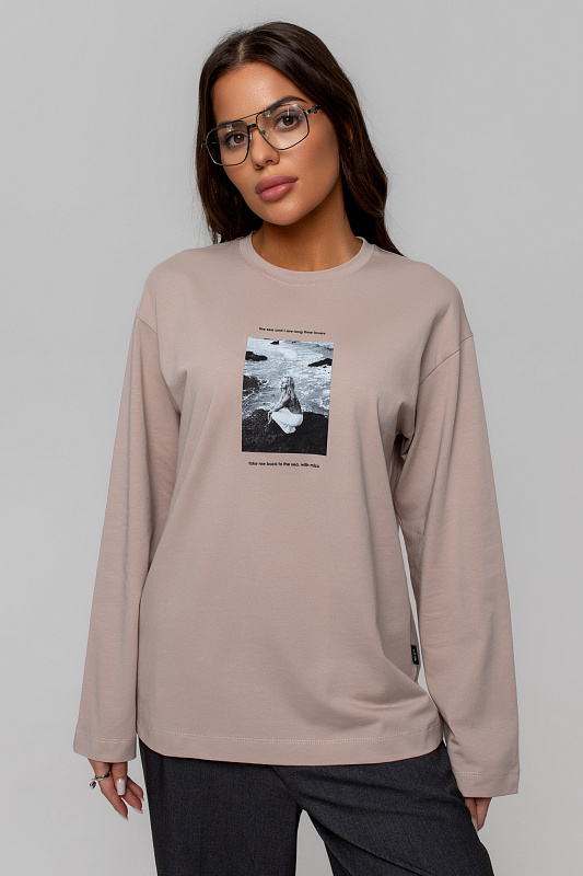 Лонгслив свободного кроя over-size, оформлен дизайнерским фото-принтом.