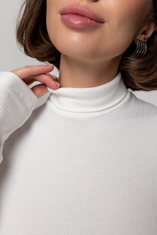 Водолазка прилегающего кроя, имеет удлиненный рукав с отверстием для пальца.