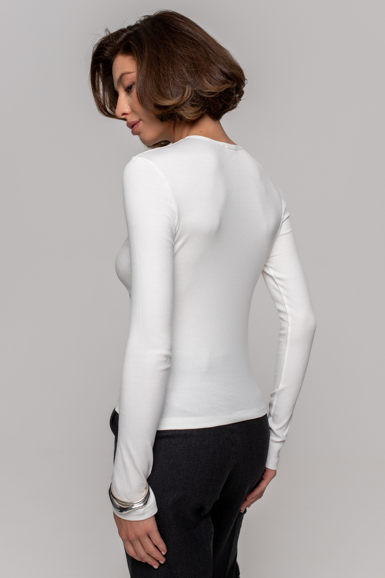Лонгслив прилегающего кроя с удлиненным рукавом.