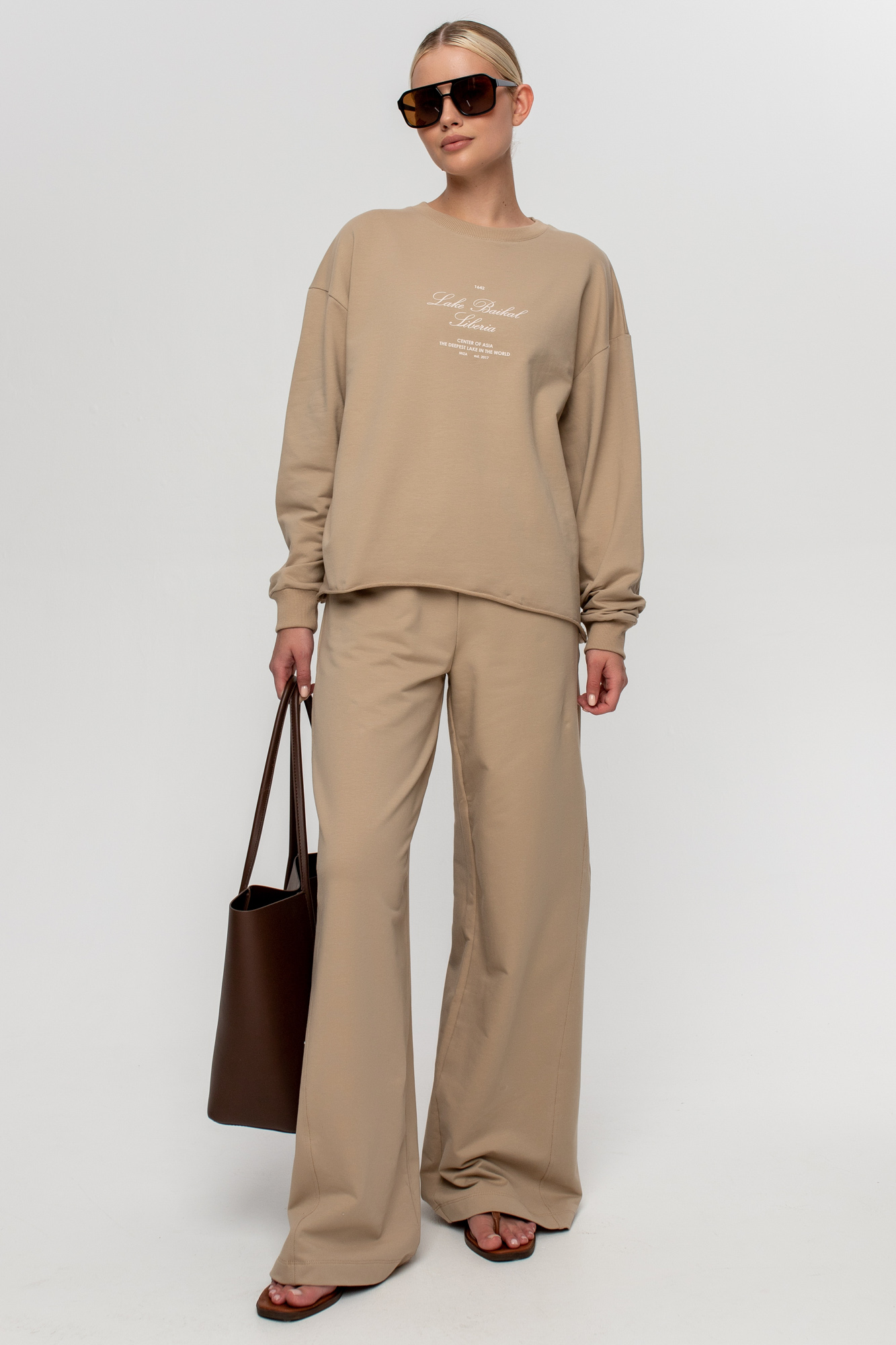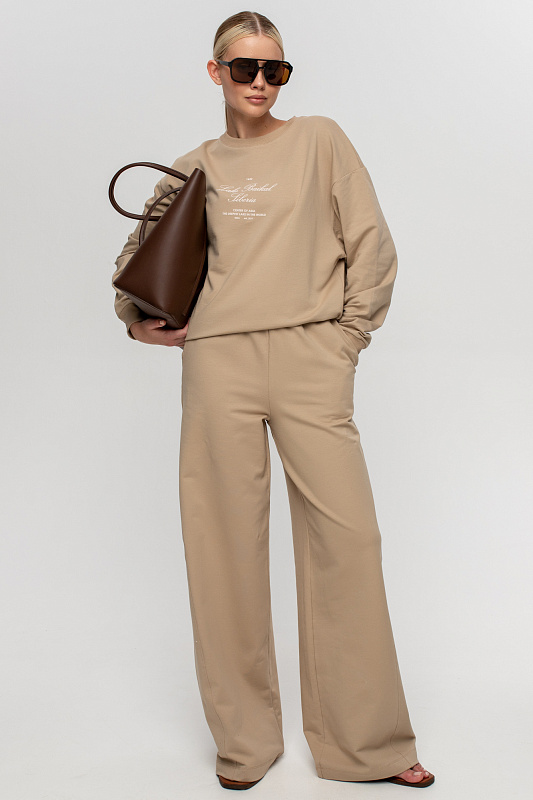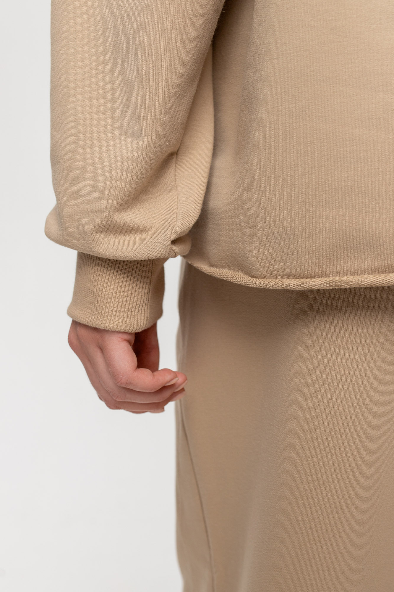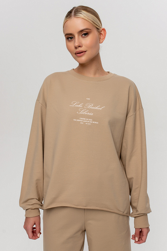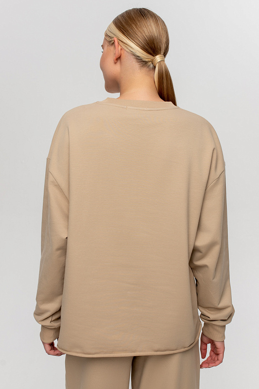 Свитшот свободного кроя с ассиметричным низом с имитацией открытого среза.