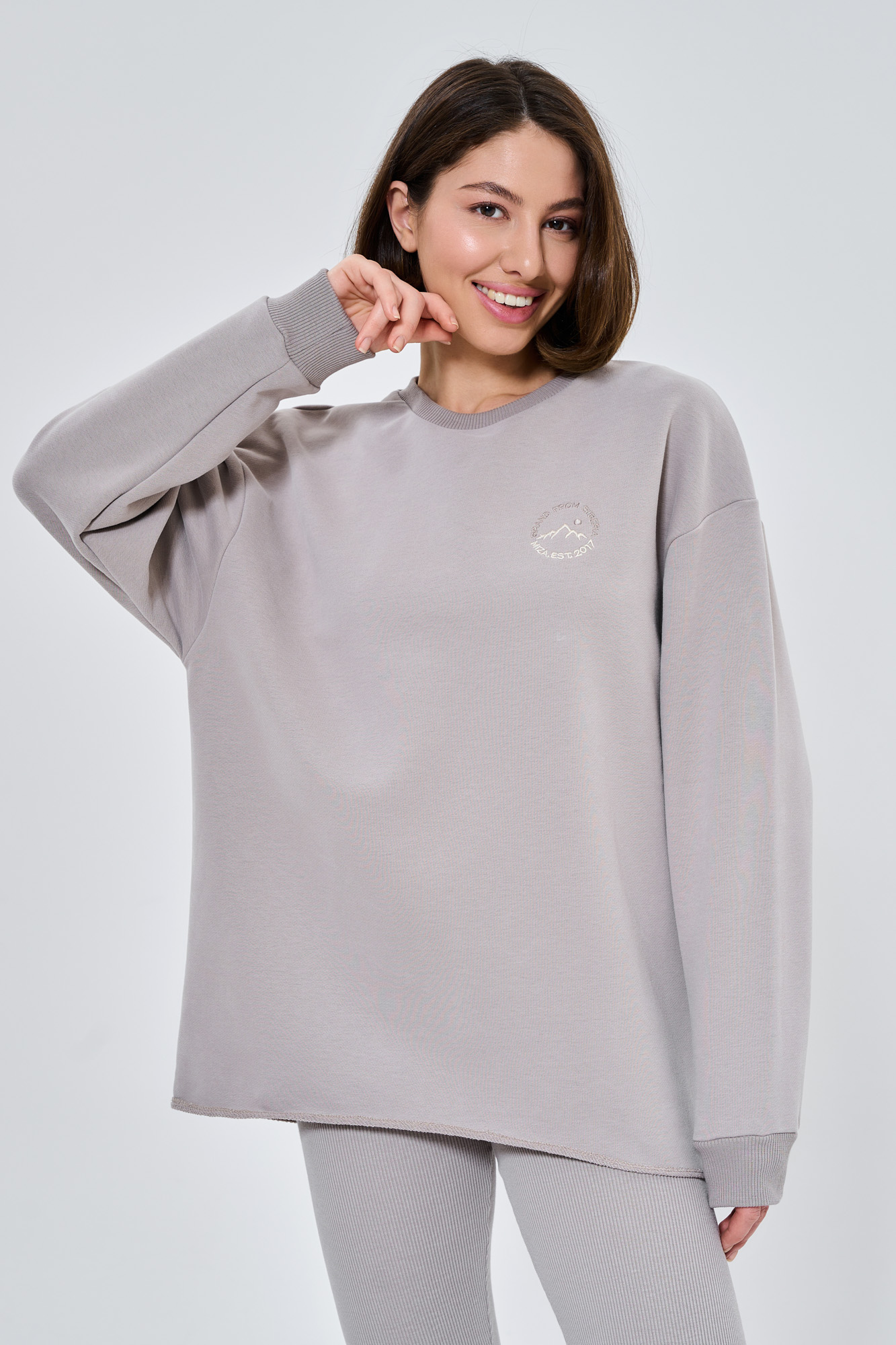 Свитшот удлиненный свободного кроя из премиального трикотажа.