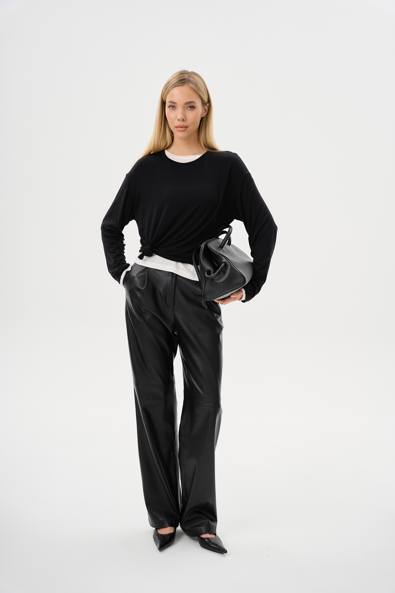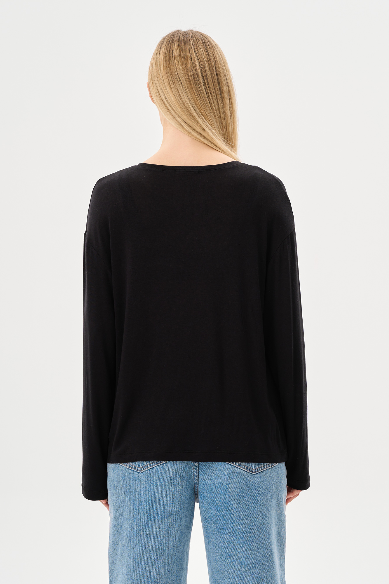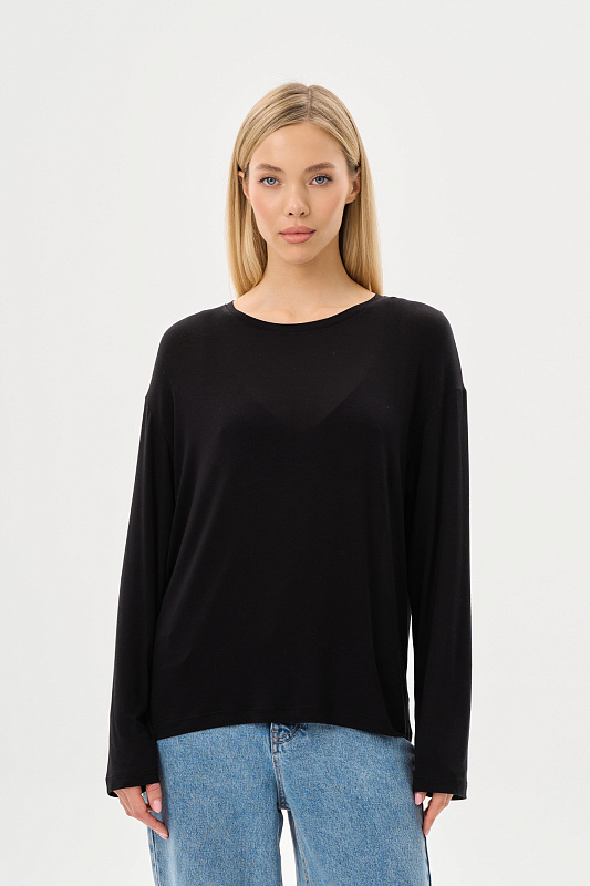 Лонгслив свободного кроя из нежного струящегося трикотажа, содержащего вискозу.