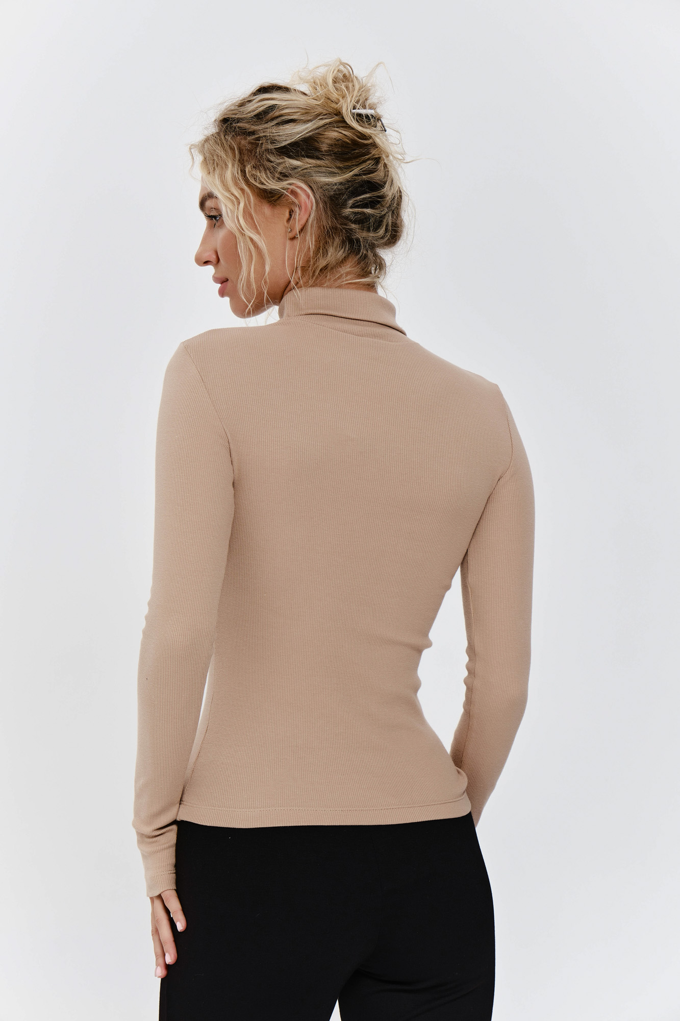 Идеальная базовая водолазка из мягкого трикотажа в рубчик.