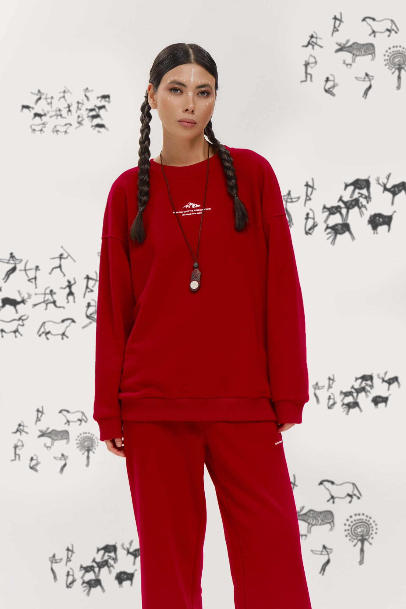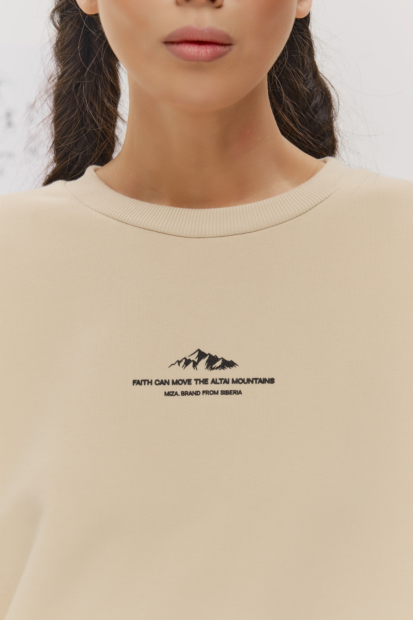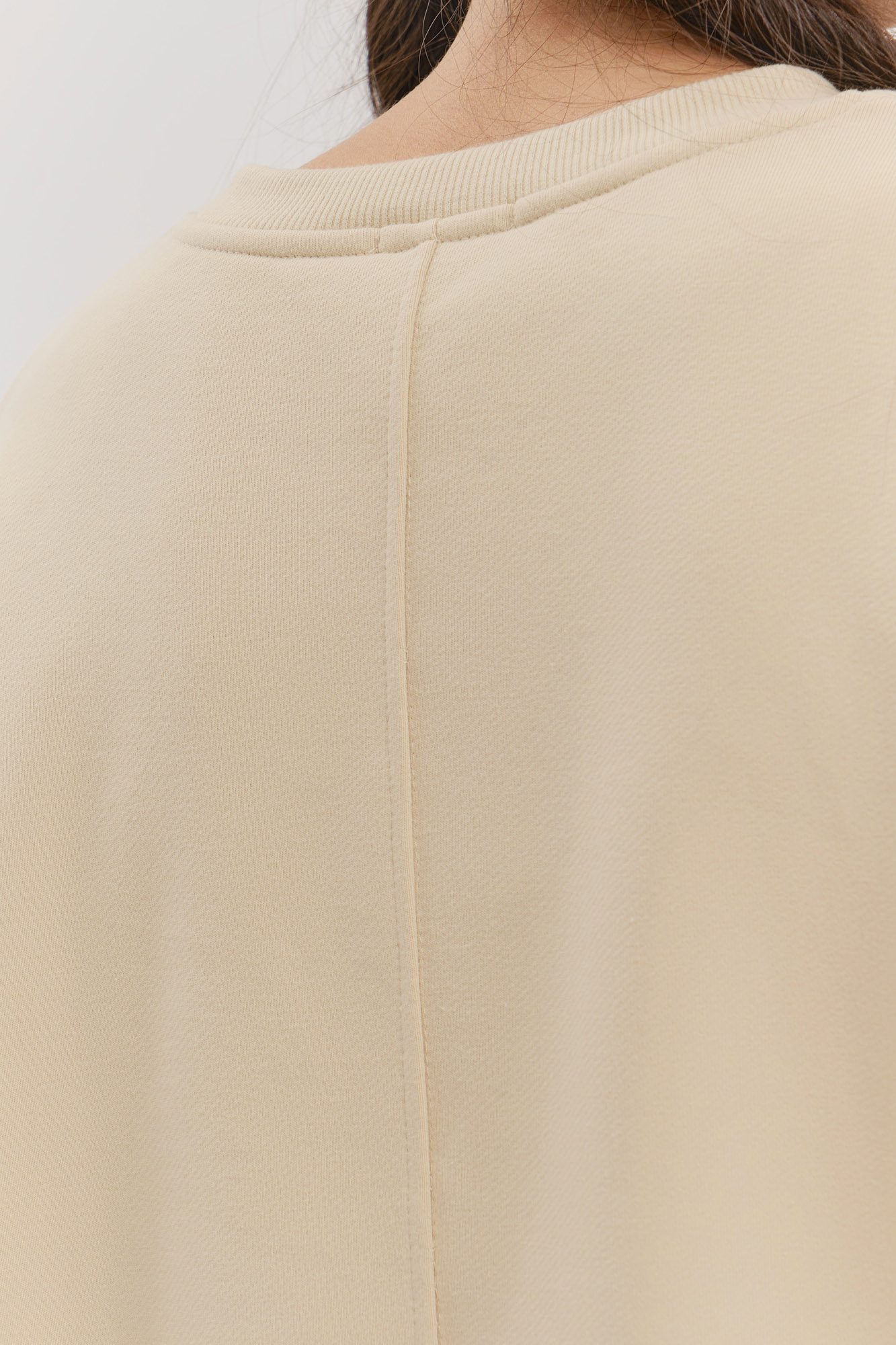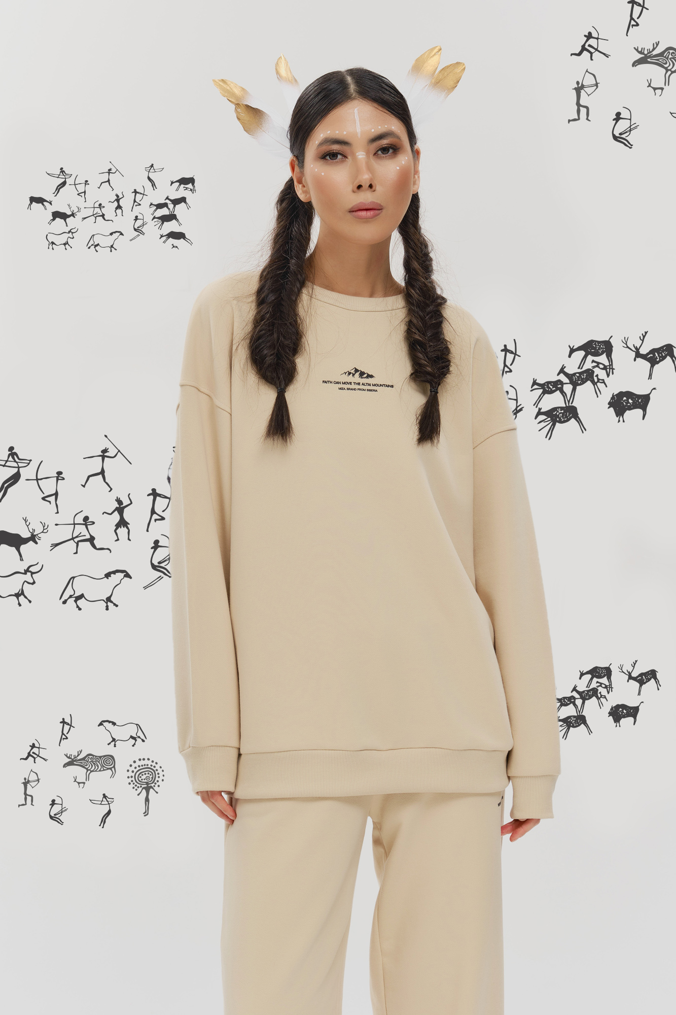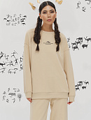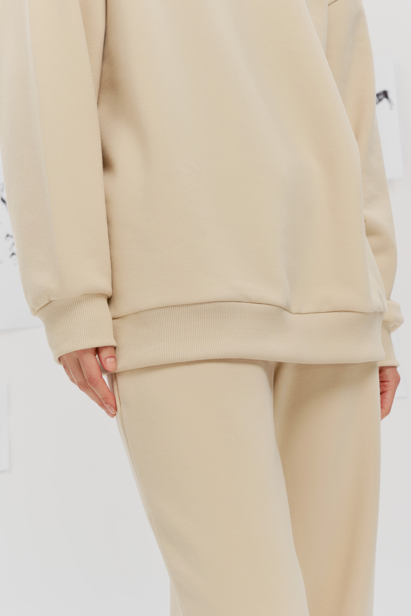 Удлиненный свитшот объемного кроя из премиального трикотажа с петельной изнанкой. Пояс, манжеты и обтачка горловины