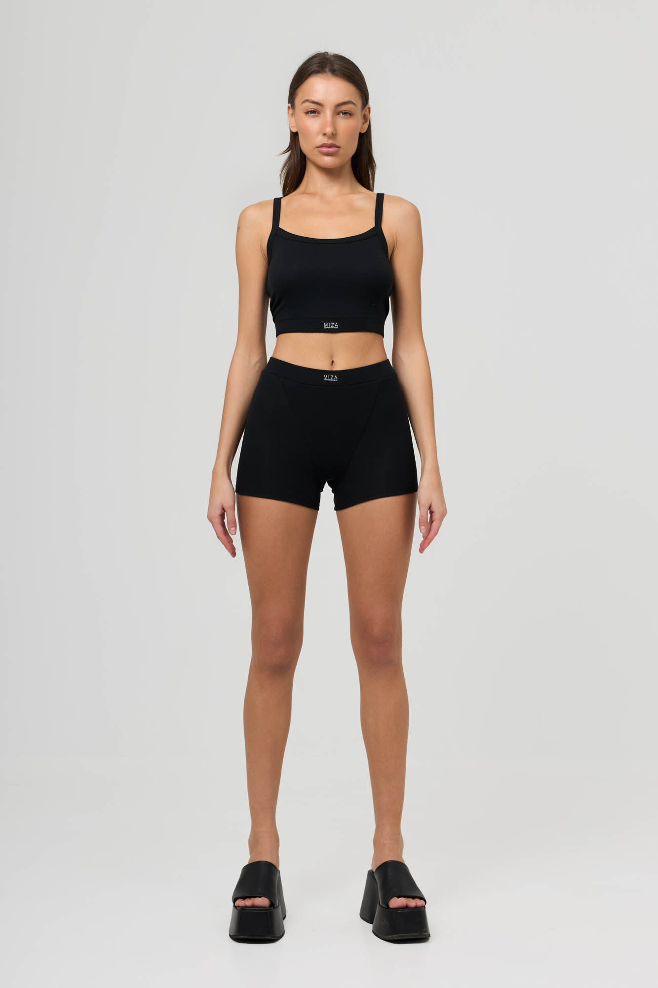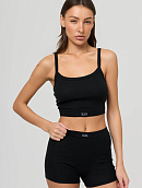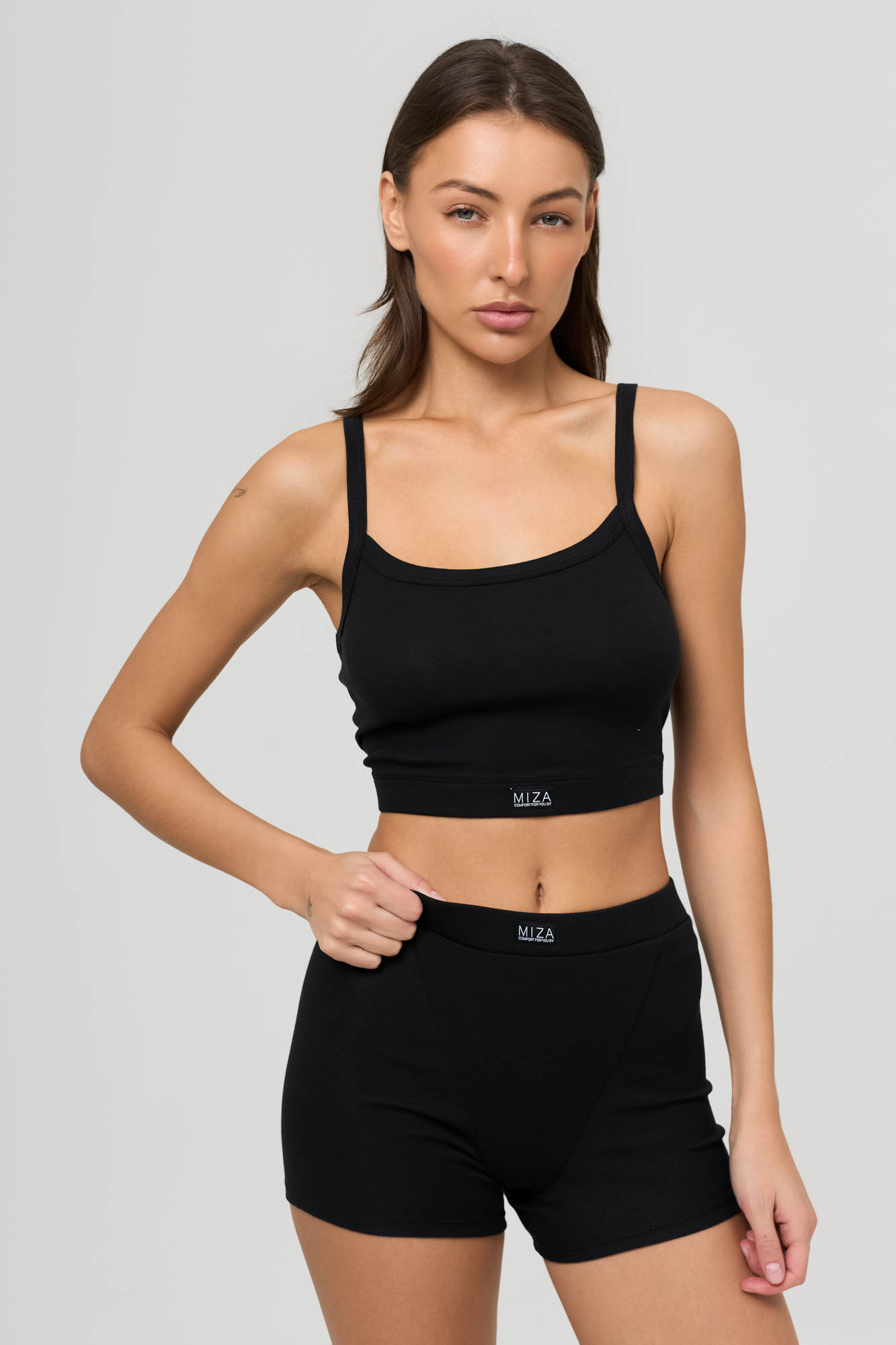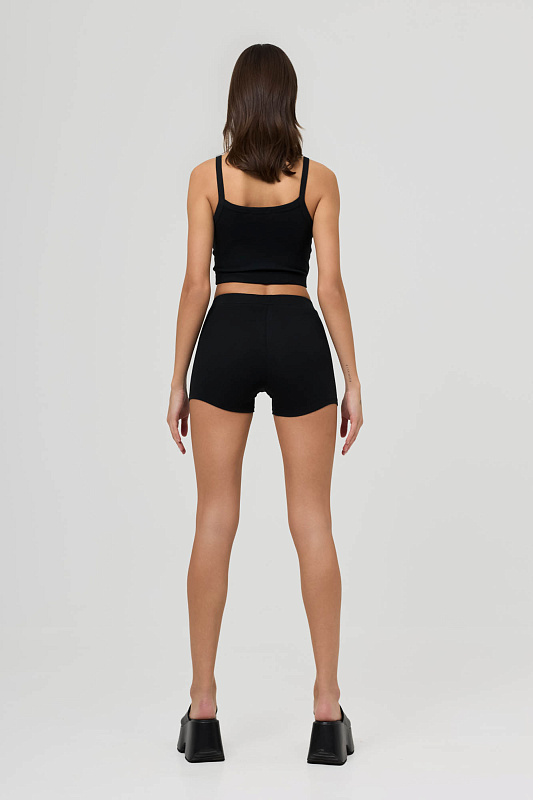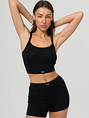 Состоит из топа на бретелях и укороченных велосипедок с высокой посадкой.