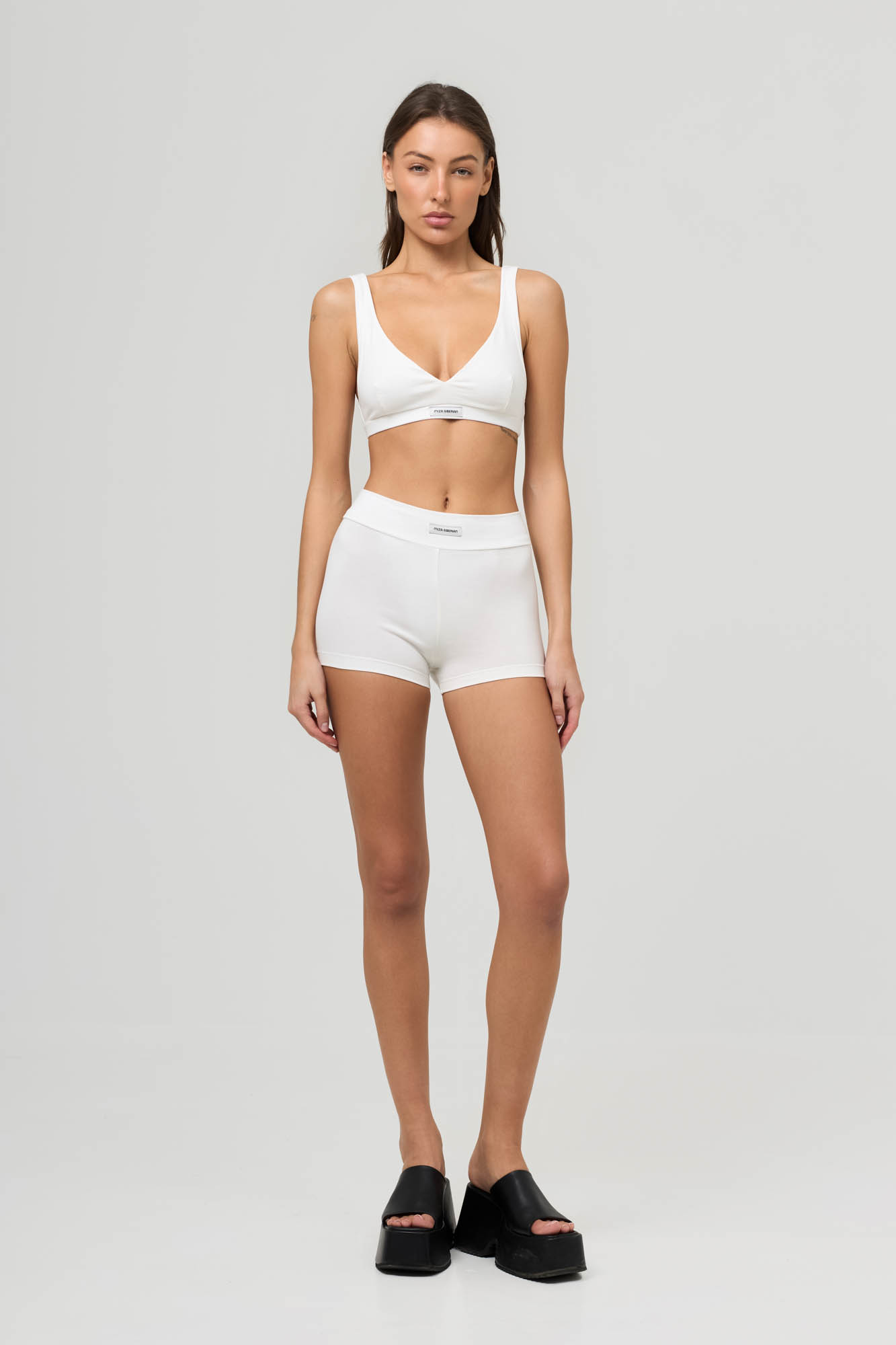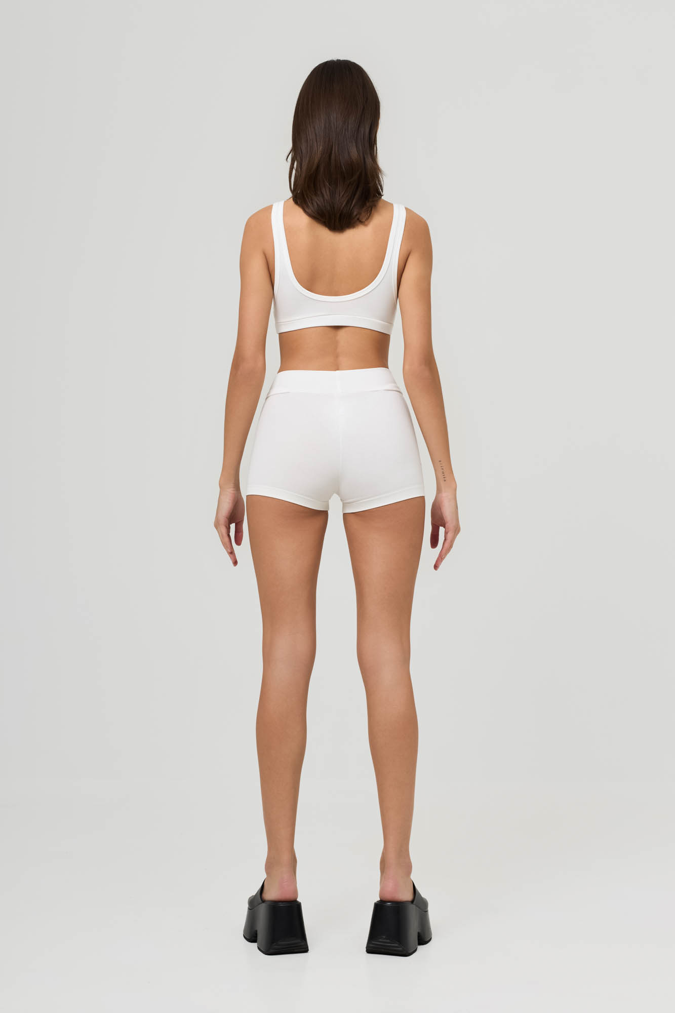 Состоит из бралетта с двойным передом и укороченных велосипедок с широким отрезным поясом.