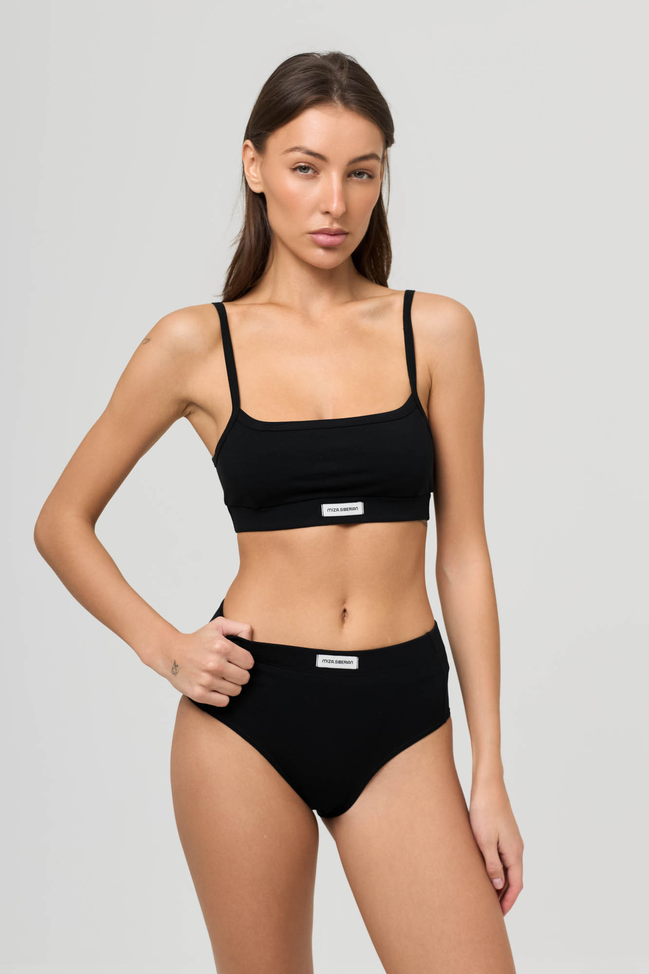 Состоит из бралетта с двойным передом и трусиков базовой посадки.