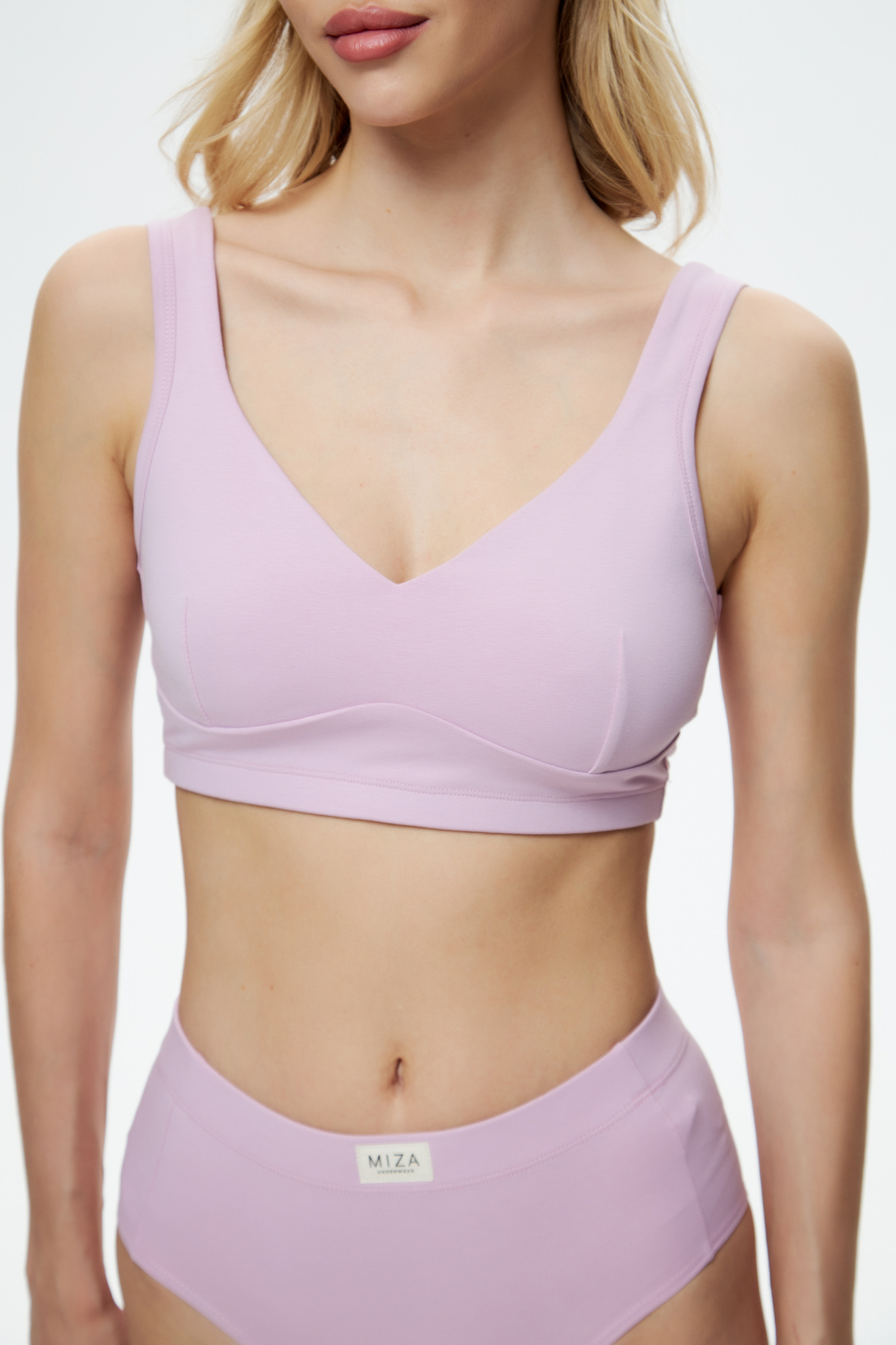 Бралетт имеет вытачки на груди и усиленный двойной перед.
